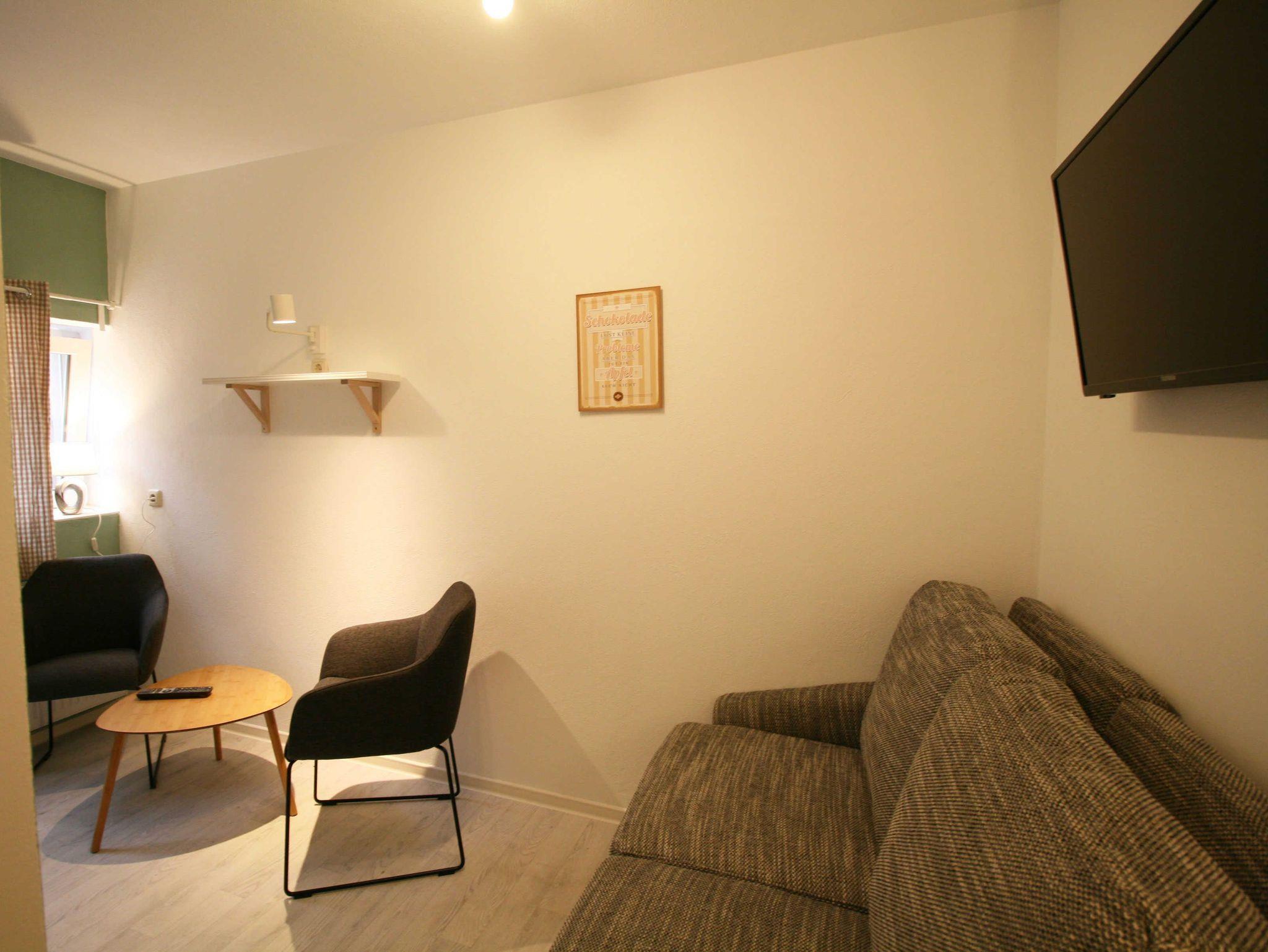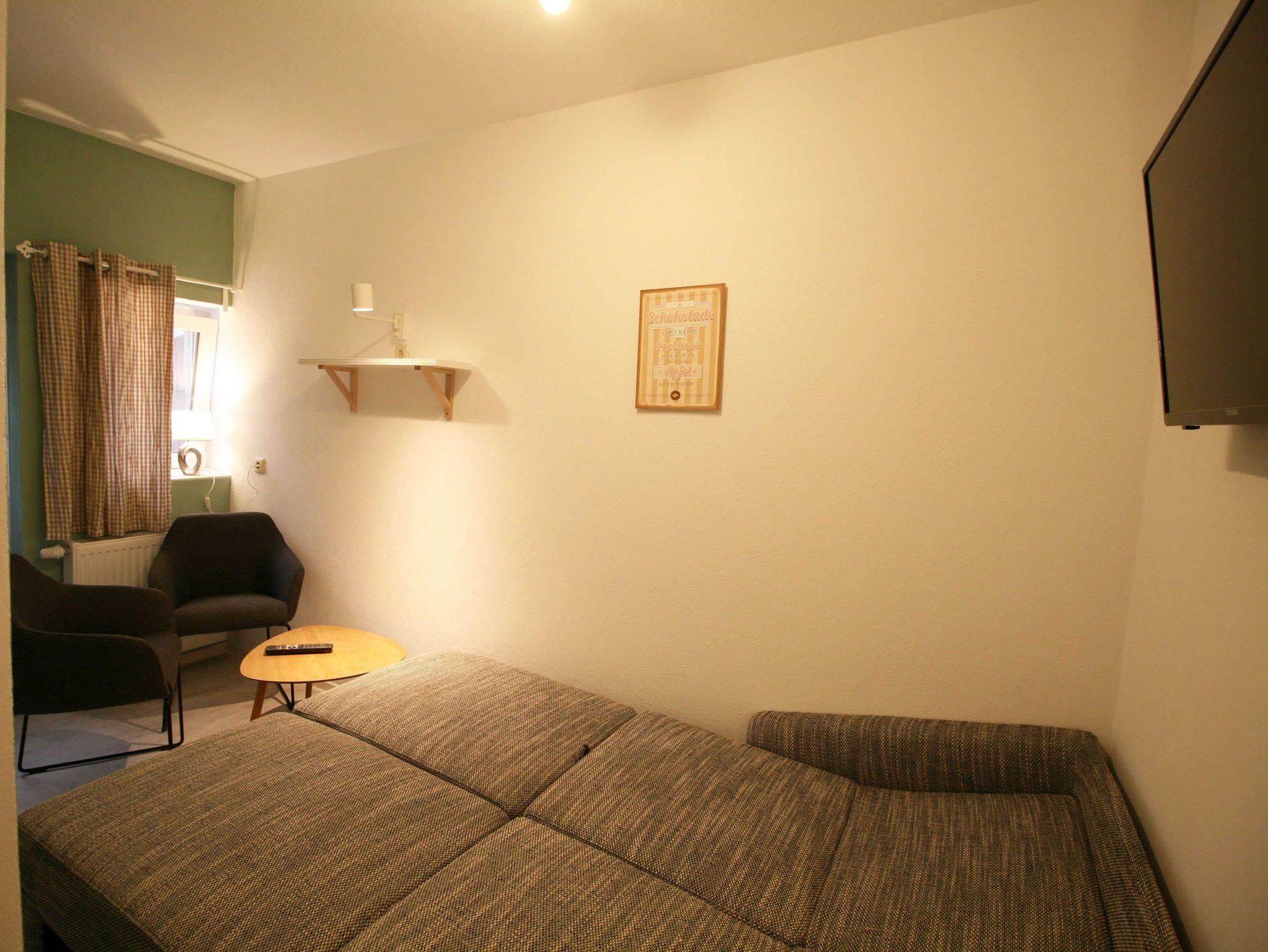 Es erwartet Sie ein kleines Ferienzimmer für bis zu 2 Personen. Im Zimmer gibt es eine Doppelbettcouch, einen Tisch, 1 Sesselstuhl, sowie einen Fernseher, ein Bad mit Dusche und Toilette. Sie haben im Hof die Möglichkeit Ihre Zeit gemütlich zu verbringen. Ein Wasserkocher und Kaffeebecher sind im Zimmer. Gern können sie im Hof einen Kühlschrank nutzen. Bettwäsche und Handtücher können sie mitbringen oder mieten, p.P. 9,50€. Die Wäsche zahlen Sie bitte vor Ort in bar, keine Kartenzahlung möglich.