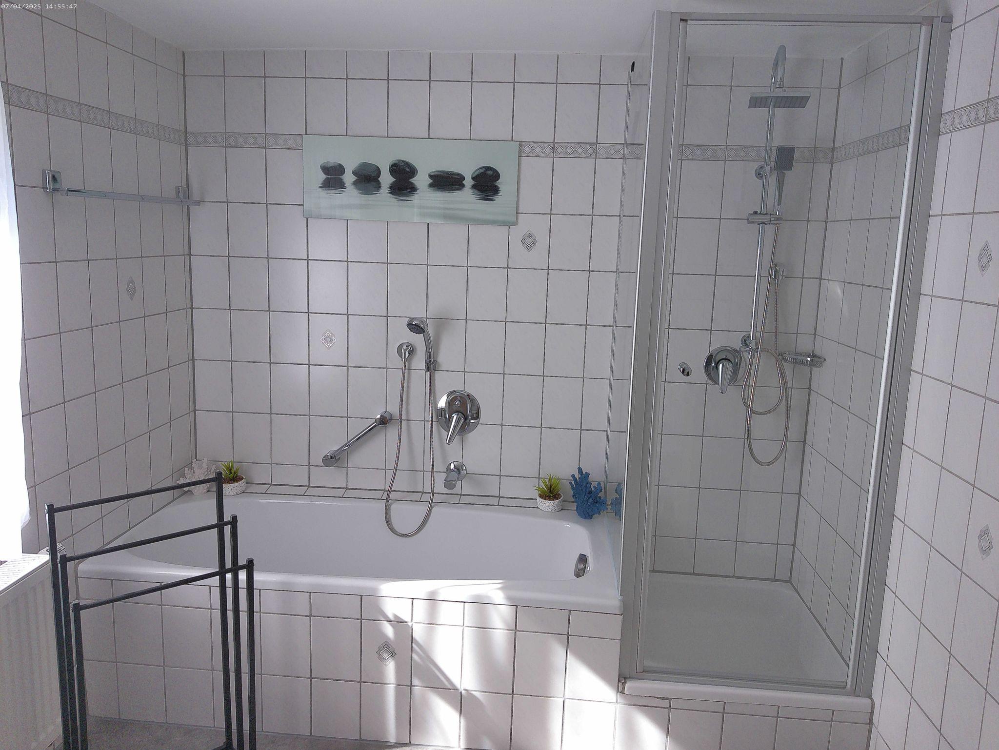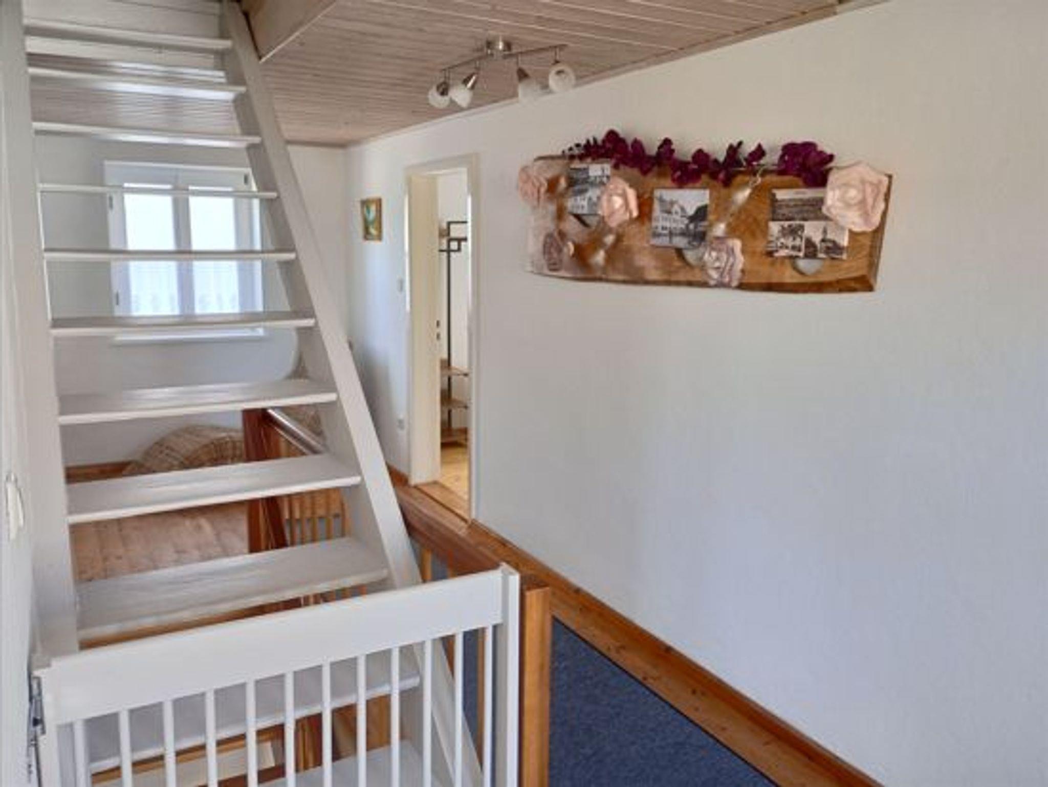 Das Ferienhaus, mit einer Wohnfläche von 130 m², bietet auf zwei Etagen eine komfortable und ländliche Einrichtung. Im Erdgeschoss erwartet Sie eine vollausgestattete Küche (mit Mikrowelle, Herd, Backofen, Spül- und Kaffeemaschine, Toaster und Wasserkocher ). Der separate Essbereich mit einer großzügigen Essgruppe inkl. Hochstuhl und einem Hochstuhl mit Neugeborenenaufsatz, lädt zu geselligen Mahlzeiten ein. Zusätzlich bietet das Erdgeschoss ein Schlafzimmer, welches mit zwei Einzelbetten (90x200) ausgestattet ist. Des Weiteren befindet sich im EG ein Badezimmer mit Dusche, Badewanne und WC. Zudem ist ein Föhn für Sie bereitgestellt.