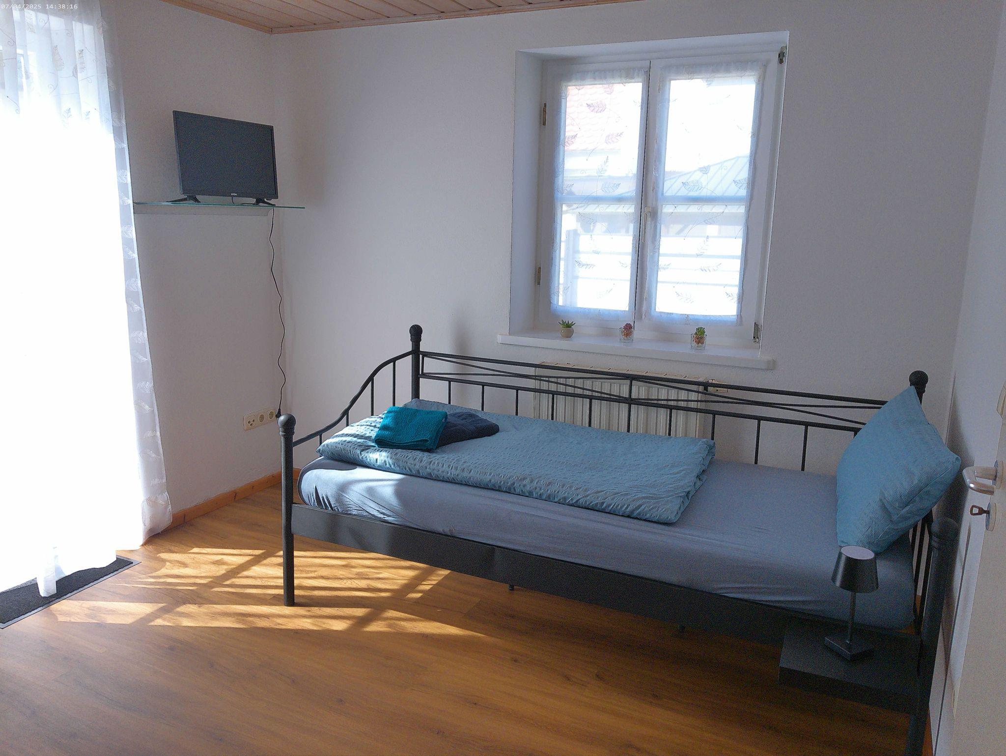 Im Obergeschoss lädt der Wohnbereich mit einem gemütlichem Sofa und TV perfekt zum Entspannen nach einem erlebnisreichen Tag ein. Zudem gibt es im Haus einen WLAN-Zugang. Ebenso befinden sich im Obergeschoss drei weitere Schlafzimmer, zwei jeweils mit einem Doppelbett (180x200 und 140x200) ausgestattet. Vom Schlafzimmer mit zwei Einzelbetten (90x200) gelangen Sie auf den Balkon. Von hier aus genießen Sie den Blick in unser schönes Kammeltal. Unser großes und voll umzäuntes Grundstück ist ein echter Ausgleich zum stressigen Alltag.