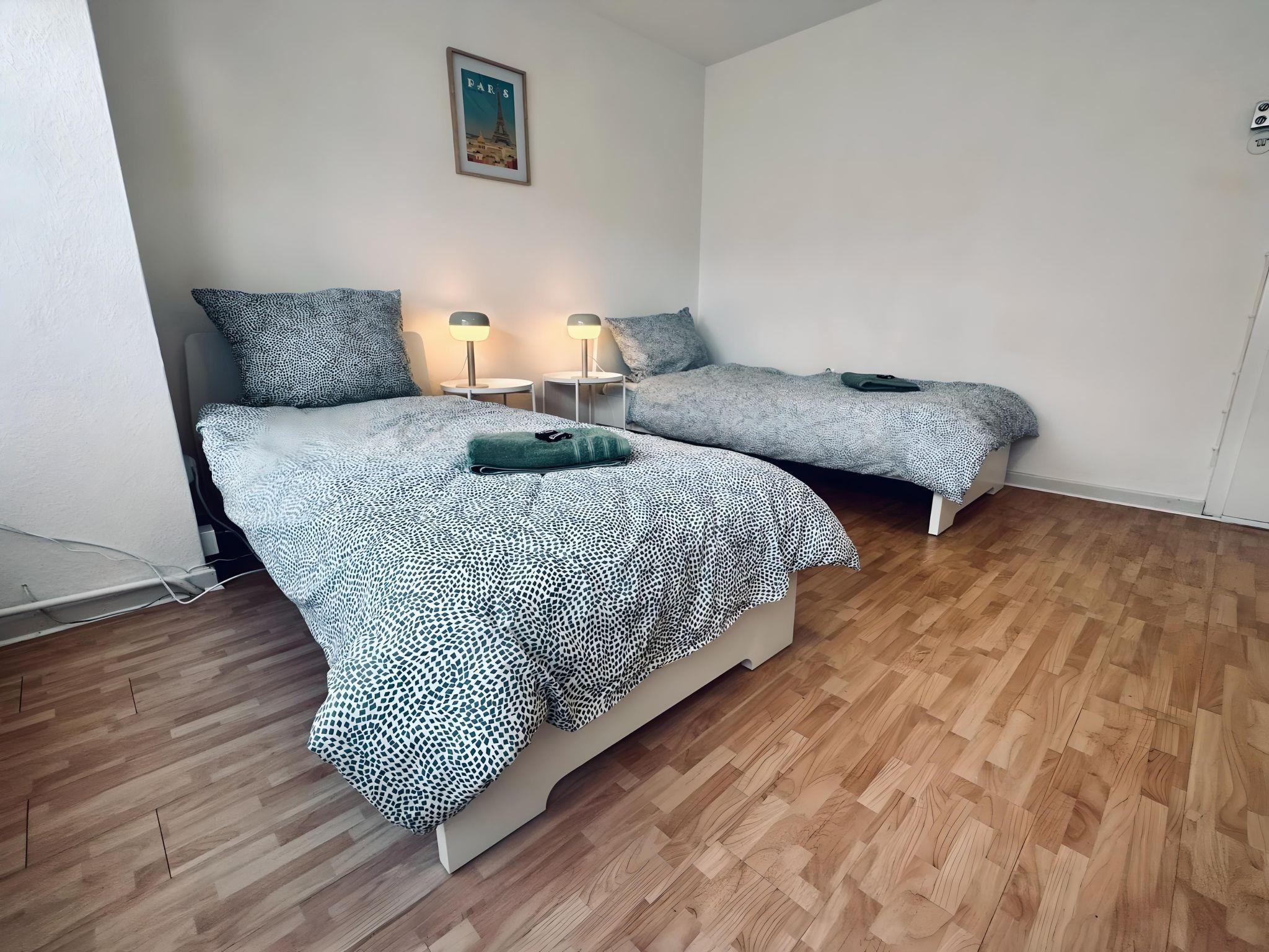 Welcome to NeuenHOUSE I - perfect for families or groups who love peace & space. The flat is located on the ground floor and offers three bedrooms, each with two single beds ?????????, a modern bathroom ?? and a kitchen with all the necessary equipment to cook together ??. The garden invites you to relax. Pets are welcome ??, parking is available free of charge. Fully contactless check-in via key box - you will receive the code shortly before arrival.