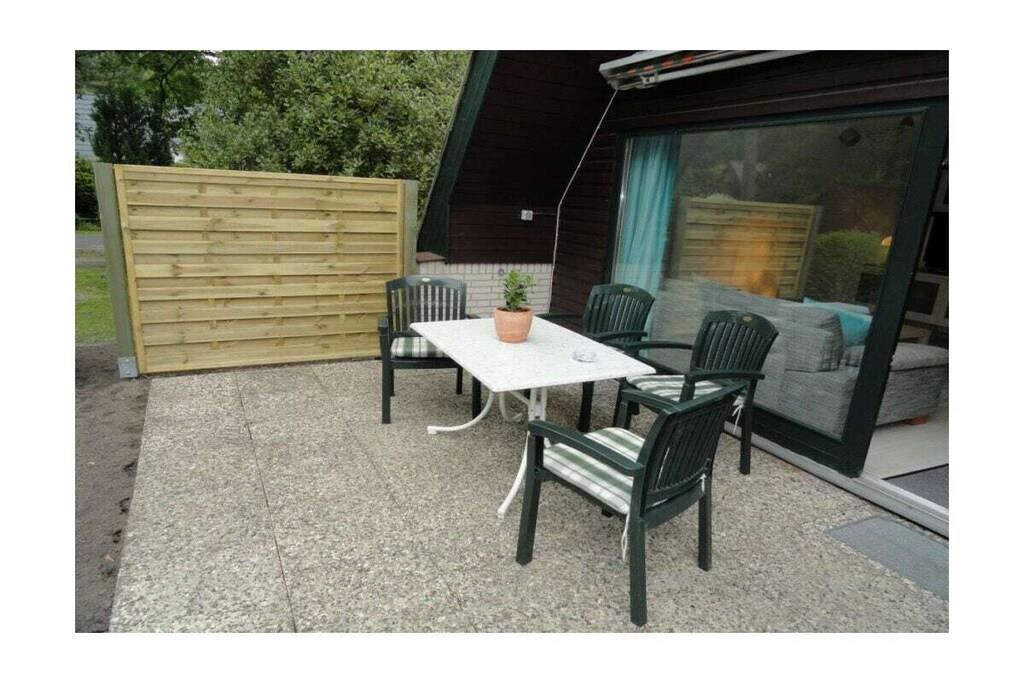 Huset har tre soveværelser og en stue/spisestue. To af de tre soveværelser er placeret på øverste etage og tilbyder en god udsigt over haven og bebyggelsen. Et lille haveskur tilbyder plads til cykler, hvis du ønsker det. Havemøbler og grill er til rådighed. Det åbne køkken og badeværelset fuldender opholdsstuen. Møbler og indretning holdes konstant så nye og rene som muligt. Huset indeholder en omfattende informationsmappe med seværdigheder og udflugtstips til regionen. Fra huset kan du hurtigt komme til hede-, skov- og englandskaber, hvilket er særligt værdsat af hundeejere.