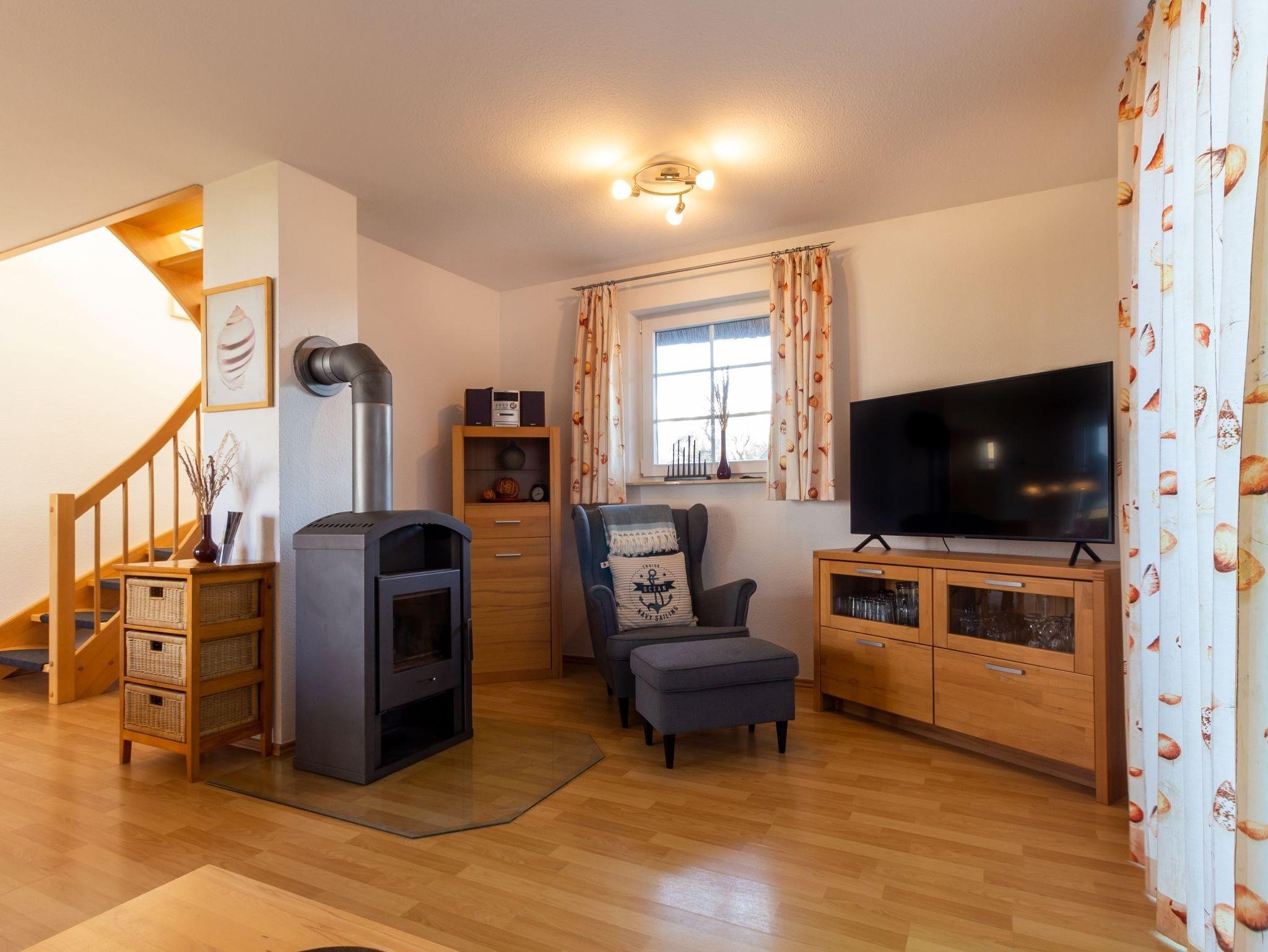 Die Räume sind modern und hell ausgestattet. Das zentrale Bad bietet Dusche und WC und eine Waschmaschine mit integriertem Trockner. Zusätzlich ist im Erdgeschoss ein Gäste-WC vorhanden. Im Winter ist das Haus mit der Zentralheizung (Fußbodenheizung) komfortabel beheizbar. Die reichhaltig ausgestattete Küche bietet eine Spülmaschine, Kaffeemaschine, Toaster, Mikrowelle, Wasserkocher und alle Utensilien die gemütliches, gemeinsames Kochen erfordert. Fernsehgerät und Audiosystem stehen zur Unterhaltung zur Verfügung.