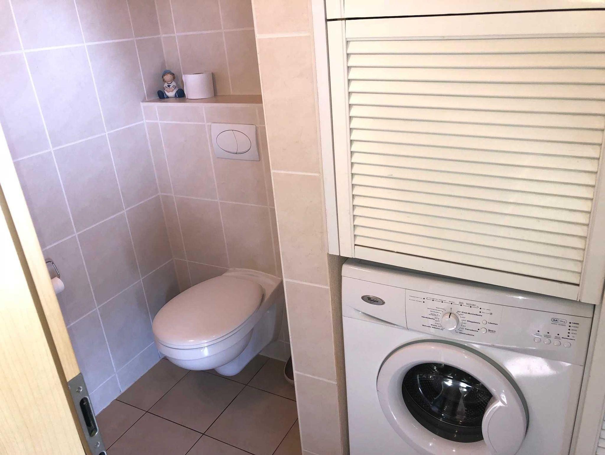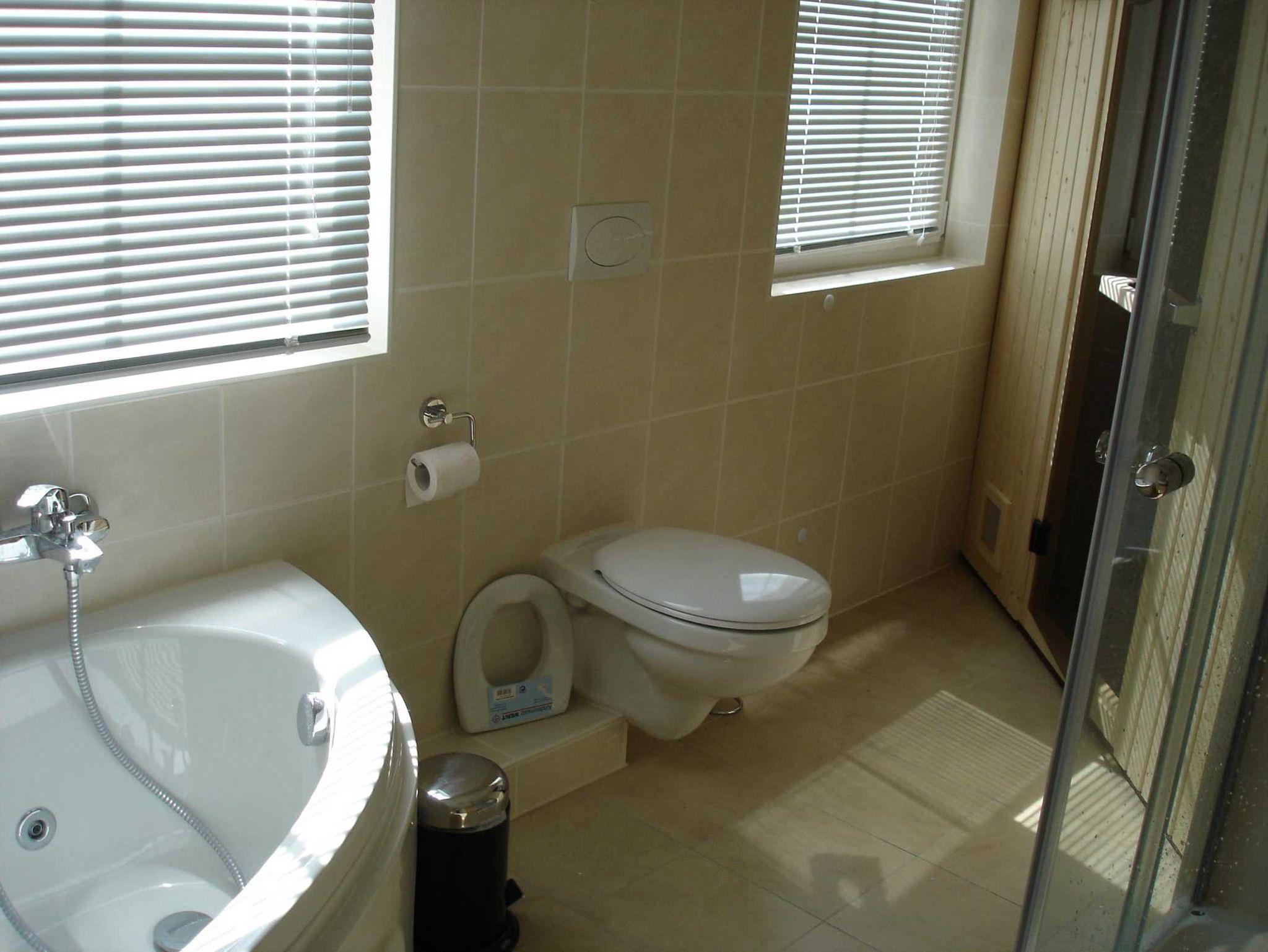 In der Haushälfte Boddenblick, links befindet sich im Bad mit Dusche, WC, Waschplatz, kleiner Whirlpool auch eine Sauna.