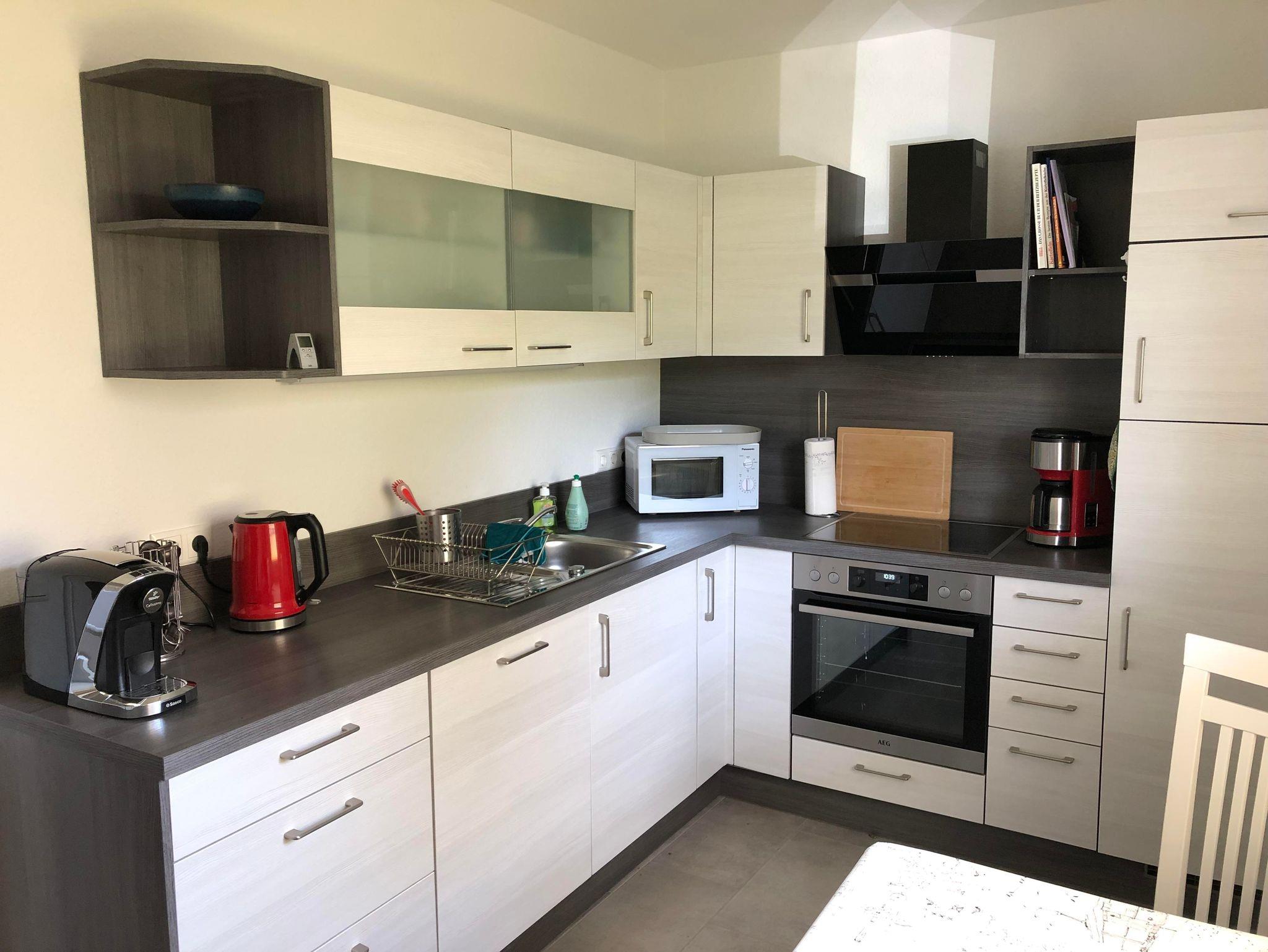 Es erwarten Sie 65m² purer Urlaub mit 2 Schlafzimmern, 1 Eßzimmer, 1 voll ausgestatteten Küche und 1 Badezimmer mit WC und Dusche.