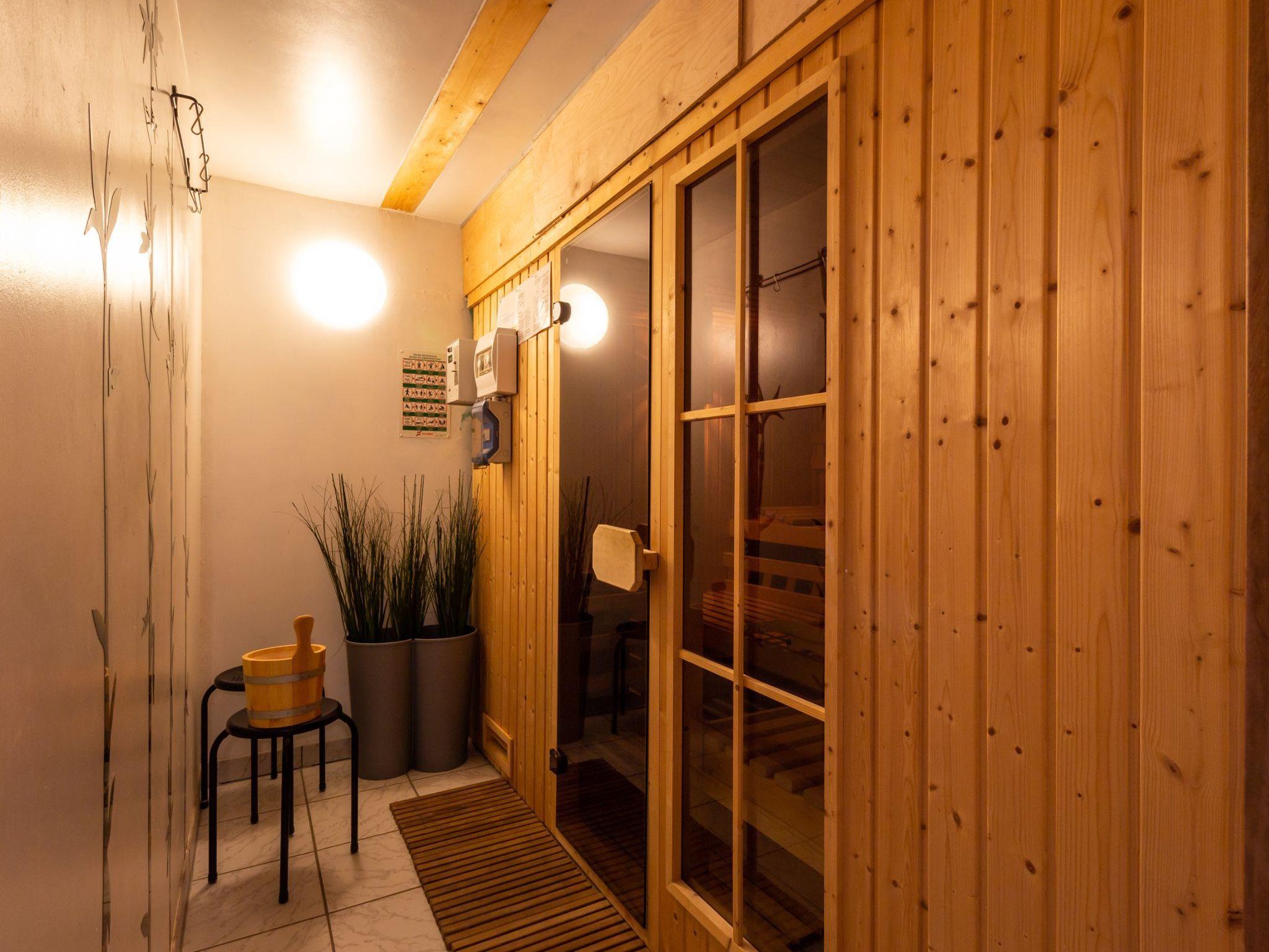 Im Haus 2C befindet sich die Sauna (gebührenpflichtig) sowie ein Waschraum mit Waschmaschine und Trockner.