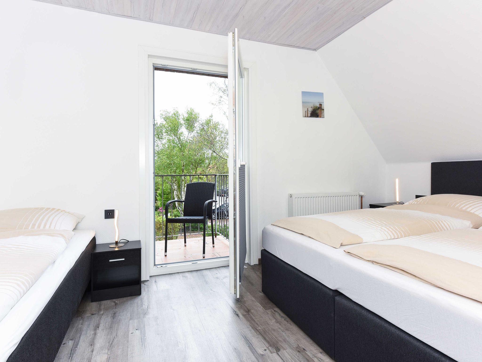 Die fünf Ferienwohnungen sind zwischen ungefähr 44 und ungefähr 35 Quadratmeter groß und für Ihren Urlaub mit 2 bis 3 Personen bestens geeignet. Das Apartment ist ungefähr 29 Quadratmeter groß und für 2 Personen sowie auch für Singles sehr gut geeignet. An unserem Haus gibt es zwei Gemeinschaftsterrassen für alle Wohnungen und das Apartment, eine vor dem Haus, dort steht auch ein schöner Strandkorb für Sie, und eine hinter dem Haus mit einer schönen Terrasse.