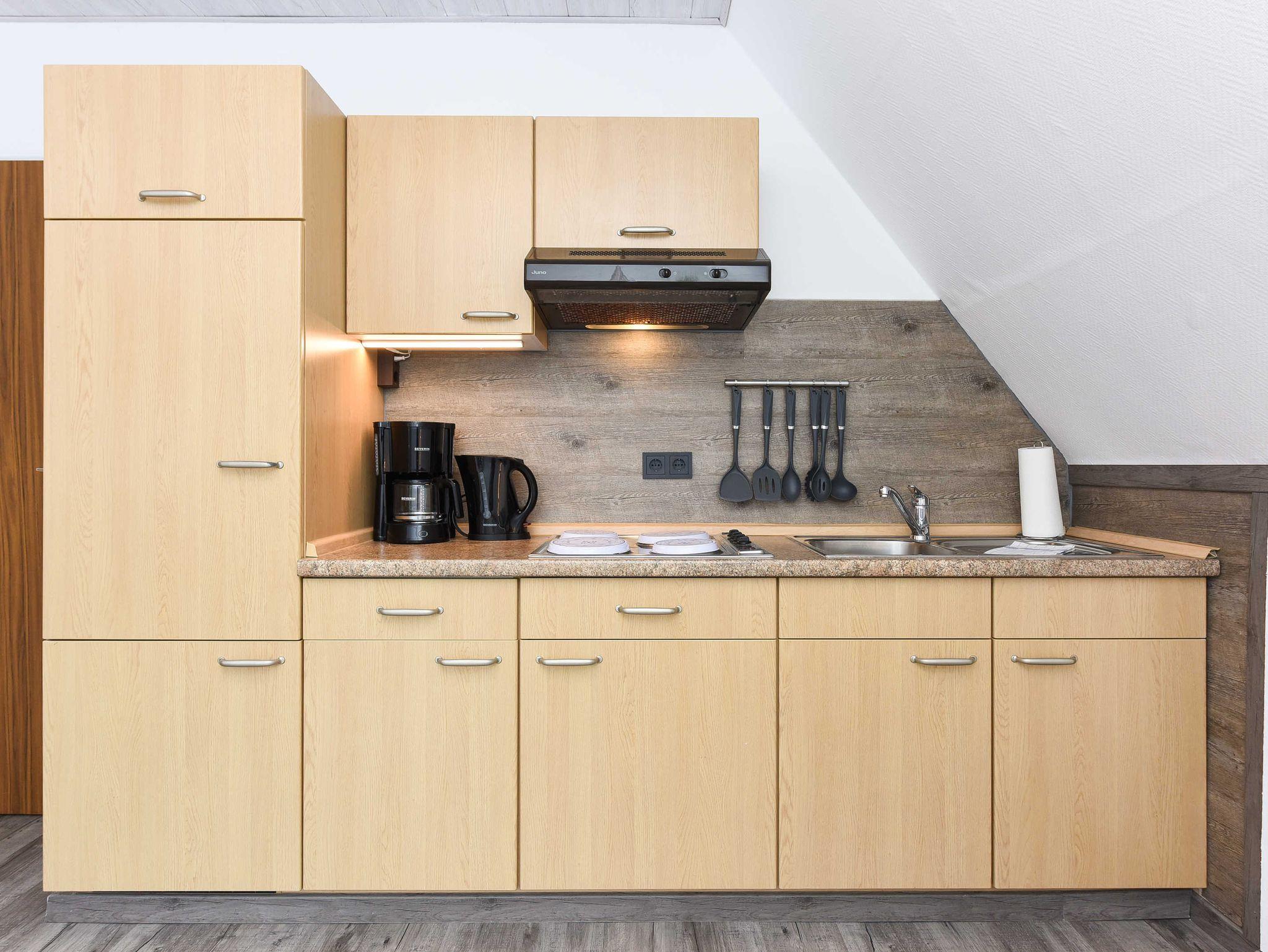 Größe, ca. 38 Quadratmeter, Wohnraum mit integrierter Küche, Schlafzimmer, Badezimmer mit Dusche, Waschtisch und WC, Obergeschoss, Balkon, optimal für 1 bis 3 Personen und zusätzlich ein Kleinkind.