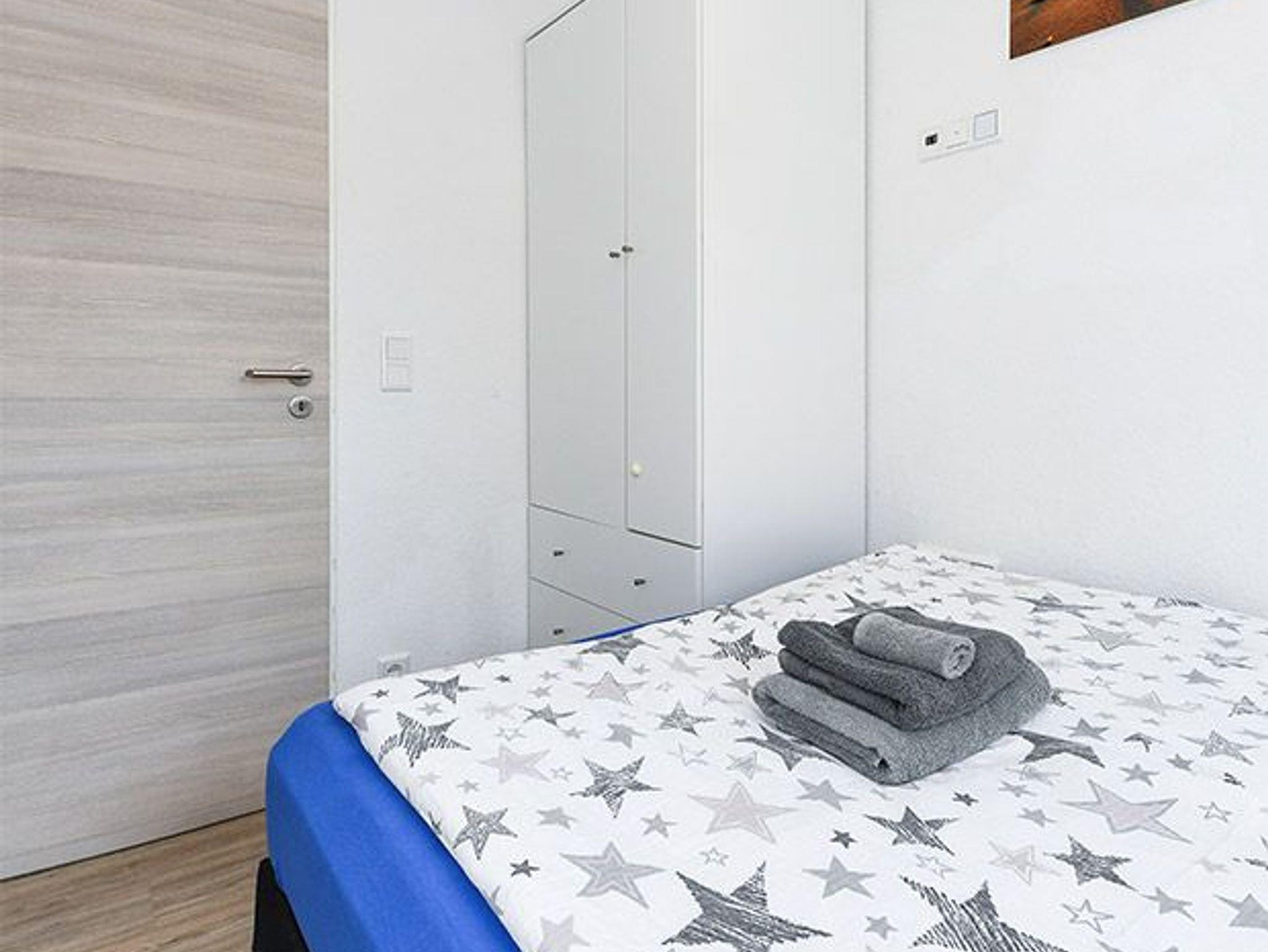 Größe ca. 43 Quadratmeter, Wohnraum mit integrierter Küche, Schlafzimmer, zweites separates Schlafzimmer/Kinderzimmer, Badezimmer mit Dusche, Waschtisch und WC, Erdgeschoss, optimal für 1 bis 5 Personen und zusätzlich ein Kleinkind.