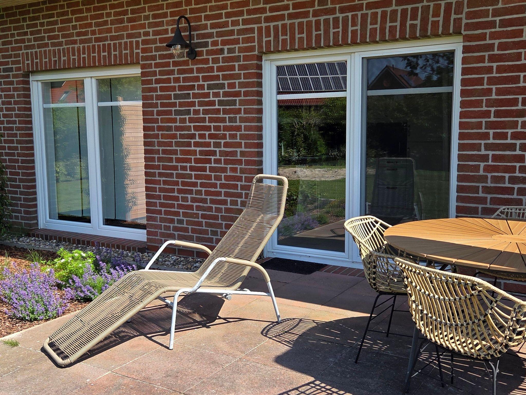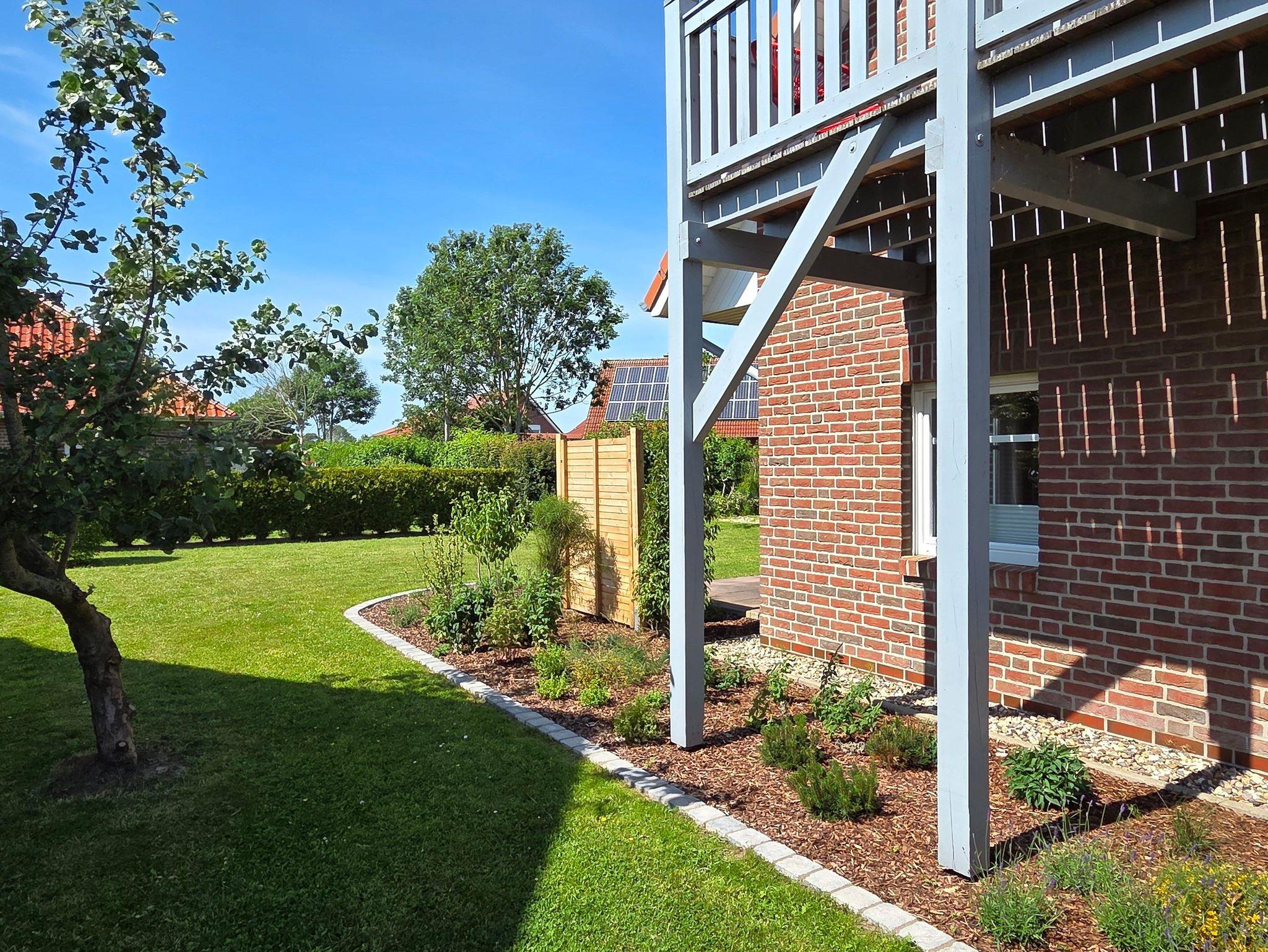 Die Ferienwohnung lädt mit einer möblierten Terrasse und dem großzügigen Garten zum Erholen ein.