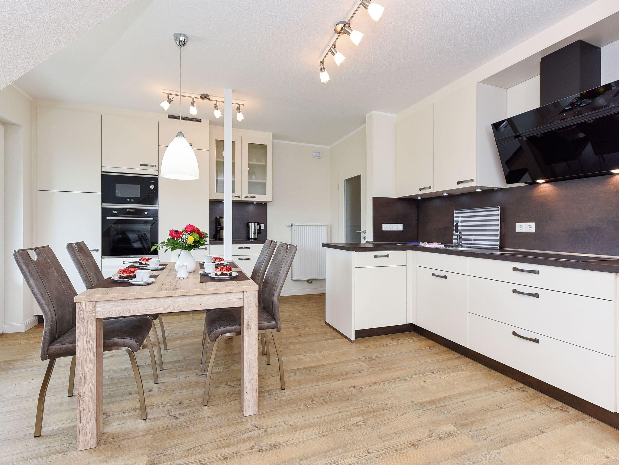 Alle vier Wohnungen haben entweder eine Terrasse oder einen Balkon. Ein Garten steht Ihnen ebenfalls zur Verfügung. Natürlich gibt es in allen Wohnungen voll ausgerüstete moderne Einbauküchen und alles, was man überhaupt im Urlaub benötigen könnte. Jede Wohnung verfügt über eine Mikrowelle, Geschirrspüler sind vorhanden und Waschmaschine sowie Wäschetrockner stehen für Sie in unserem separaten Waschhaus im Bootsweg 12, „Haus Pamir“, zur Verfügung.