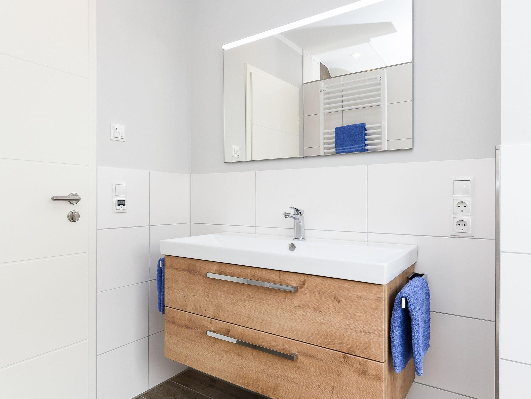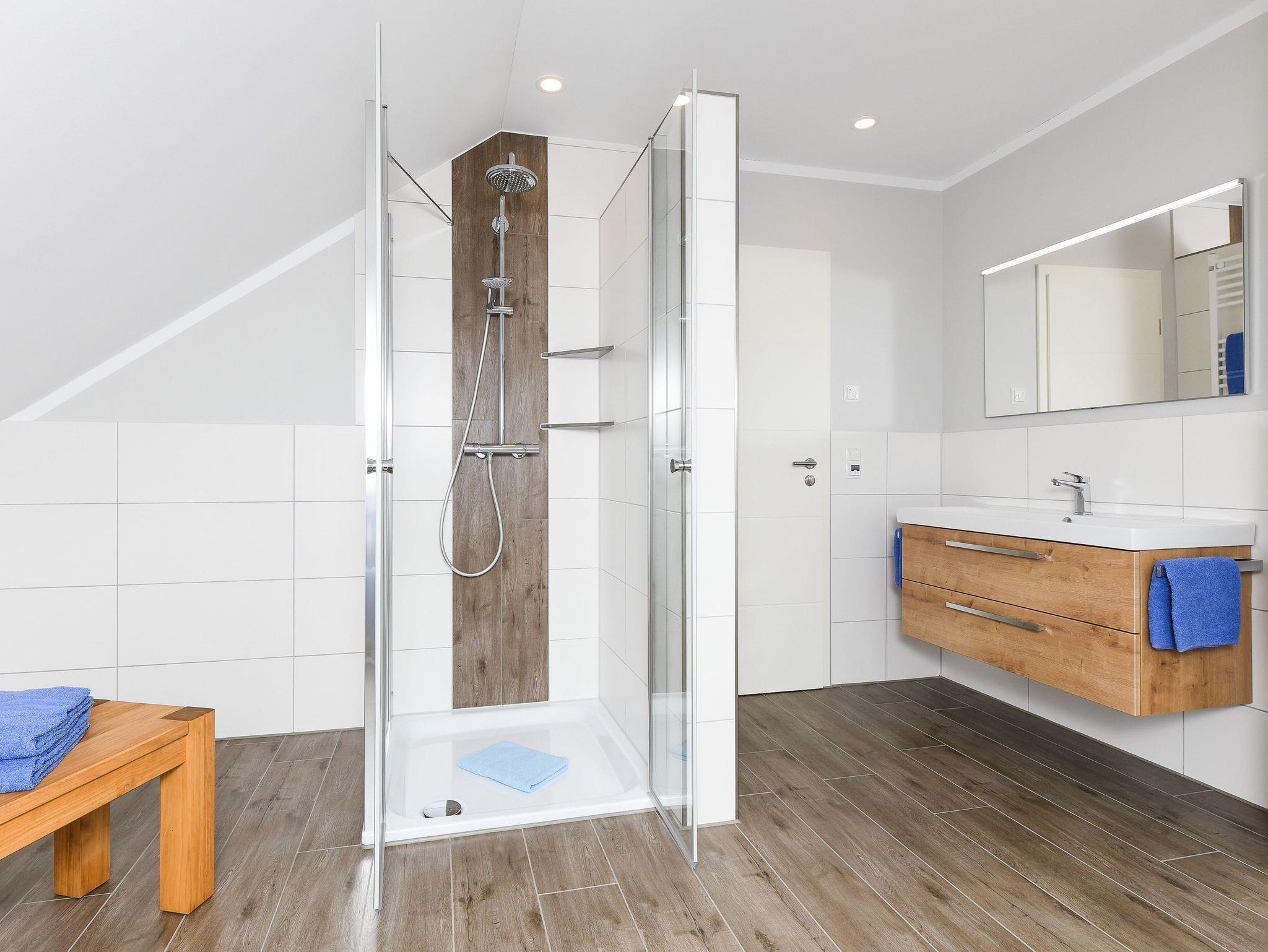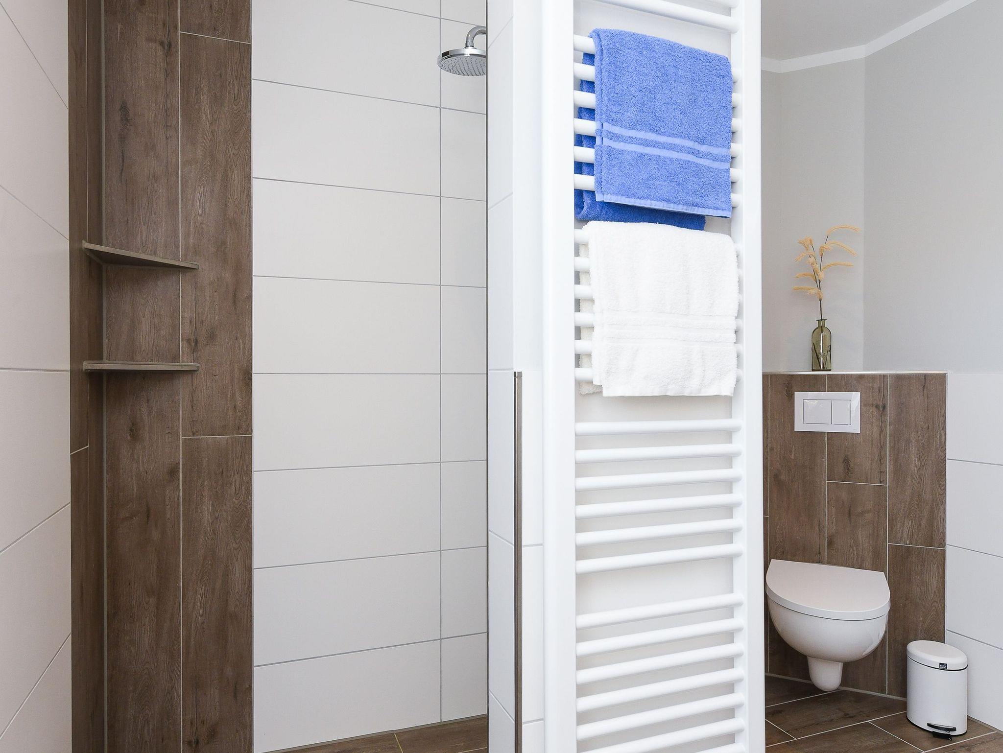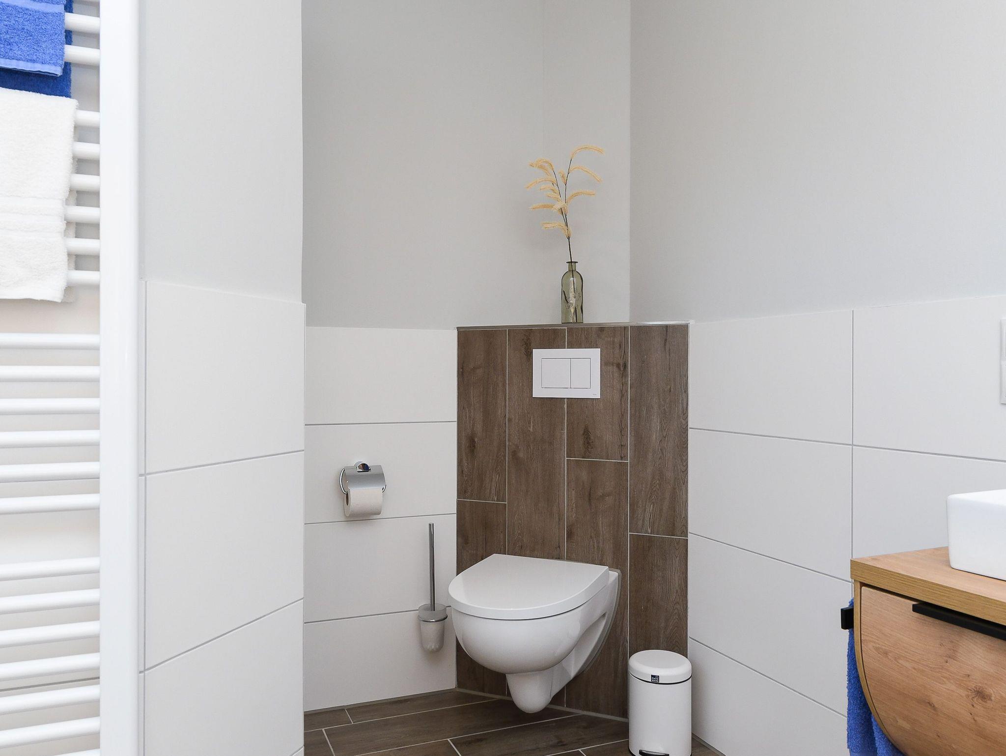 zweites Badezimmer mit Dusche, Waschtisch und WC