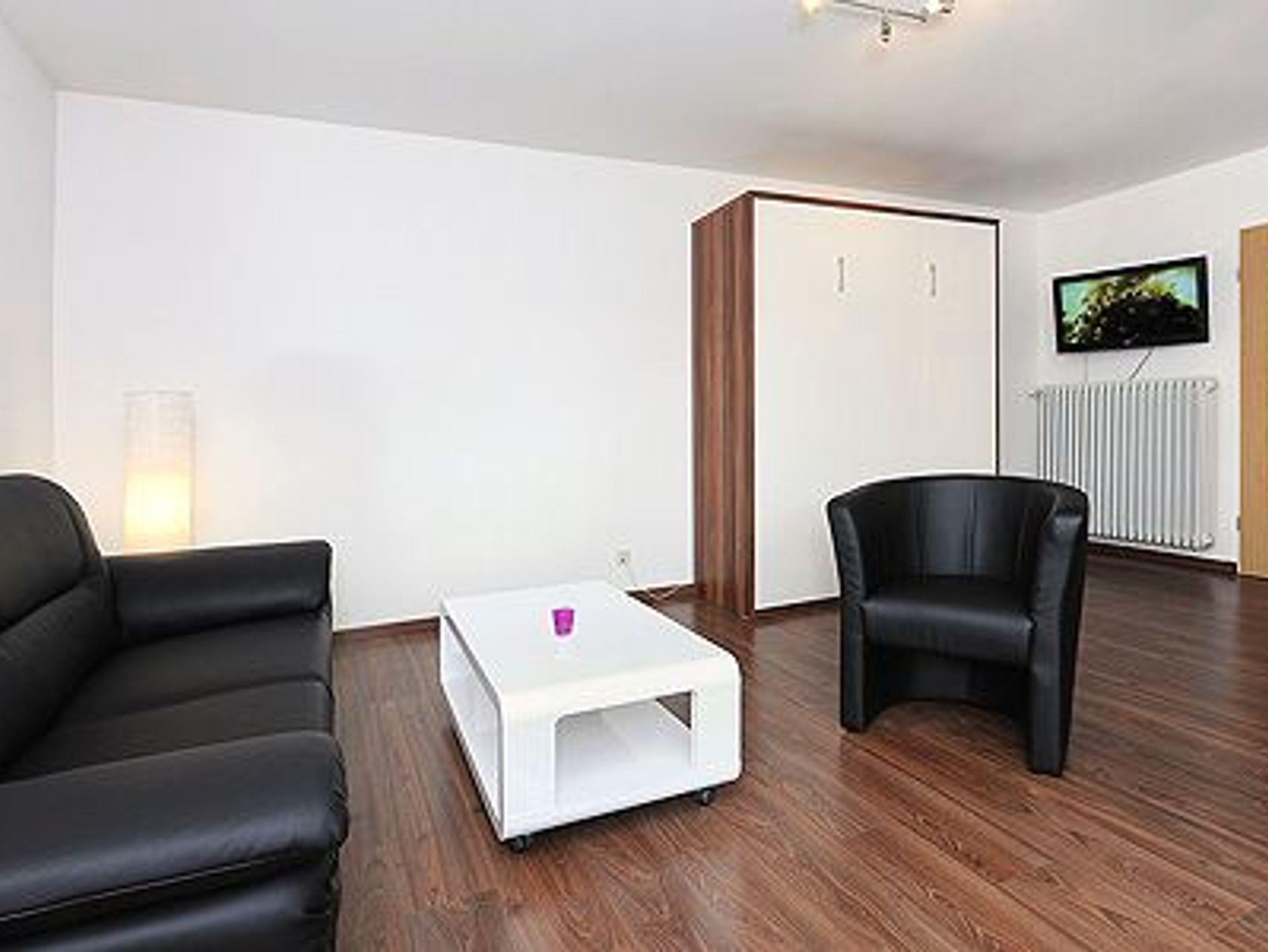 Größe ca. 45 Quadratmeter, Wohn- und Schlafraum mit abteiltem Küchenbereich, Badezimmer mit Dusche, Waschtisch und WC, Obergeschoss, Balkon, Internetzugang über WLAN möglich, optimal für 2 Personen.