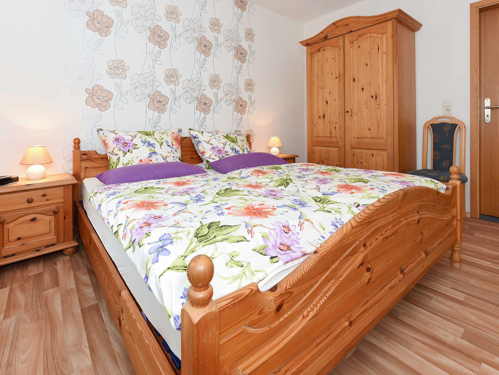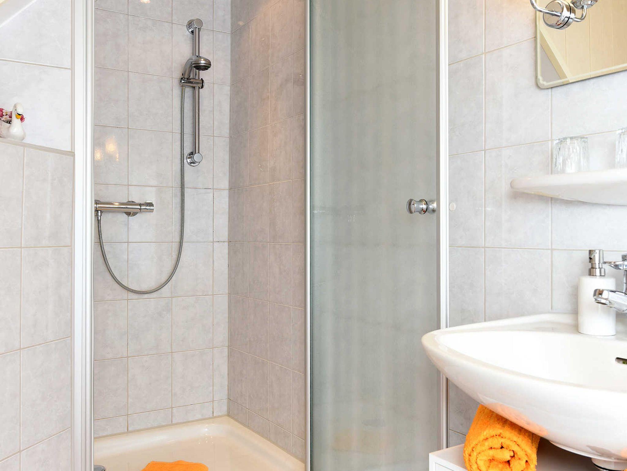 Größe ca. 50 Quadratmeter, Wohnraum mit integrierter Küche, Schlafzimmer, zweites separates Schlafzimmer/Kinderzimmer, Badezimmer mit Dusche, Waschtisch und WC, Obergeschoss, optimal für 1 bis 2 Personen.