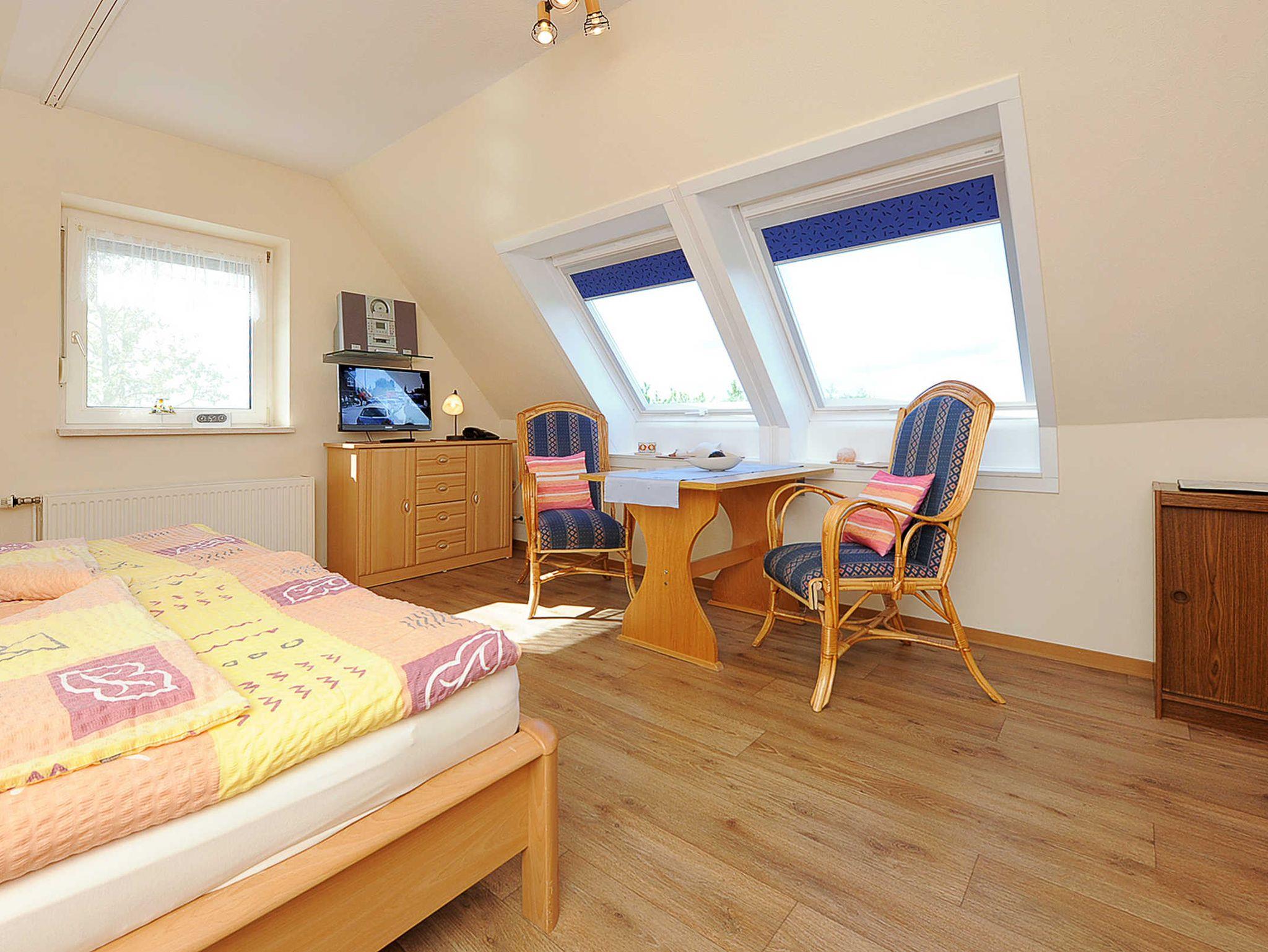 Größe ca. 35 Quadratmeter, Wohn- und Schlafraum, Küche, Badezimmer mit Dusche, Waschtisch und WC, Obergeschoss, optimal für 1 bis 2 Personen. Das Apartment Traumblick ist eine Wohn- Schlafkombination und befindet sich in der 2. Etage.