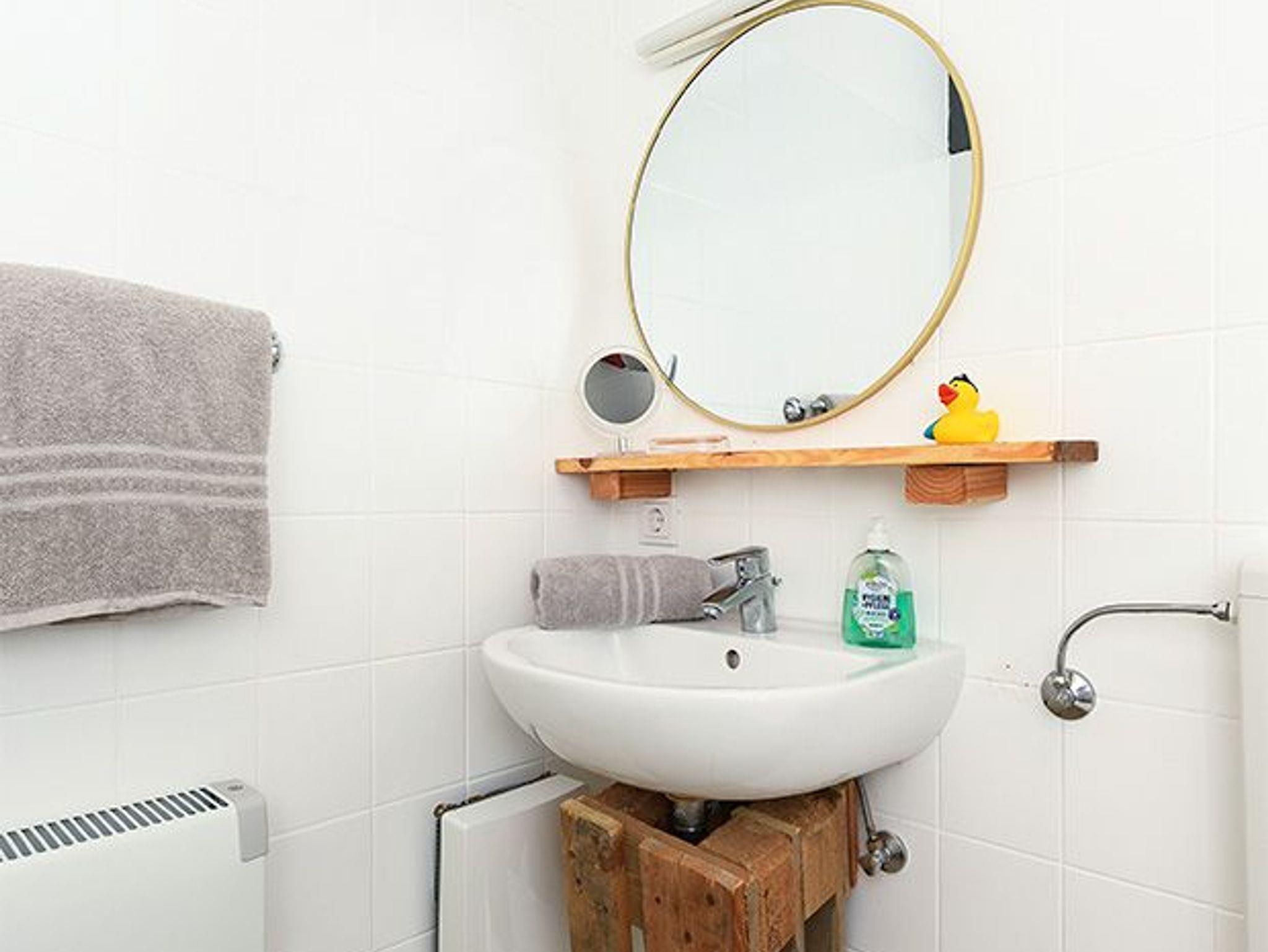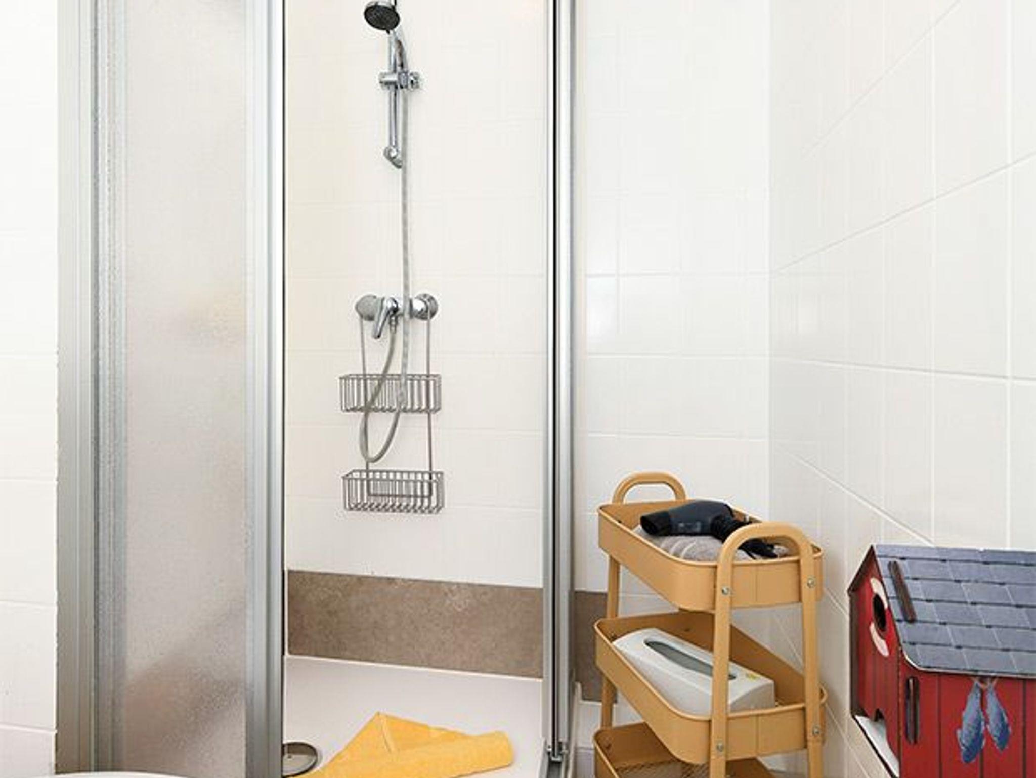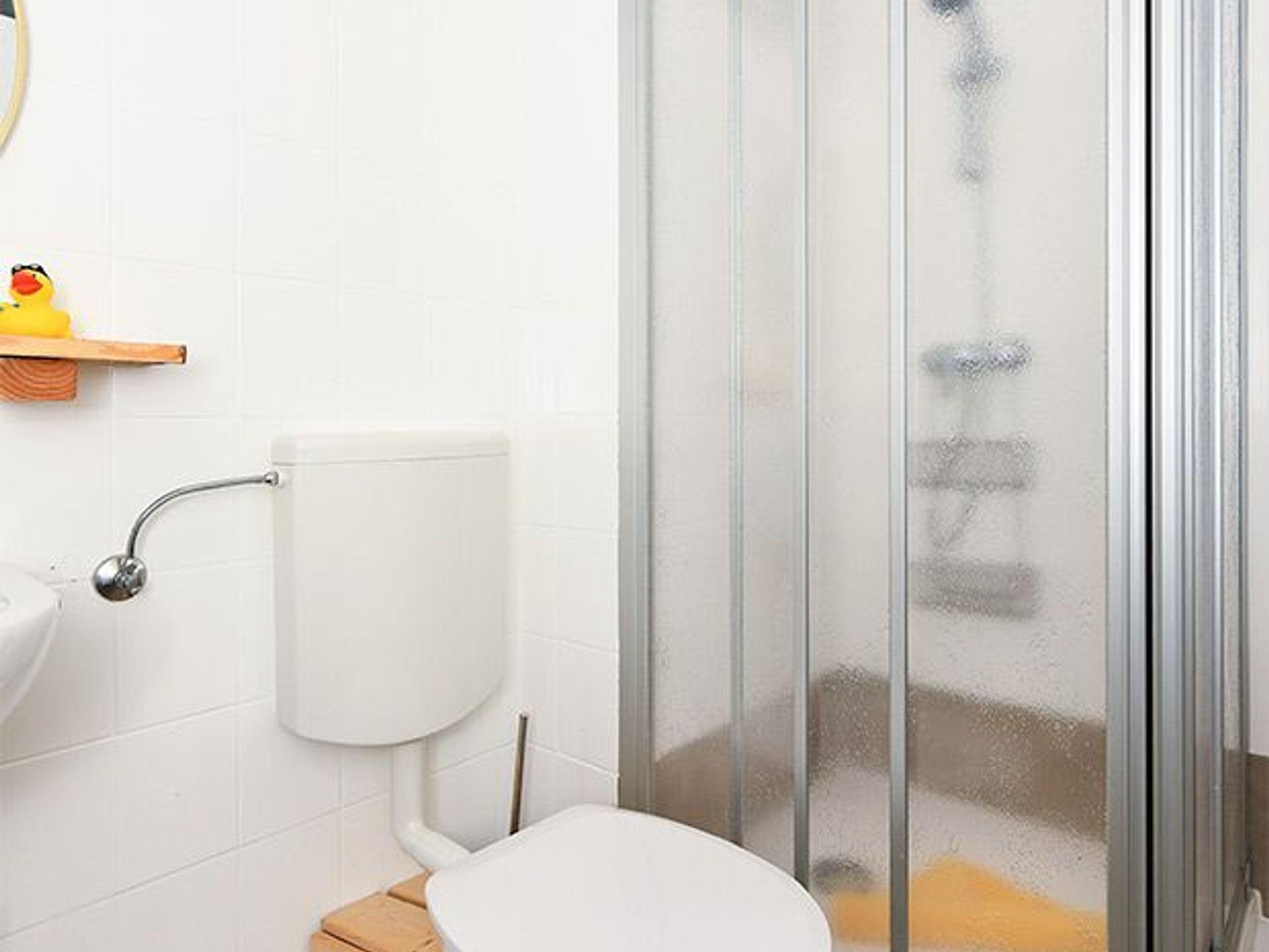 Badezimmer mit Dusche, Waschtisch und WC