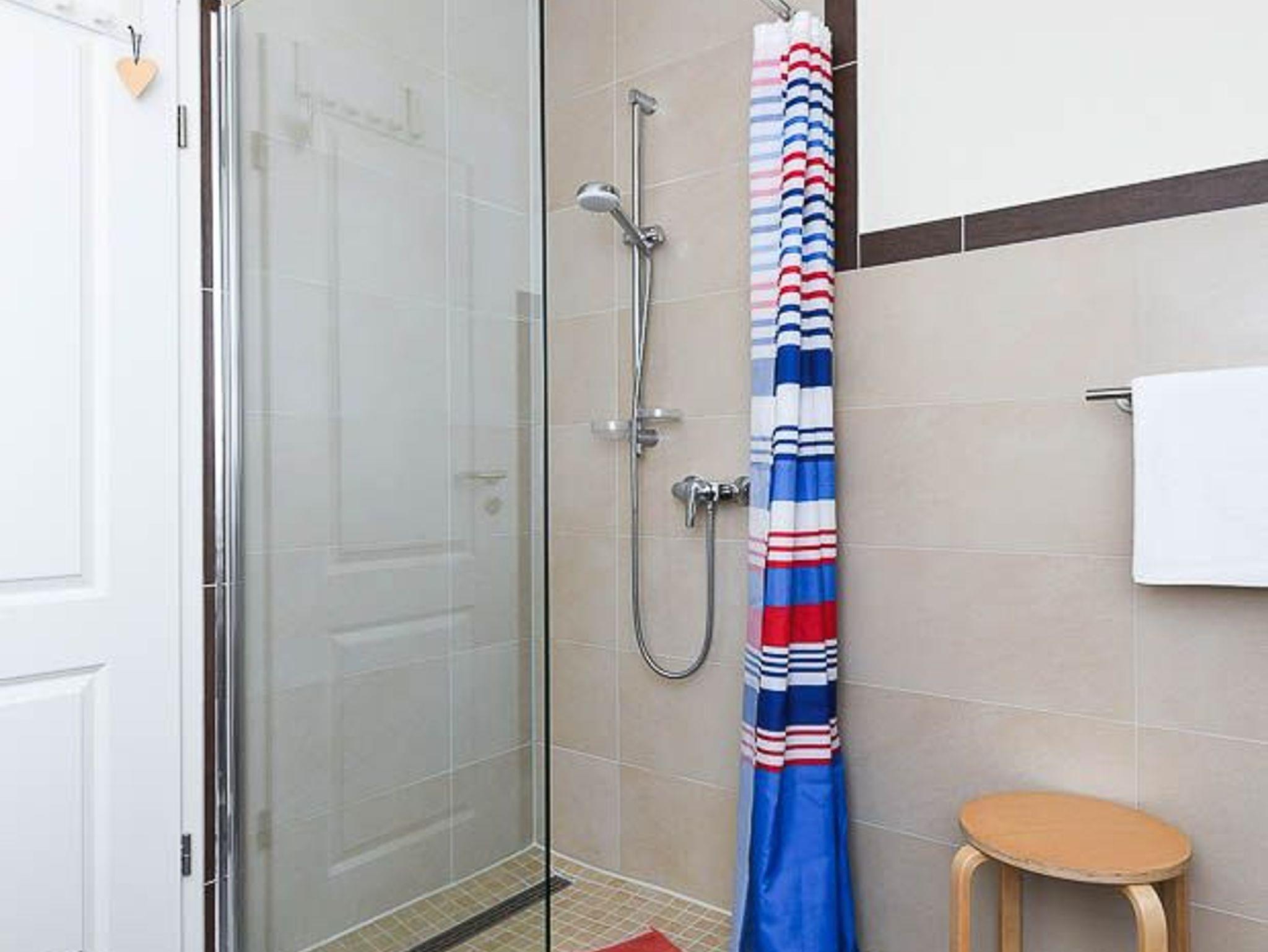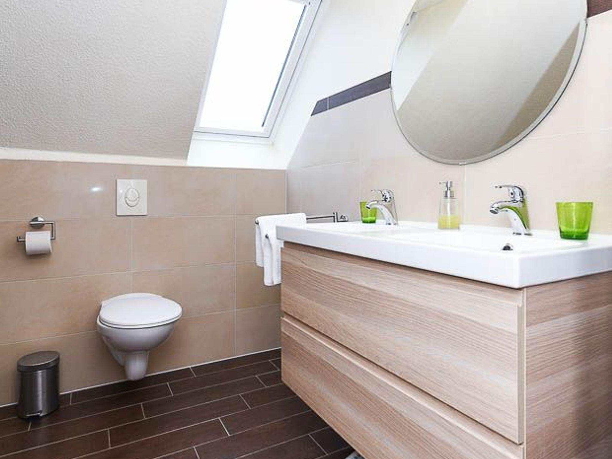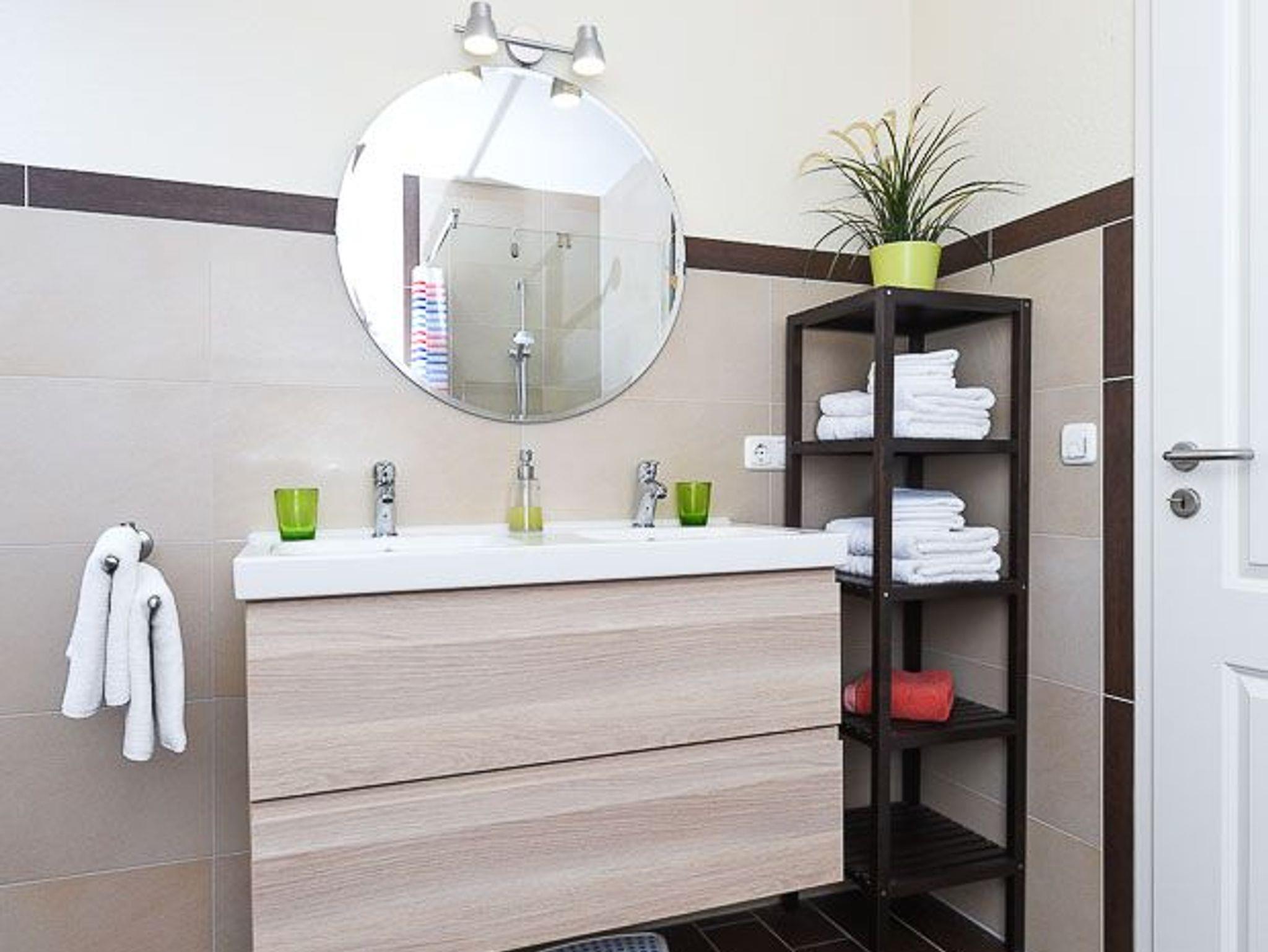Badezimmer mit Dusche, 2 Waschtischen und WC