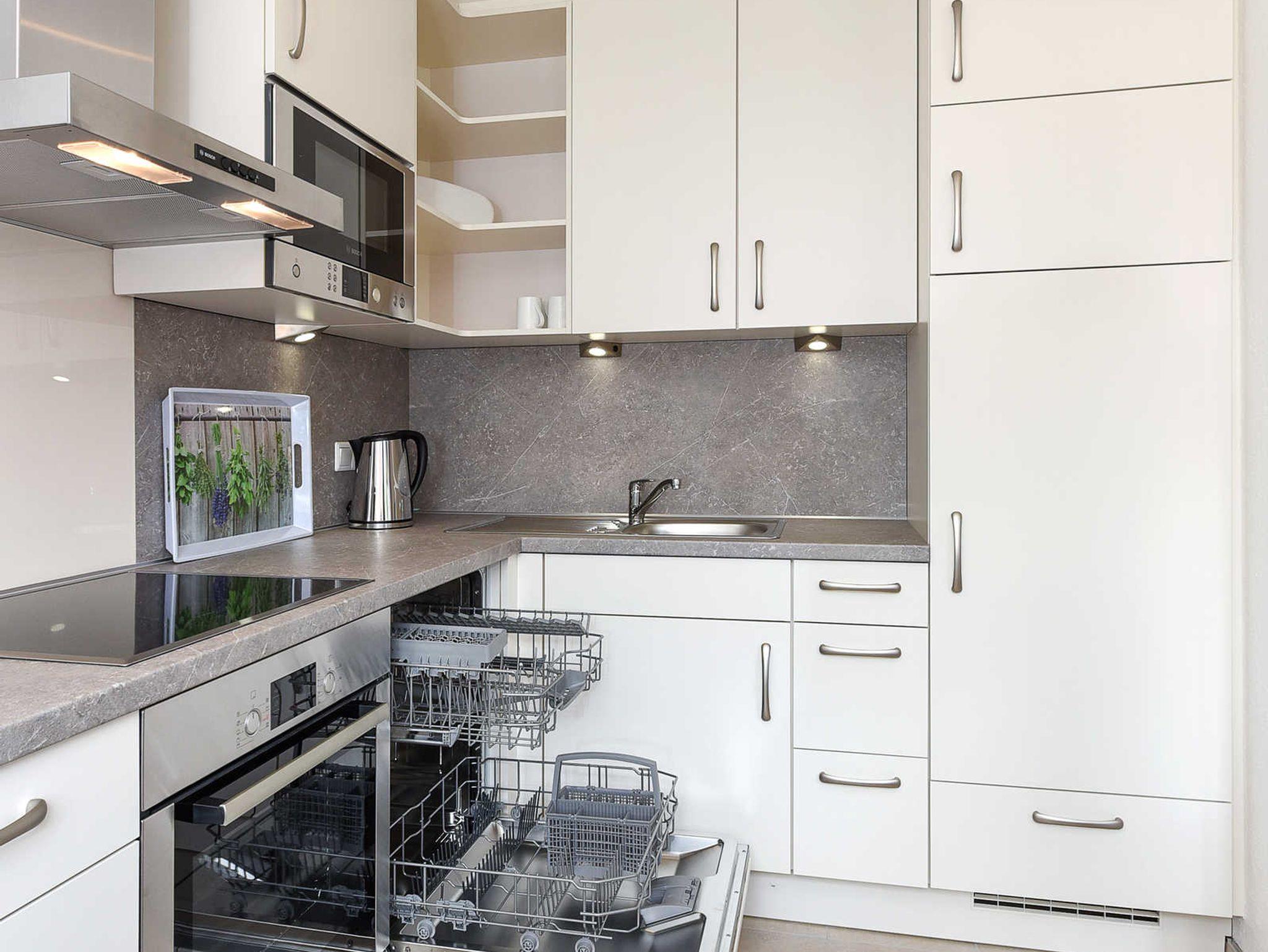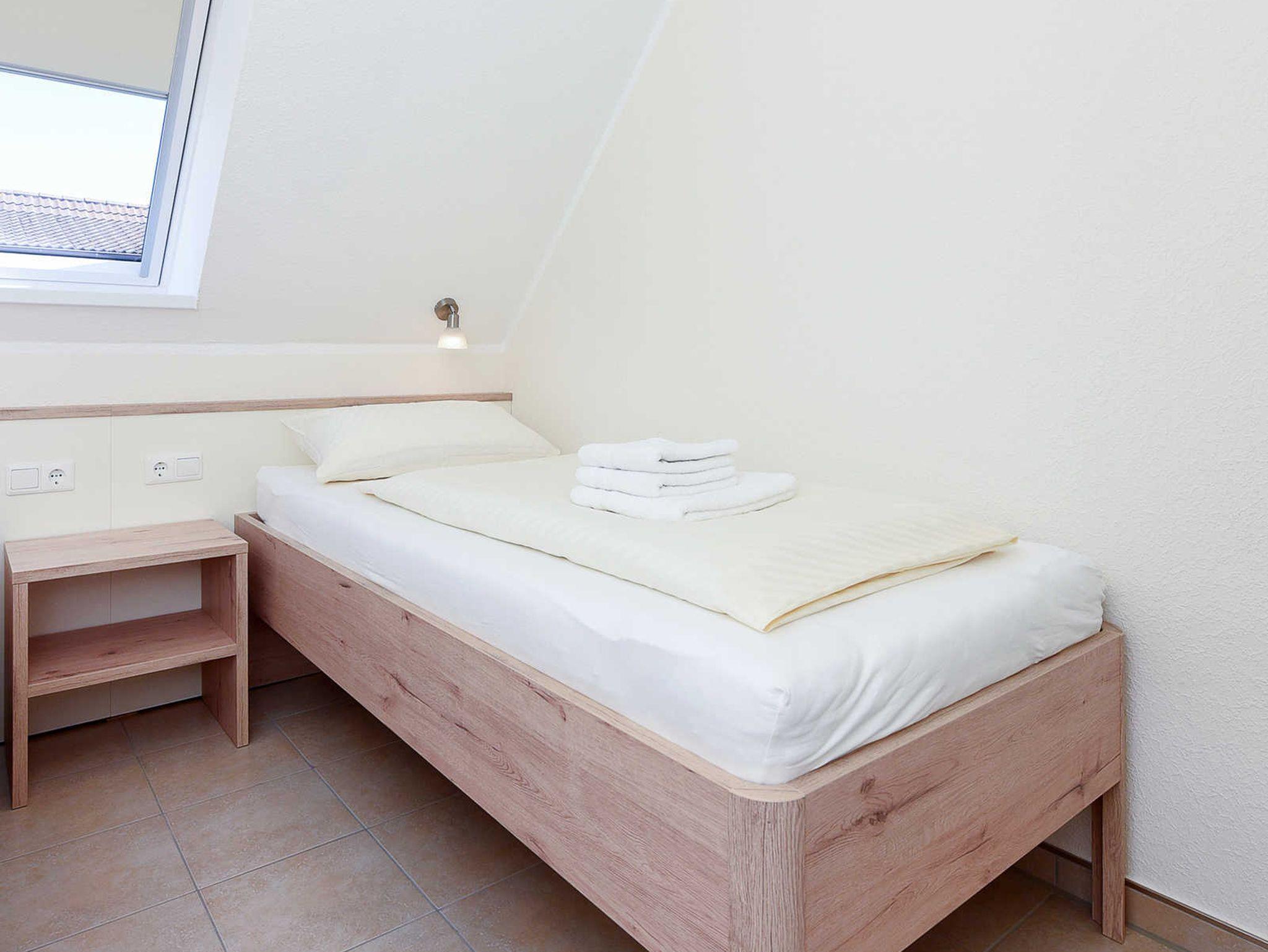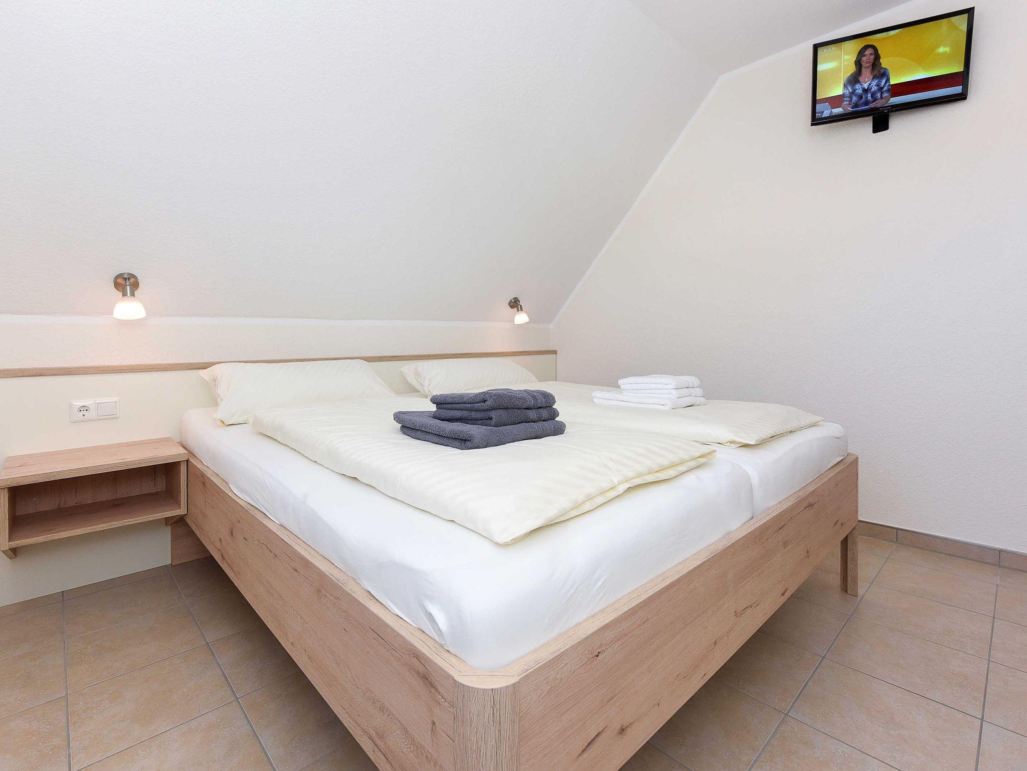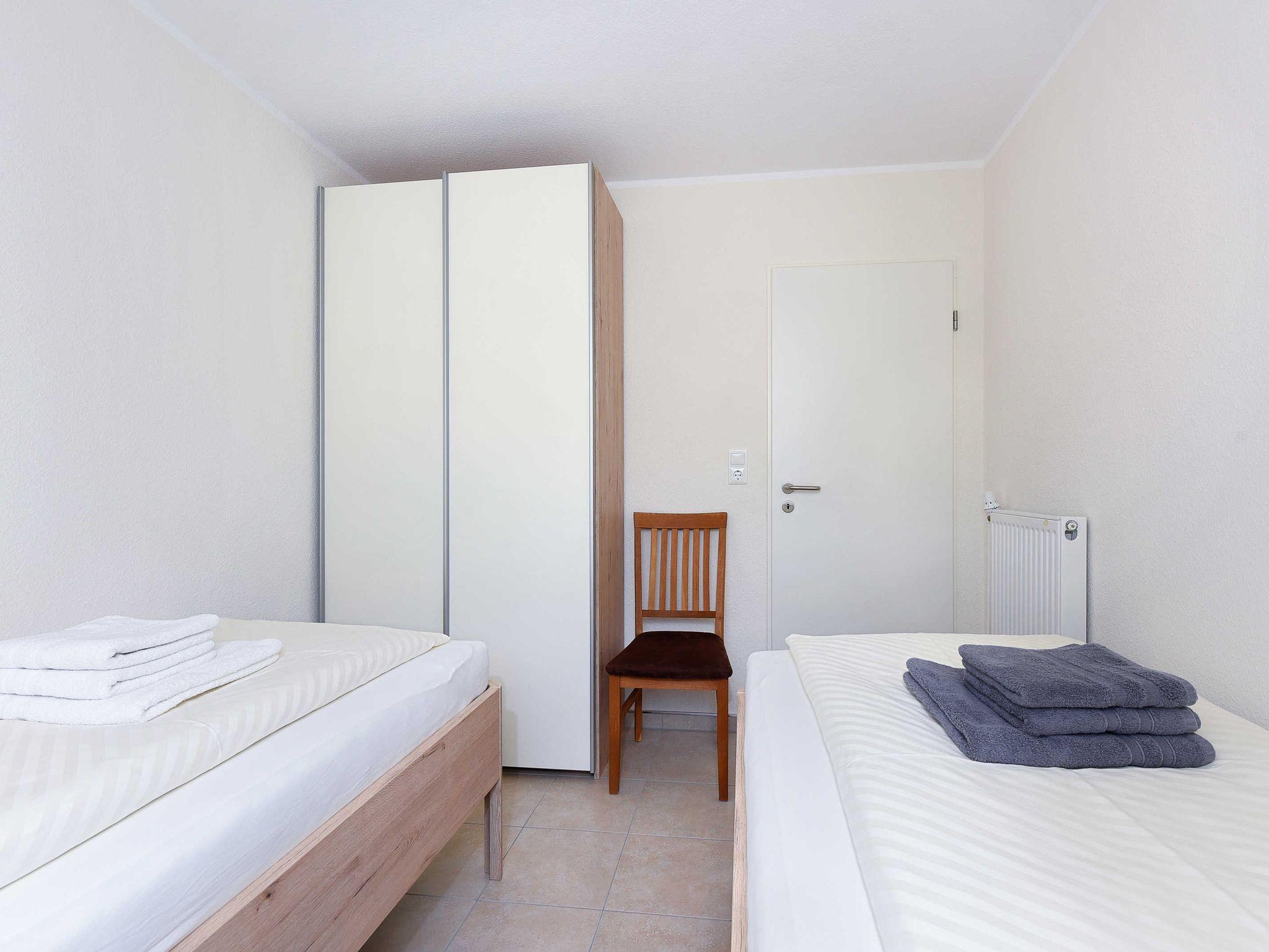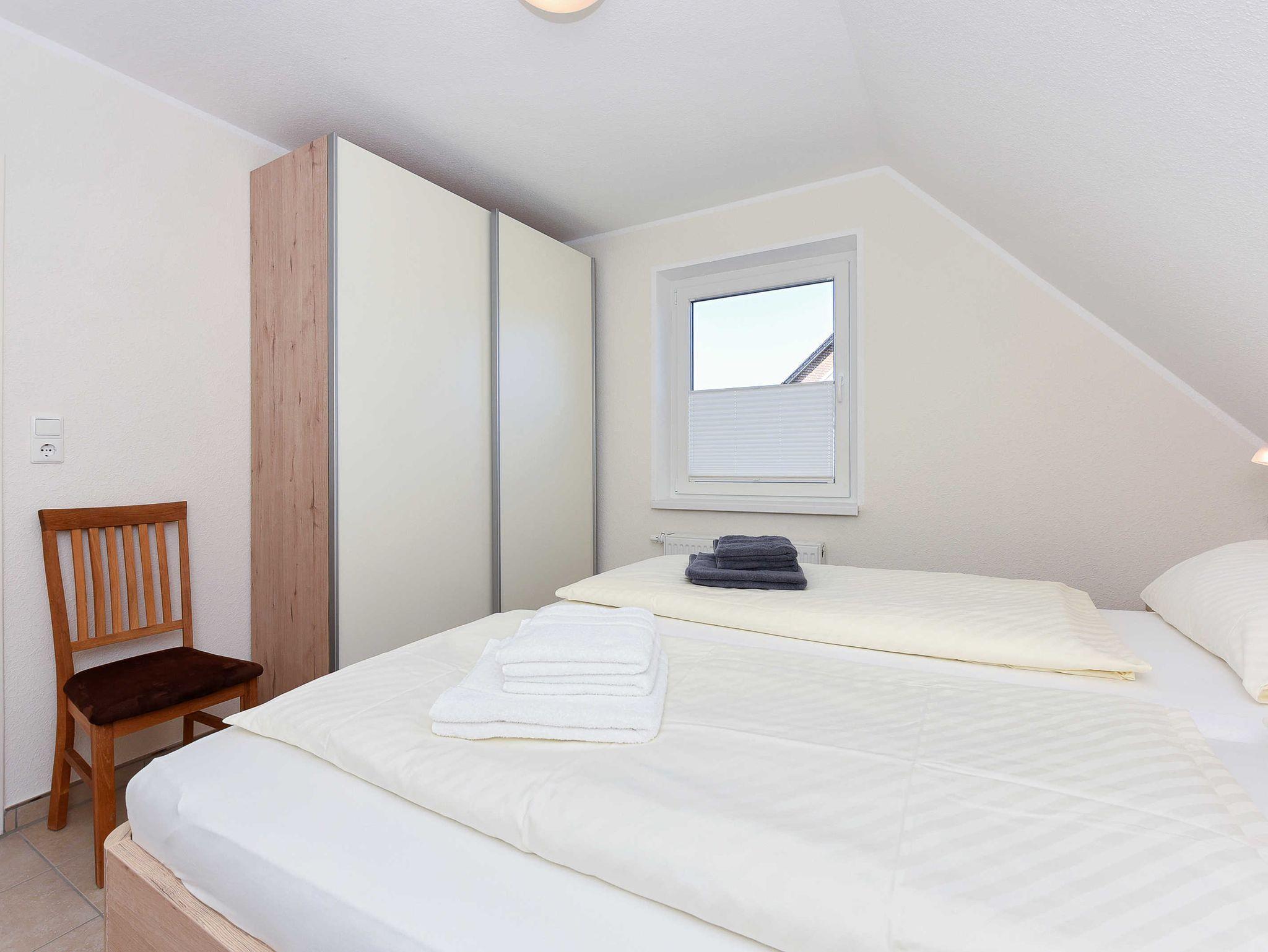 Größe ca. 65 Quadratmeter, Wohnraum mit integrierter Küche und Essgruppe, Schlafzimmer, zweites separates Schlafzimmer/Kinderzimmer, Badezimmer mit Dusche, Waschtisch und WC, Obergeschoss, Balkon, optimal für 2 bis 4 Personen und zusätzlich ein Kleinkind.