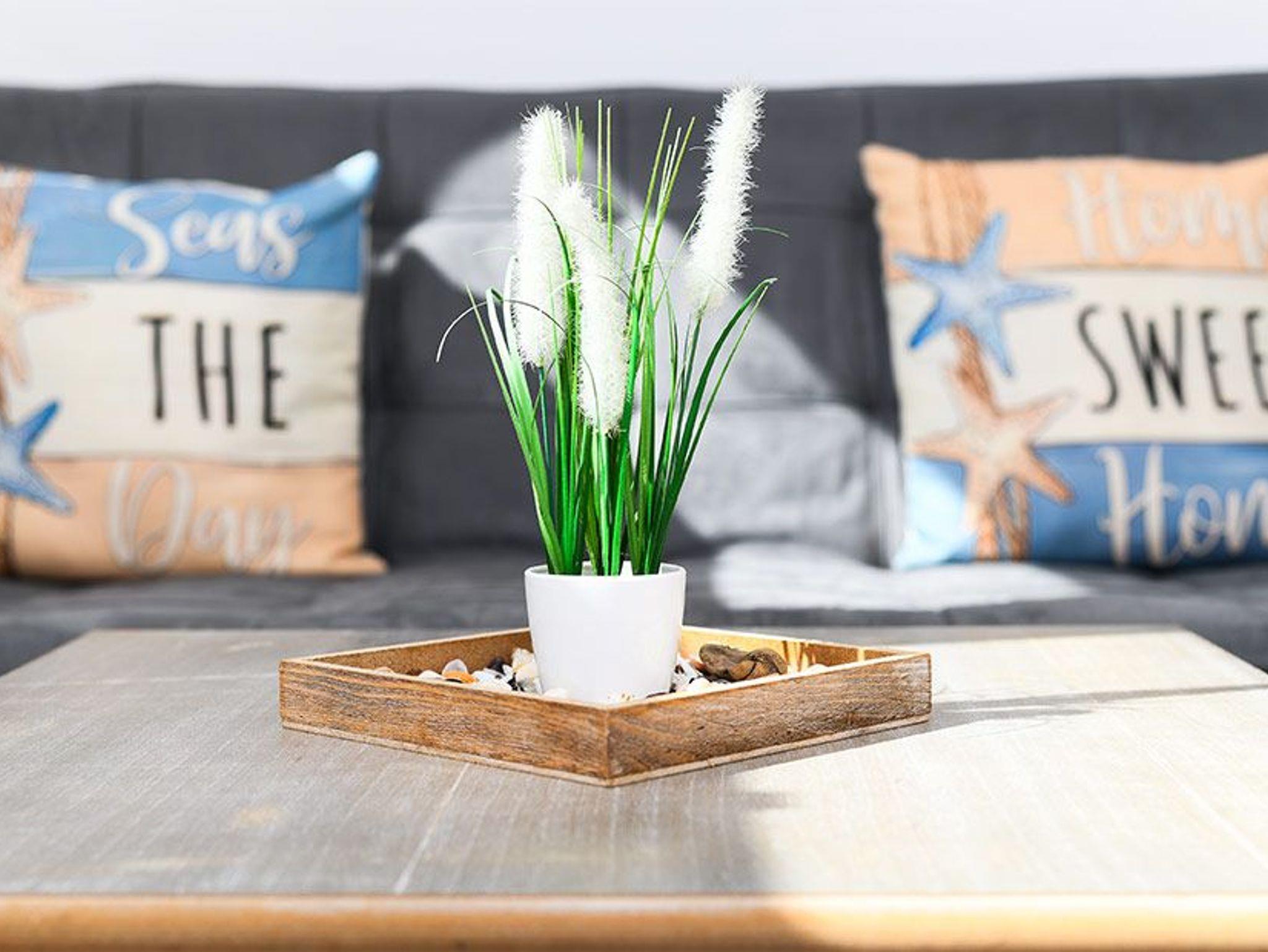 Die fünf Ferienwohnungen sind zwischen ungefähr 44 und ungefähr 35 Quadratmeter groß und für Ihren Urlaub mit 2 bis 3 Personen bestens geeignet. Das Apartment ist ungefähr 29 Quadratmeter groß und für 2 Personen sowie auch für Singles sehr gut geeignet. An unserem Haus gibt es zwei Gemeinschaftsterrassen für alle Wohnungen und das Apartment, eine vor dem Haus, dort steht auch ein schöner Strandkorb für Sie, und eine hinter dem Haus mit einer schönen Terrasse.