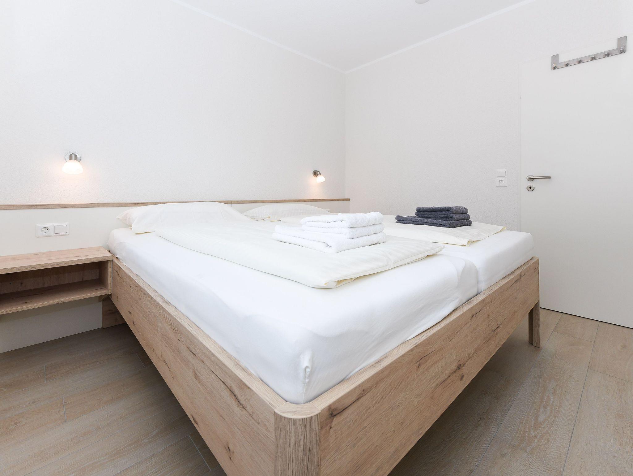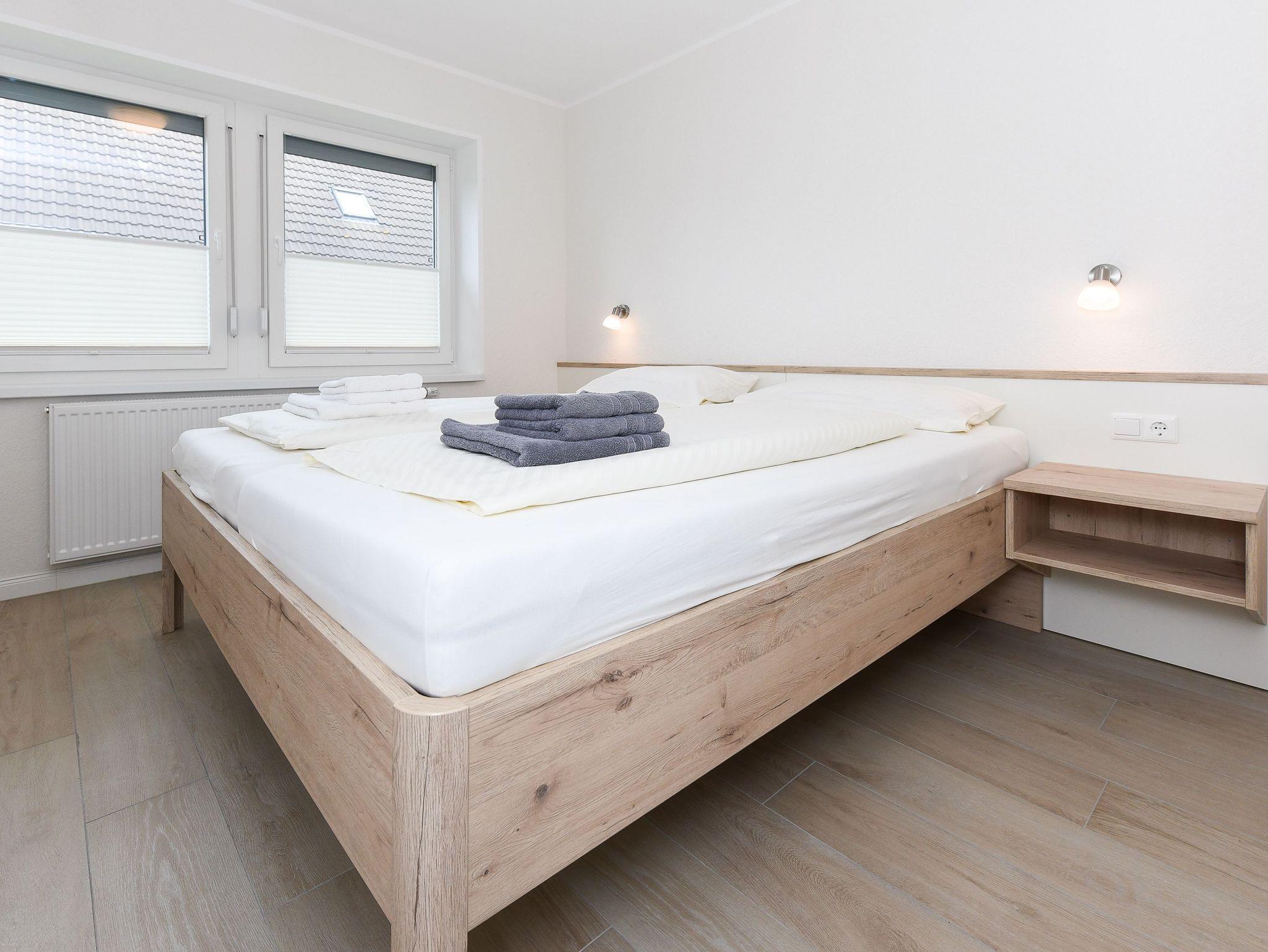 Größe ca. 60 Quadratmeter, Wohnraum mit integrierter Küche und Essgruppe, Schlafzimmer, zweites separates Schlafzimmer, Badezimmer mit Dusche, Waschtisch und WC, Erdgeschoss, Terrasse, optimal für 2 bis 4 Personen und zusätzlich ein Kleinkind.
