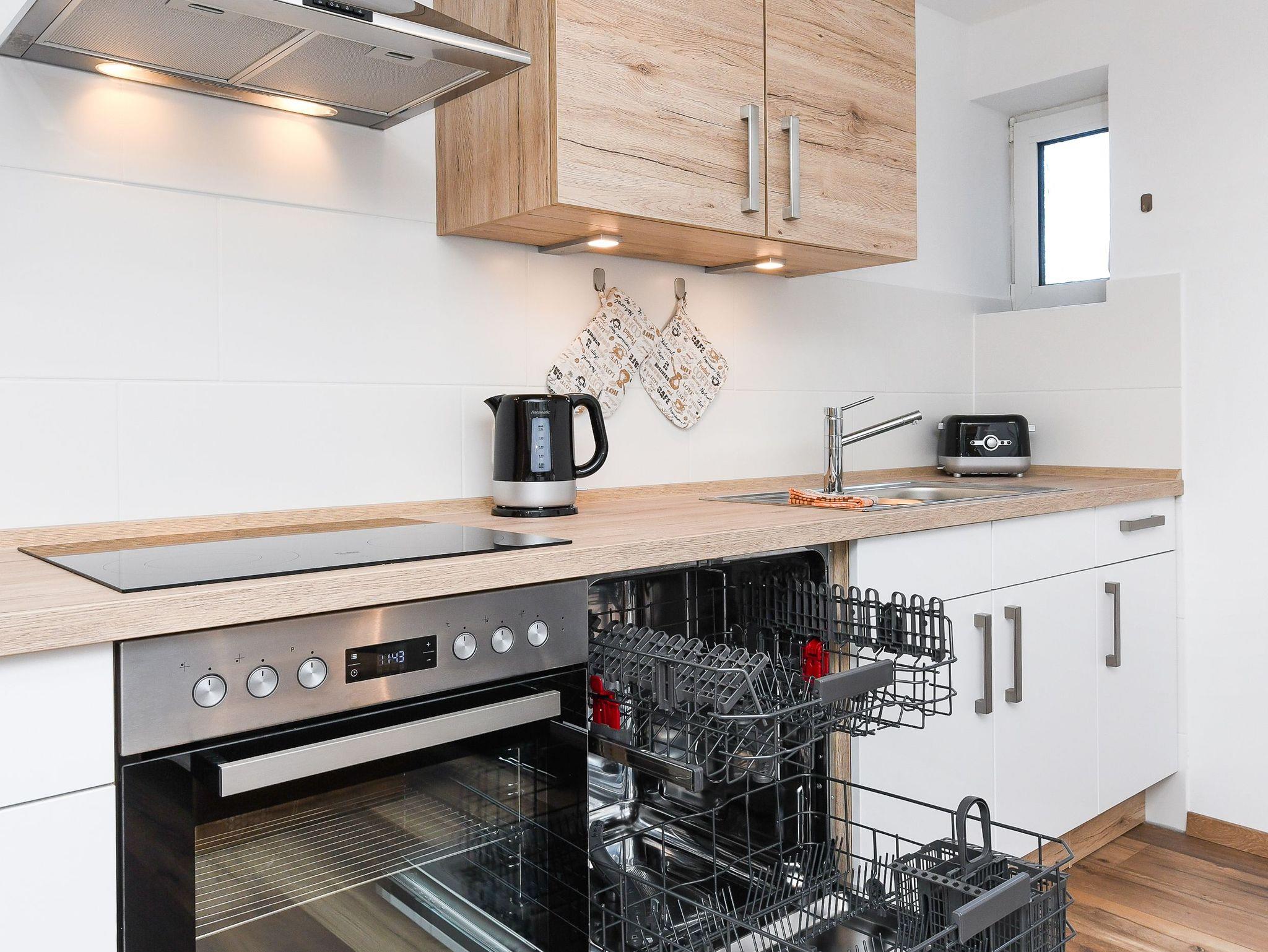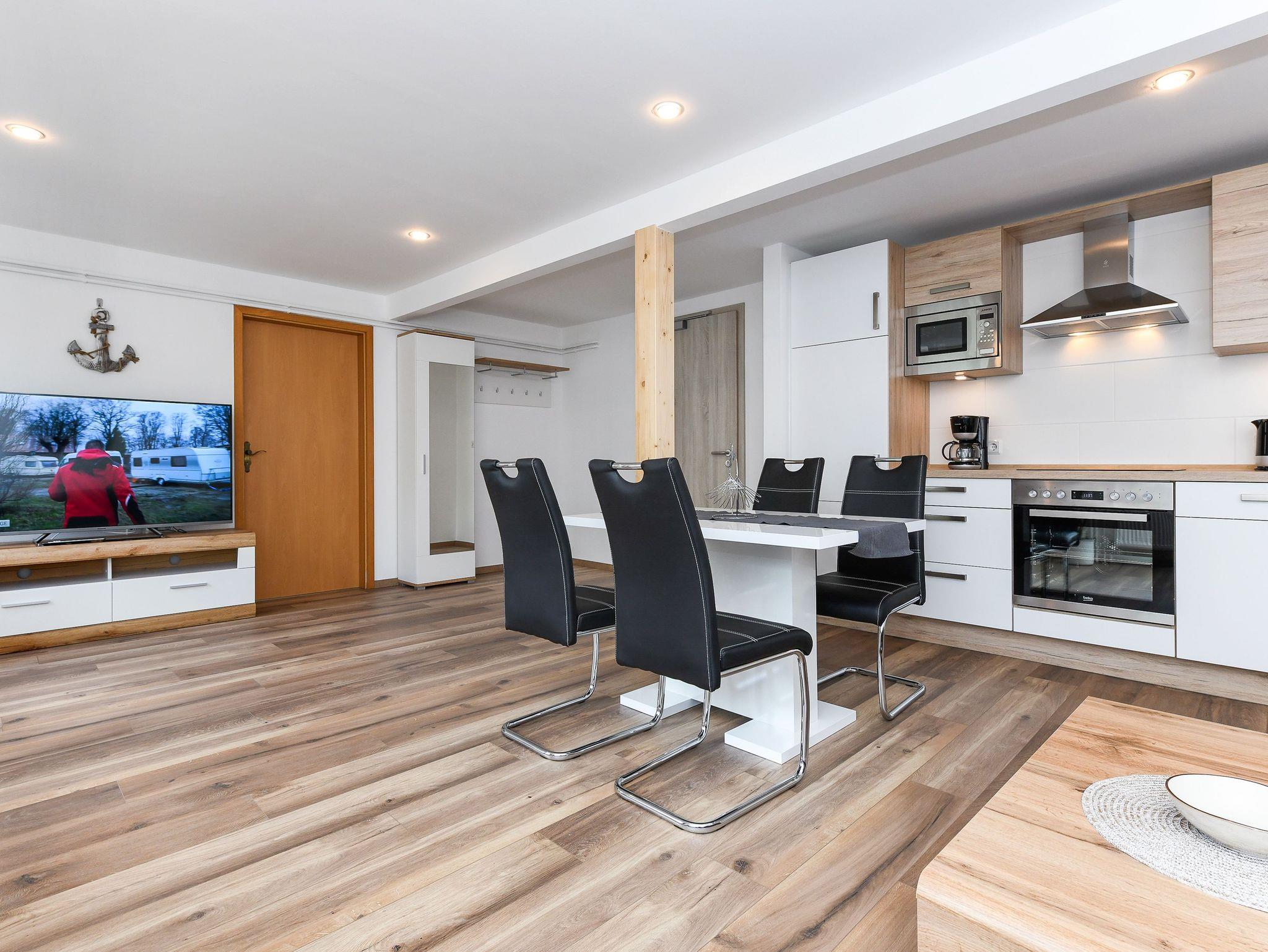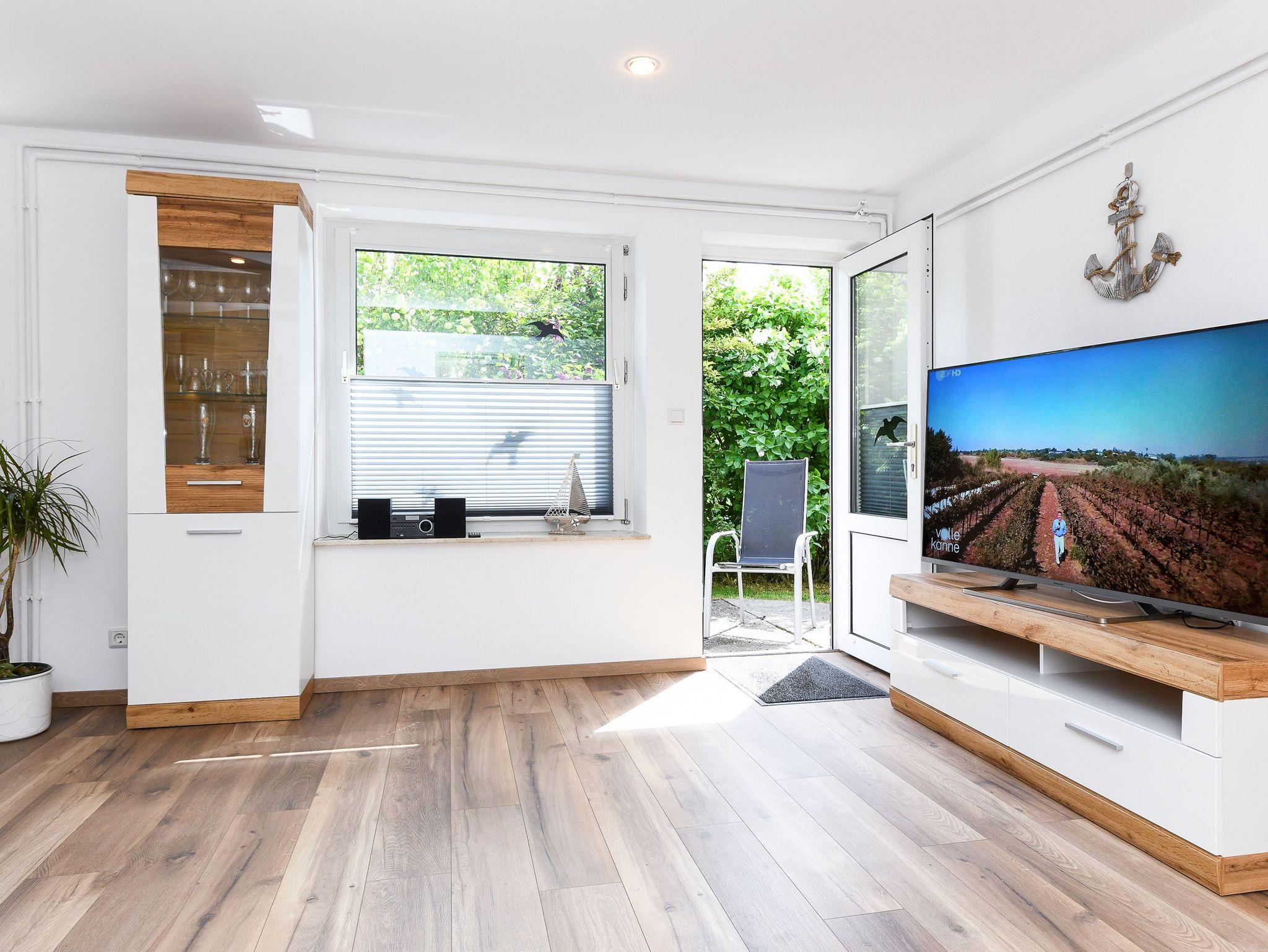Größe ca. 55 Quadratmeter, Wohnraum mit integrierter Küche, Schlafzimmer, Badezimmer mit Dusche, Waschtisch und WC, Erdgeschoss, Terrasse, optimal für 1 bis 2 Personen und zusätzlich ein Kleinkind.