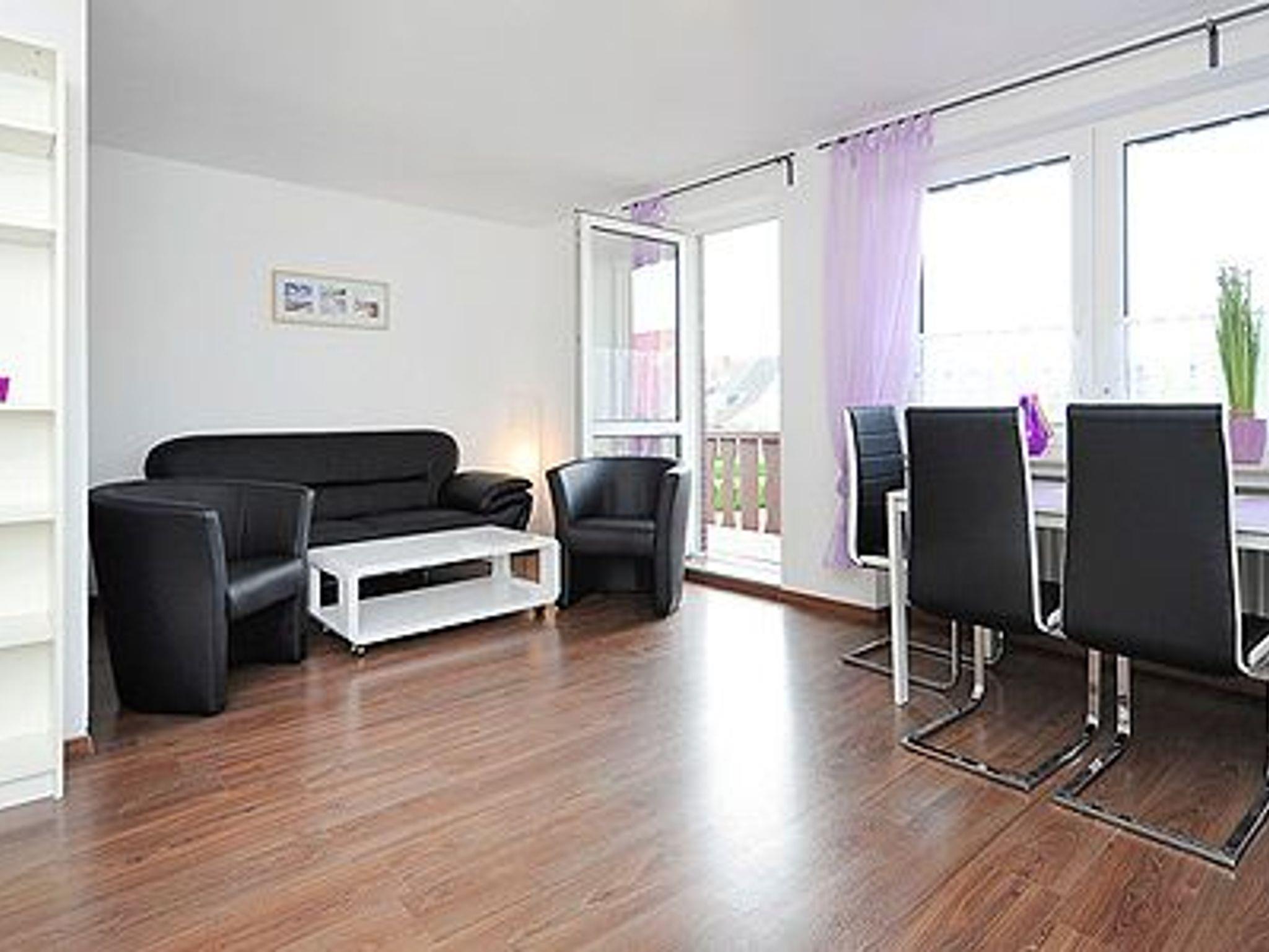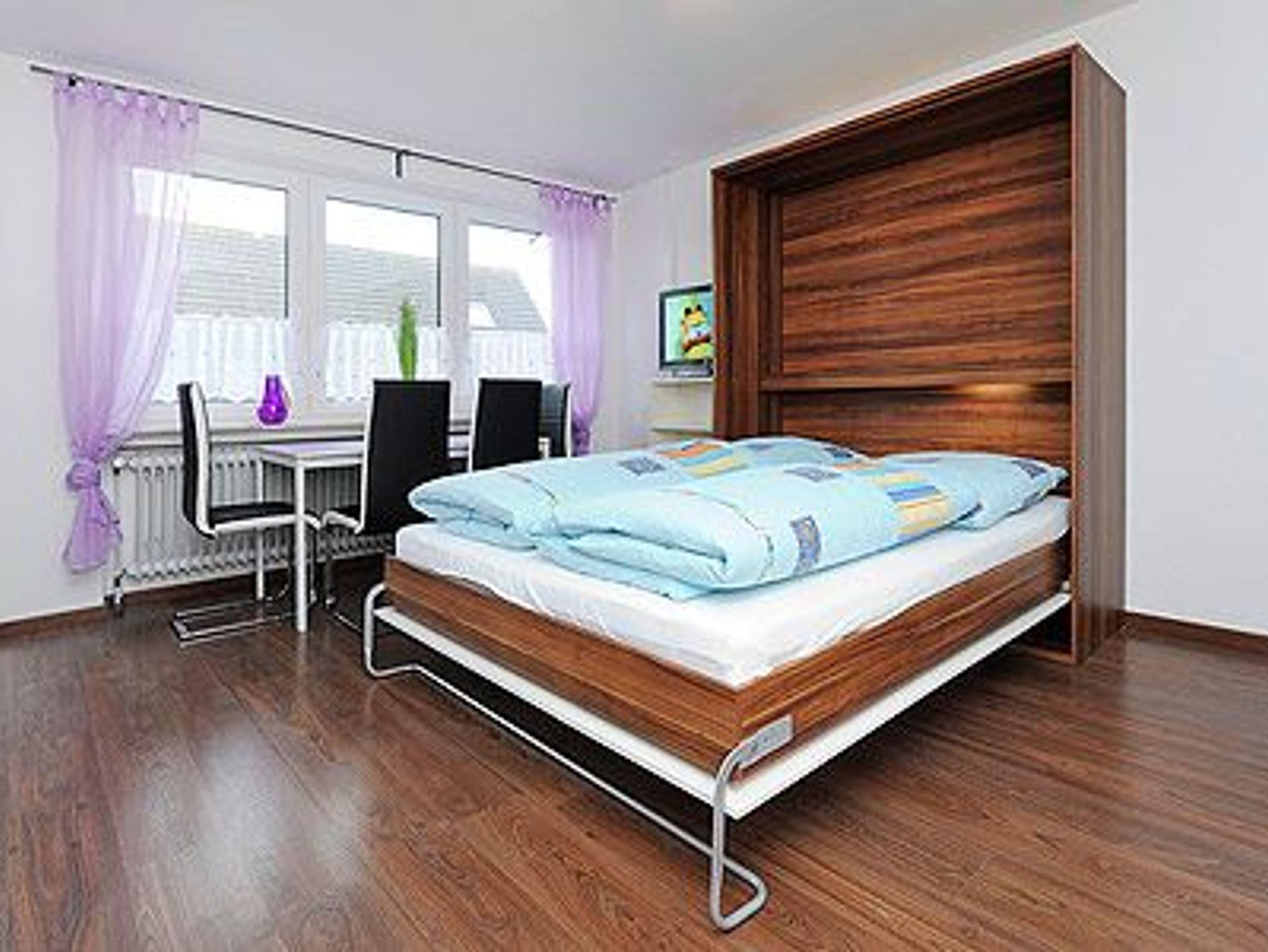 Größe ca. 42 Quadratmeter, Wohn- und Schlafraum mit integriertem Küchenbereich, zweites separates Schlafzimmer/Kinderzimmer, Badezimmer mit Dusche, Waschtisch und WC, Obergeschoss, Balkon, Internetzugang über WLAN möglich, optimal für 2 bis 4 Personen.