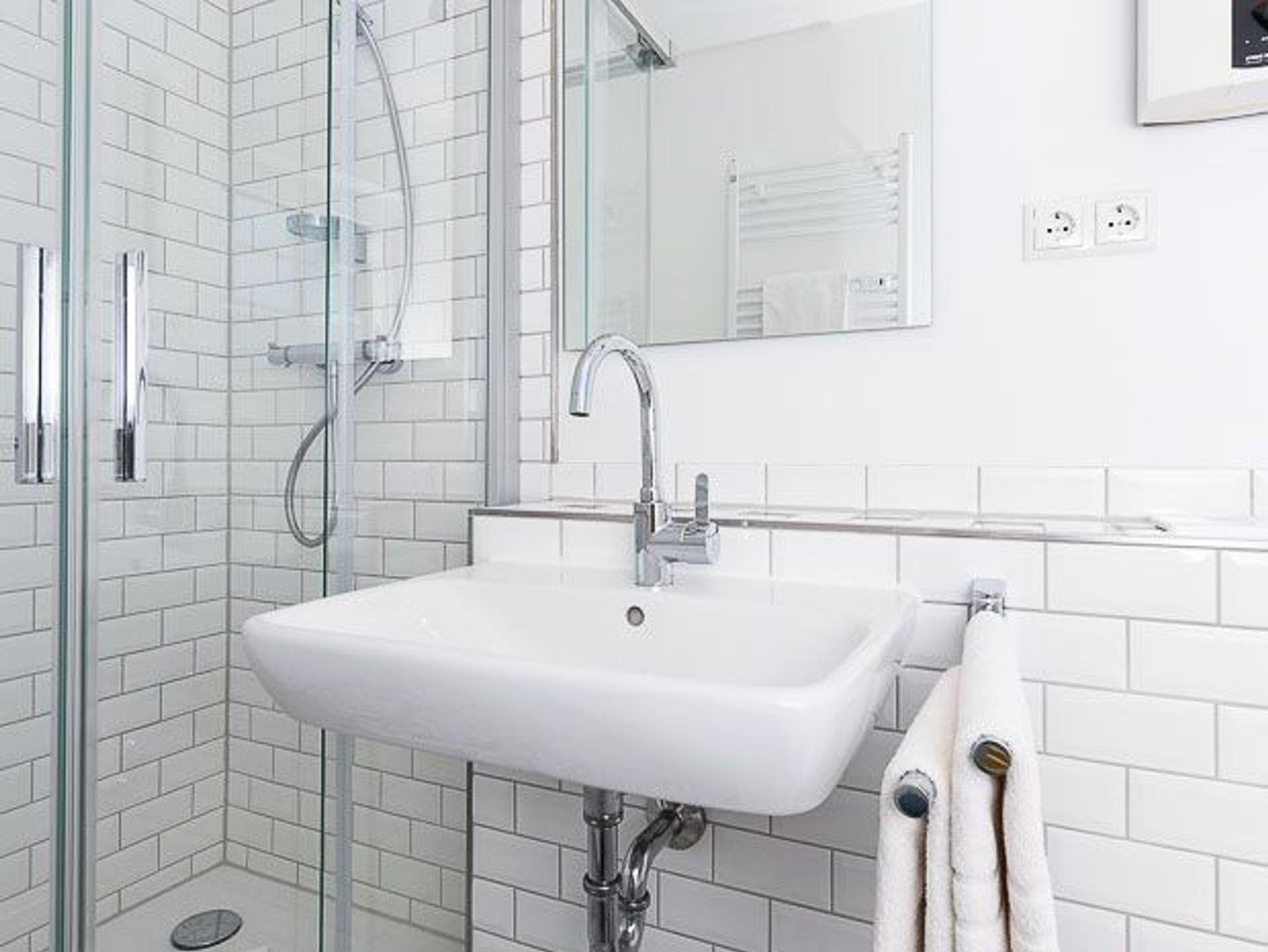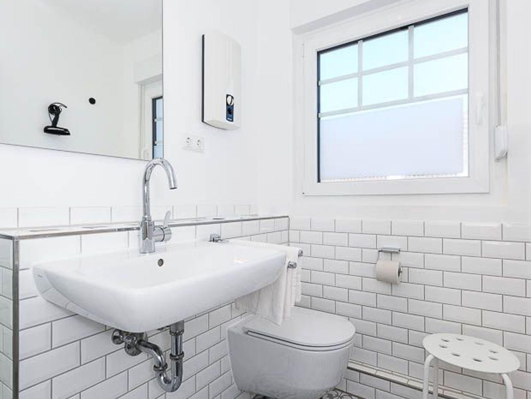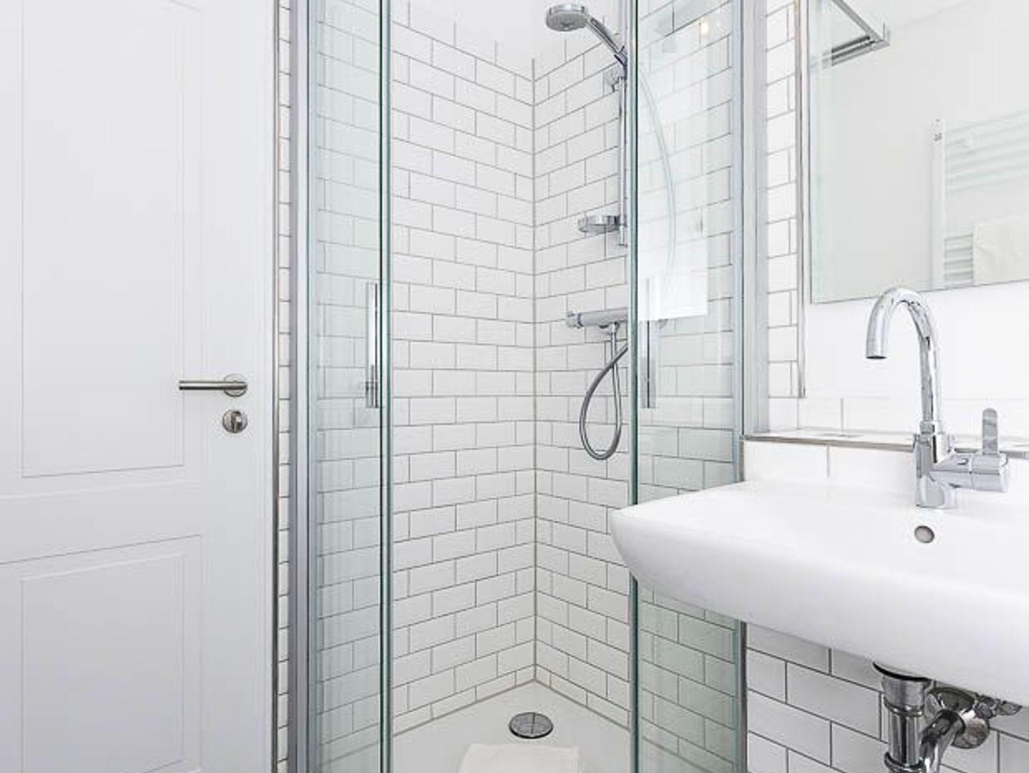 Badezimmer mit Dusche, Waschtisch und WC