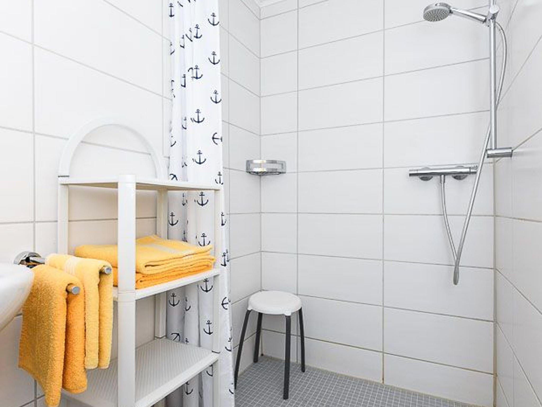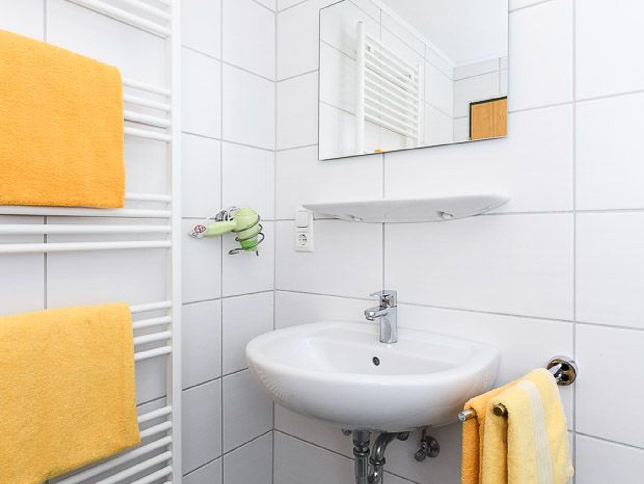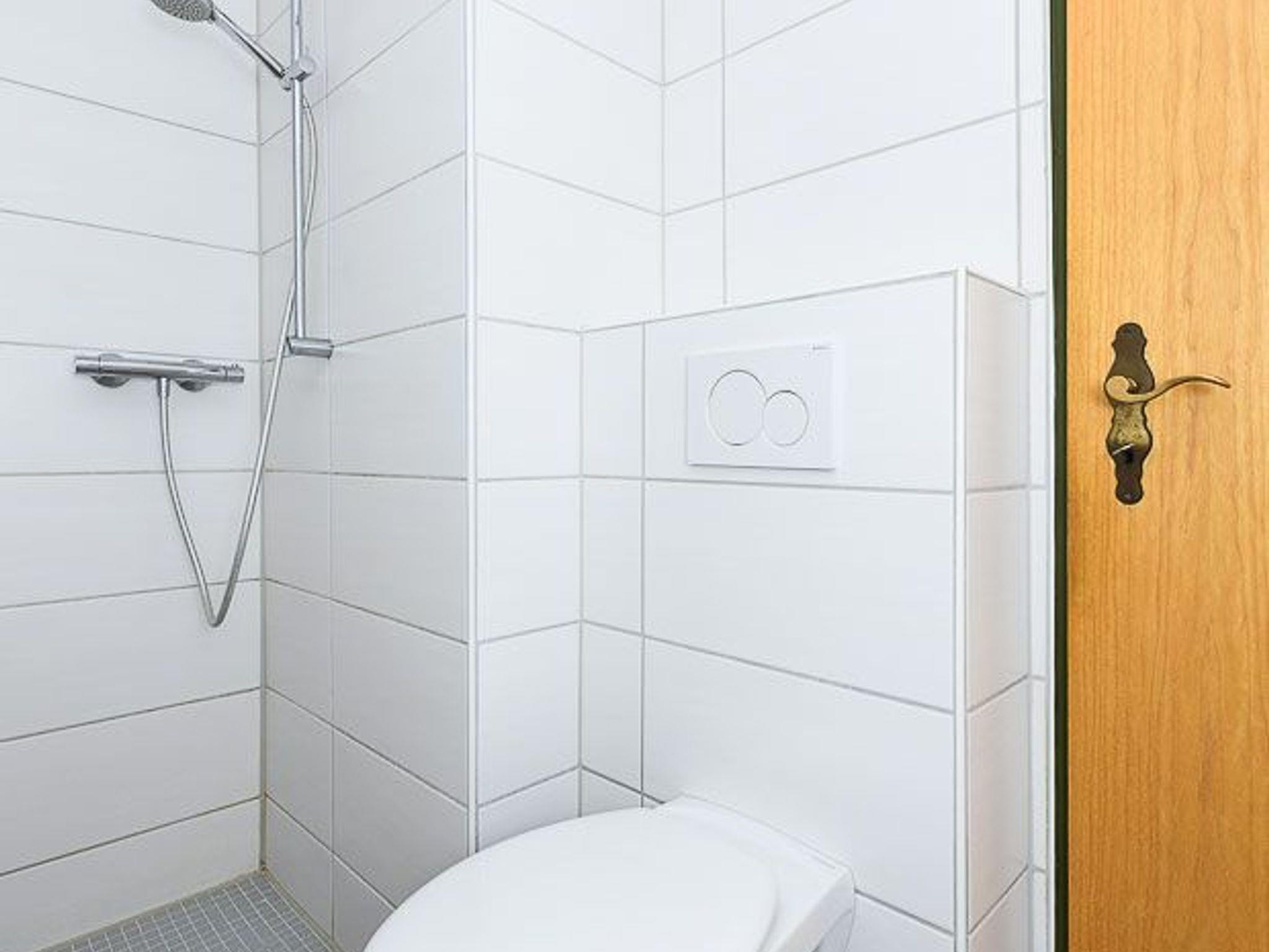 Badezimmer mit Dusche, Waschtisch und WC