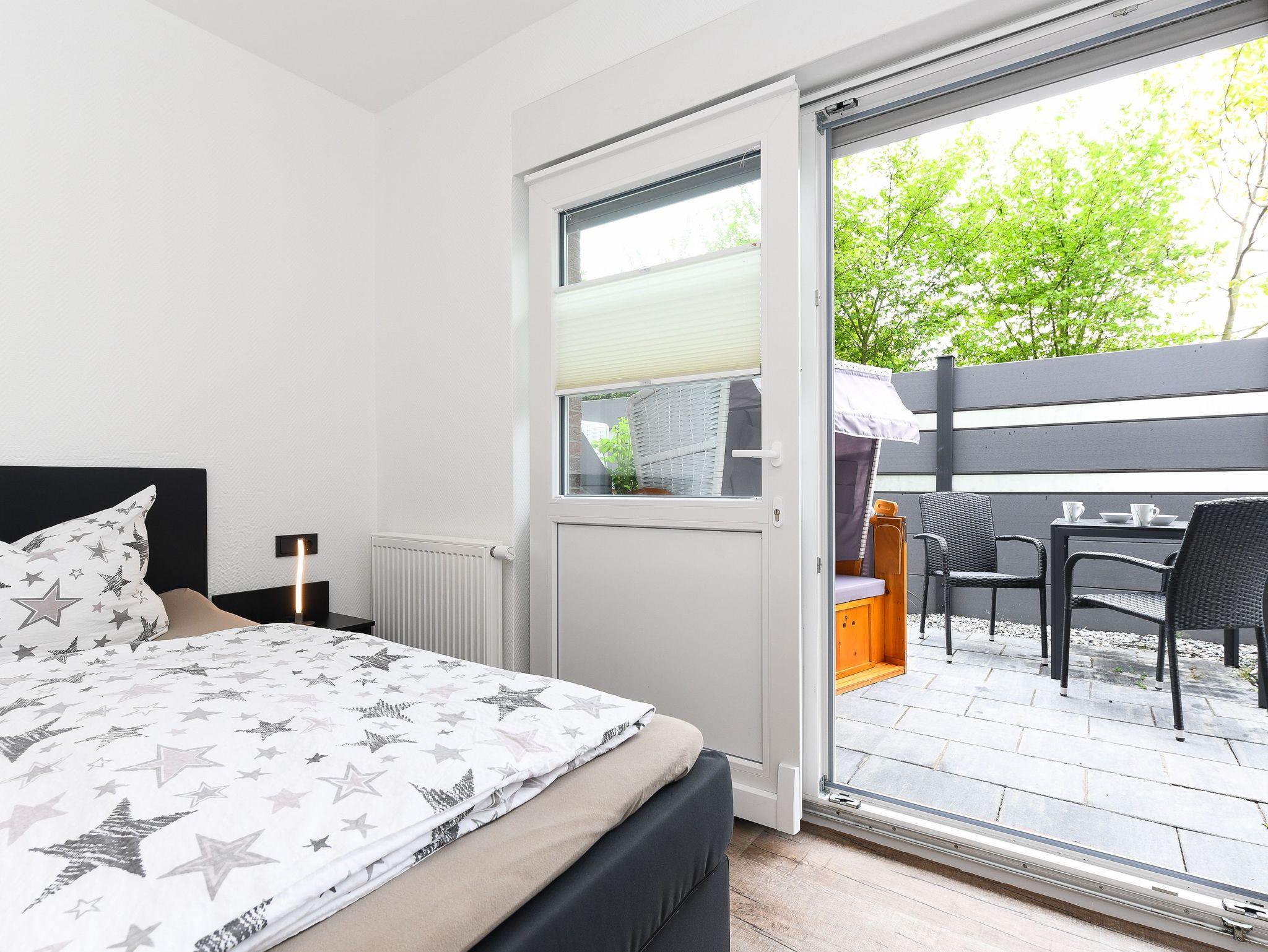 Die fünf Ferienwohnungen sind zwischen ungefähr 44 und ungefähr 35 Quadratmeter groß und für Ihren Urlaub mit 2 bis 3 Personen bestens geeignet. Das Apartment ist ungefähr 29 Quadratmeter groß und für 2 Personen sowie auch für Singles sehr gut geeignet. An unserem Haus gibt es zwei Gemeinschaftsterrassen für alle Wohnungen und das Apartment, eine vor dem Haus, dort steht auch ein schöner Strandkorb für Sie, und eine hinter dem Haus mit einer schönen Terrasse.