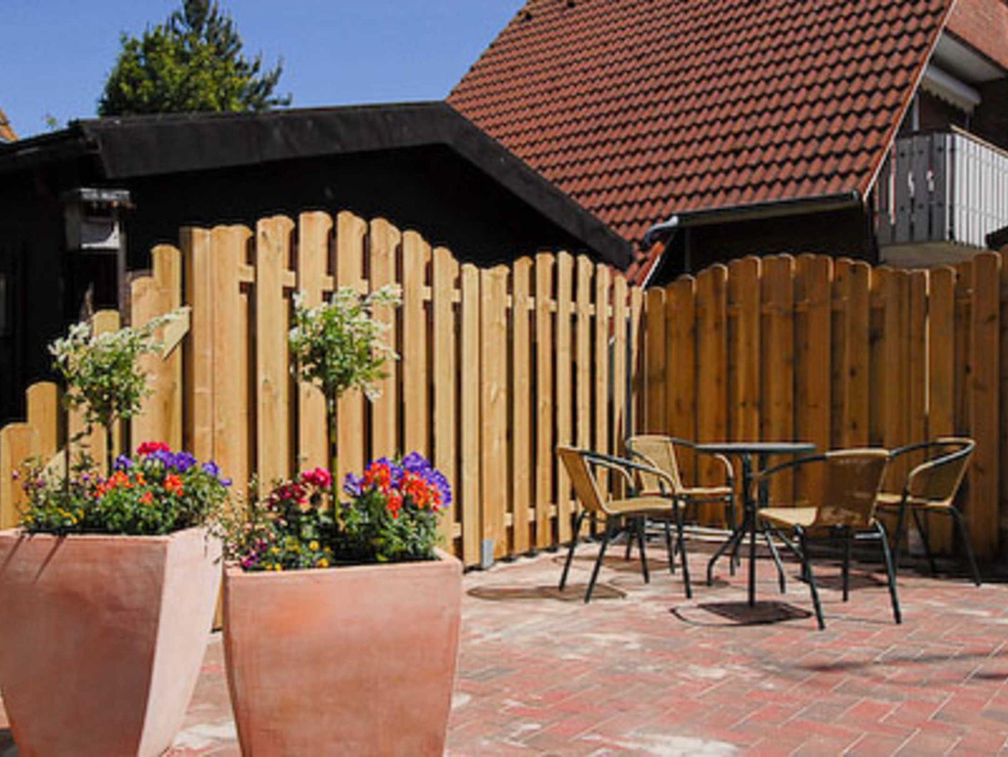 Größe ca. 43 Quadratmeter, Wohn- und Schlafraum, Küche abgeteilt bei offener Wohnraumgestaltung, Schlafzimmer, Badezimmer mit Dusche, Waschtisch und WC, Erdgeschoss, Terrasse, optimal für 2 Personen.