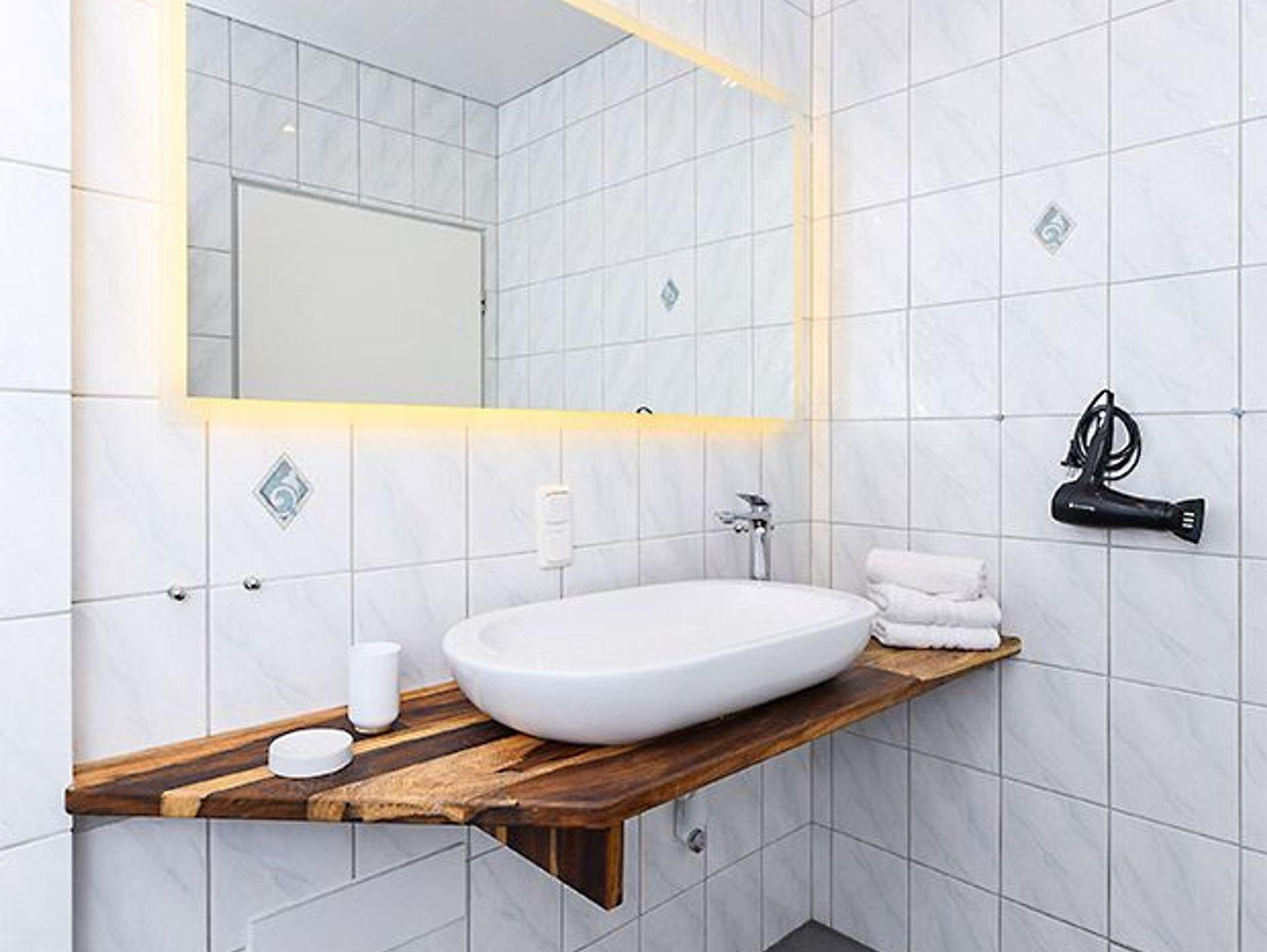Badezimmer mit Dusche, Waschtisch und WC