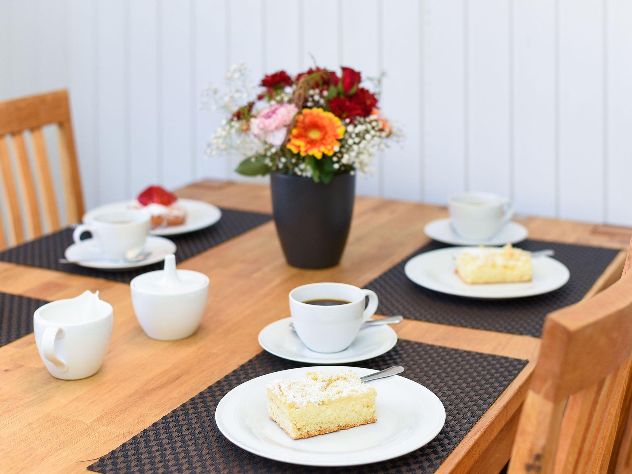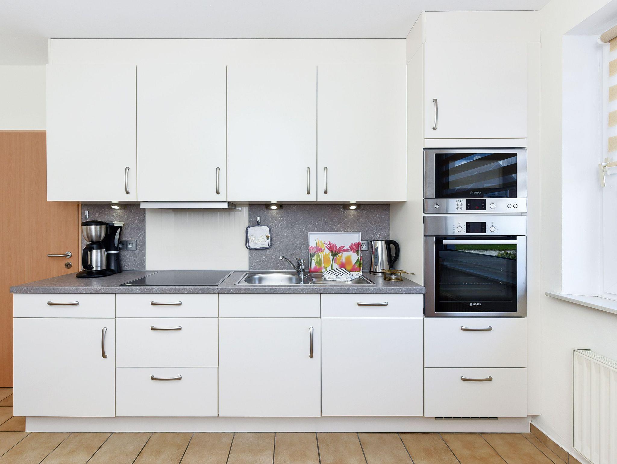 Alle Wohnungen haben entweder eine Terrasse oder einen Balkon. Ein schöner großer Garten steht Ihnen ebenfalls zur Verfügung. Natürlich gibt es in allen Wohnungen voll ausgerüstete moderne Einbauküchen und alles, was man überhaupt im Urlaub benötigen könnte. Jede Wohnung verfügt über eine Mikrowelle, Geschirrspüler ist in der größeren Wohnung vorhanden und Waschmaschine sowie Wäschetrockner stehen für Sie im Waschraum zur Verfügung.