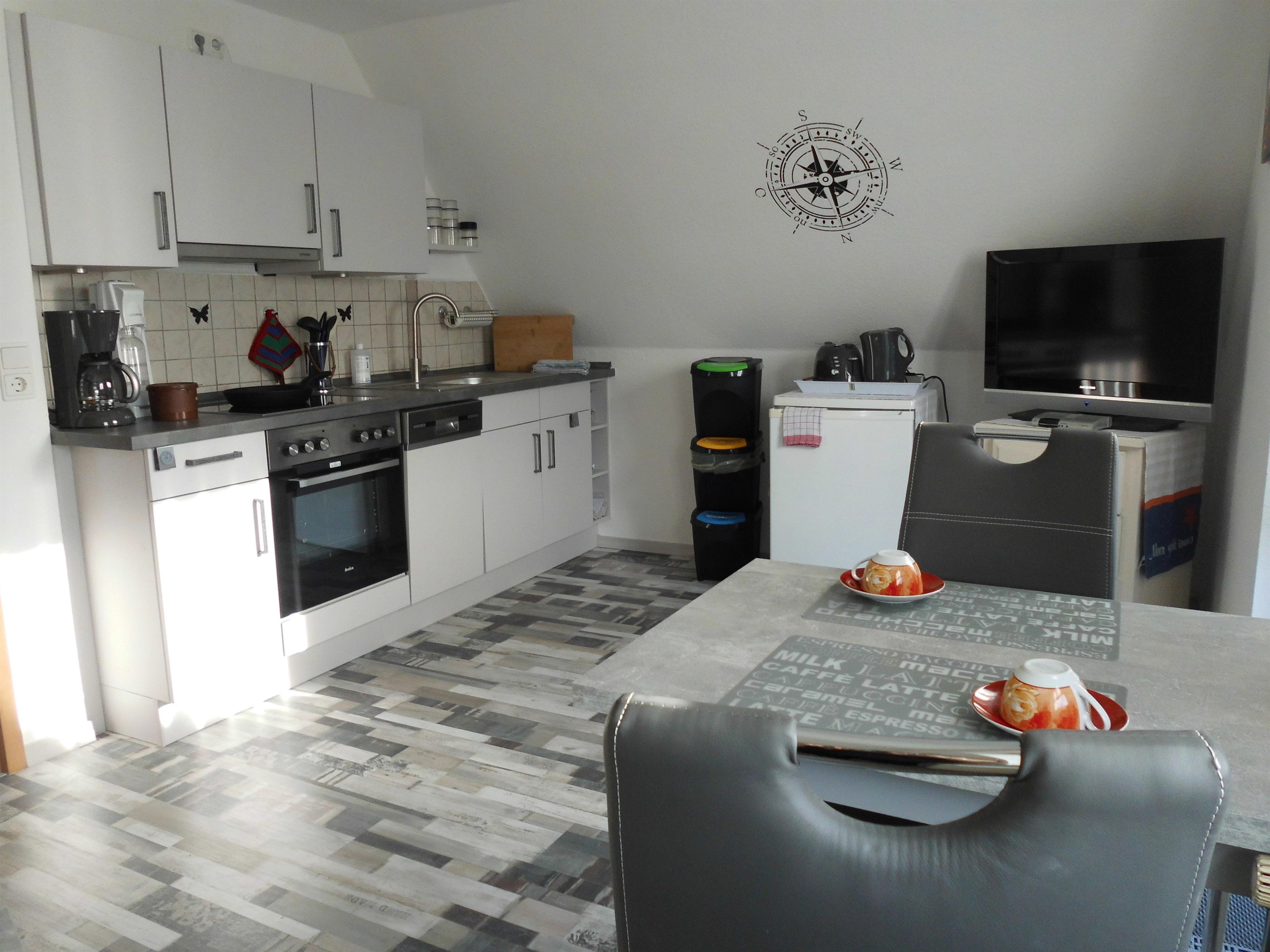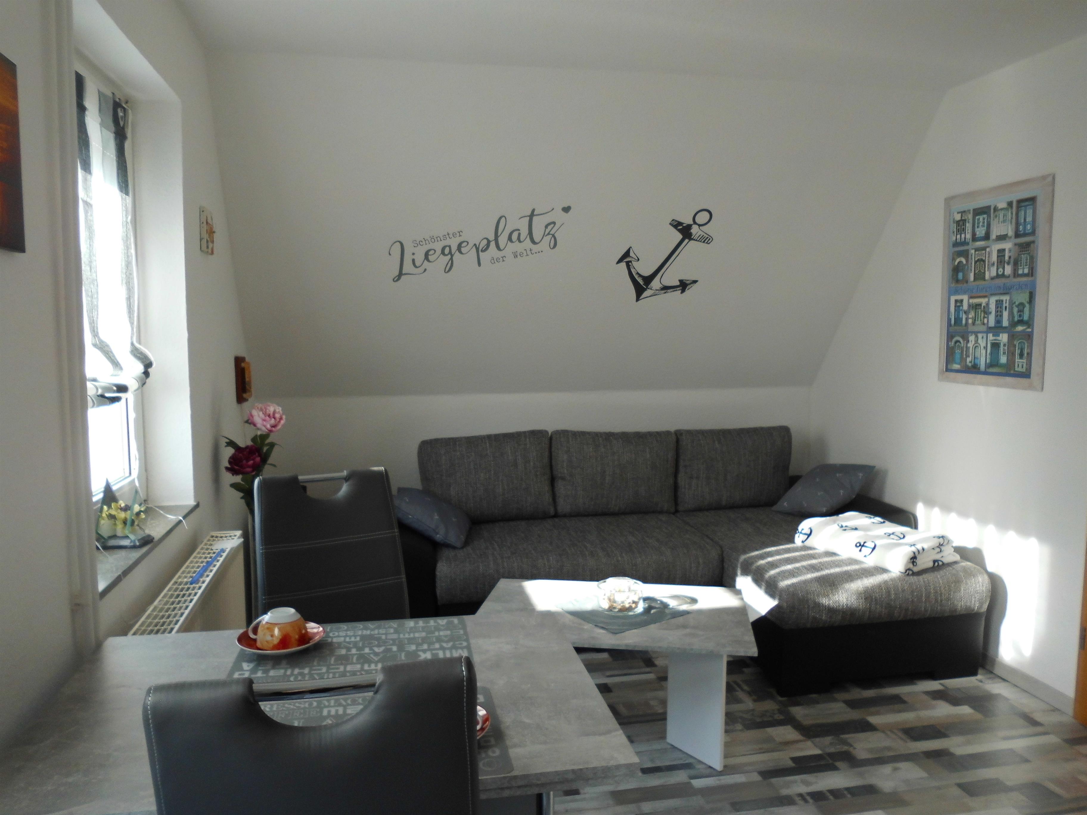 Unser Ferienappartement verfügt über einen großen Wohn-Essbereich mit Schlafcouch, einer neuen vollausgestatteten Küche, ein Schlafzimmer mit Doppelbett und Ruhe-Ecke, ein Badezimmer mit Dusche und WC, sowie einer kleinen Dachterrasse.