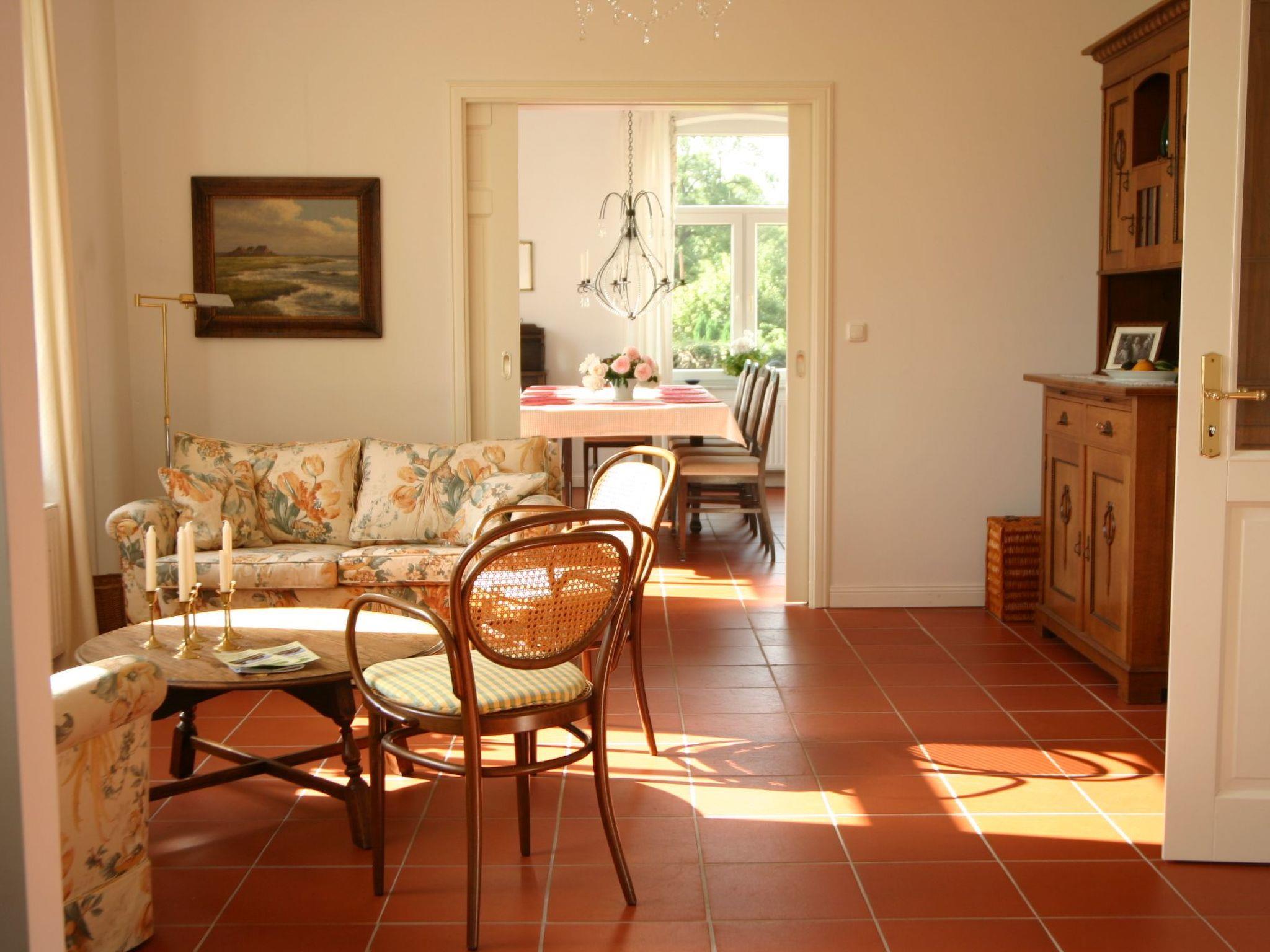 Art Nouveau house, the domicile for family celebrations, meetings of friends and further training In the Elbtalaue biosphere reserve, 5 km from the Elbe, the Art Nouveau house (411 square metres of living space) is part of a 3-part country house on a park-like property (7500 square metres) with a naturally purified bathing lake. The village of Krusendorf consists of 13 farms, some of which are still farmed, and a small village church.