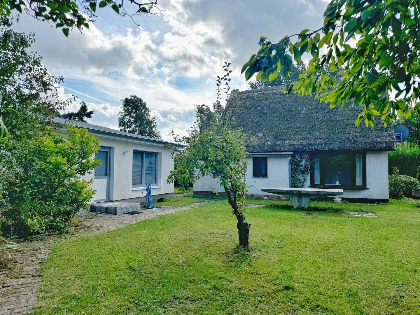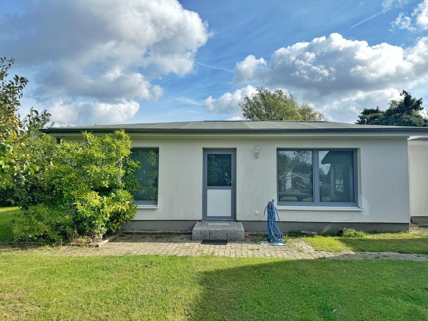 "Min Hütt II" befindet sich direkt neben dem reetgedeckten Ferienhaus auf dem gleichen Grundstück und ist ein ca. 55 qm großer Bungalow. Dieser unterteilt sich in 2 separate Schlafzimmer mit jeweils einem Doppelbett, einen Wohn- und Essbereich mit Sitzgelegenheit, Esstisch und Flachbildfernseher, eine kleine Kochnische mit Kühlschrank, 2-Plattenherd, Badezimmer mit Dusche und Toilette.