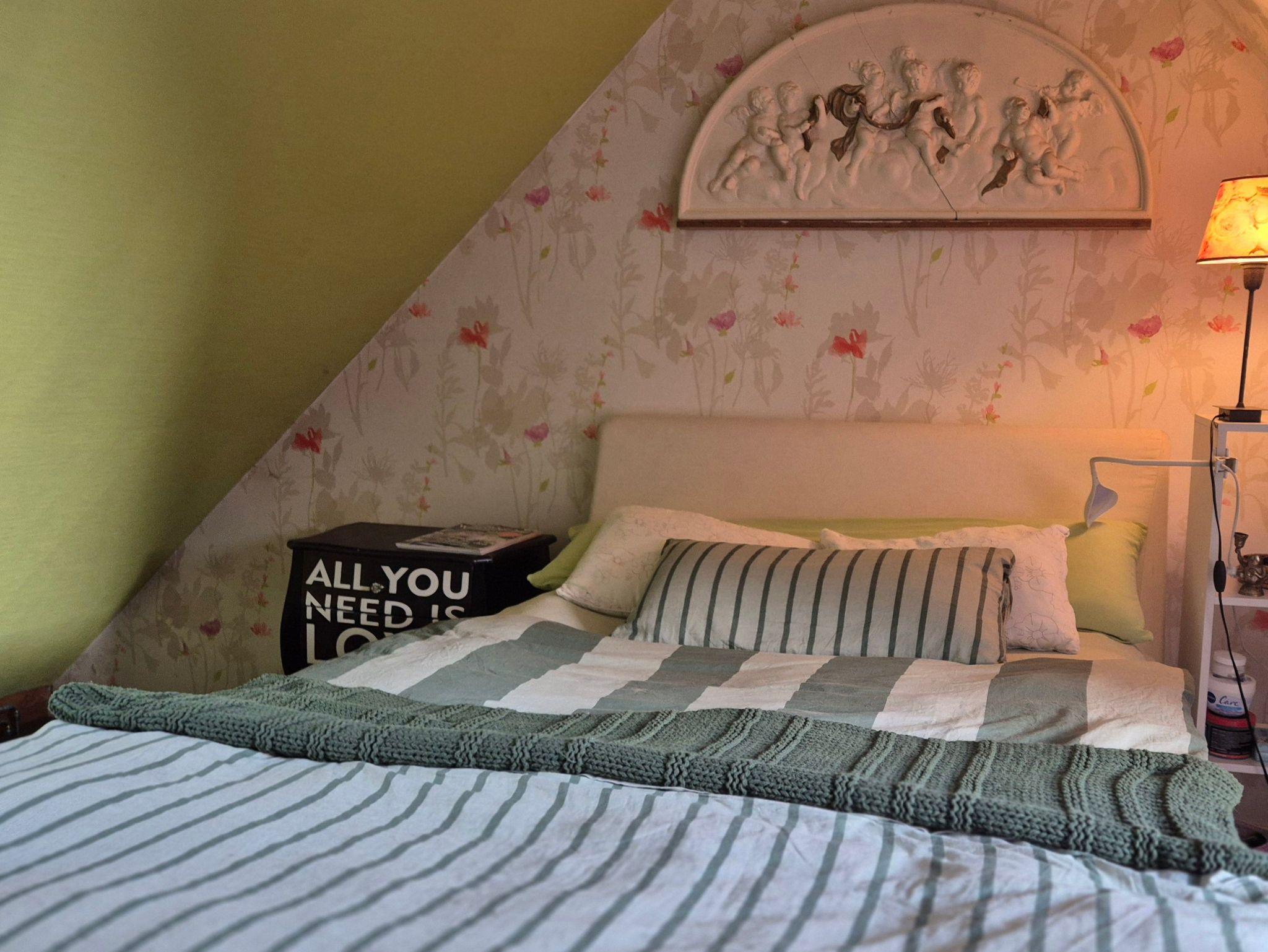 Über eine Treppe gelangen Sie in das Obergeschoss, wo sich das gemütliche Schlafzimmer mit Doppelbett (1,40 m) und einer charmanten Tageslichtgaube befindet. Von hier fällt der Blick direkt auf die Dachterrasse ? ein Vorgeschmack auf entspannte Stunden an der frischen Luft.