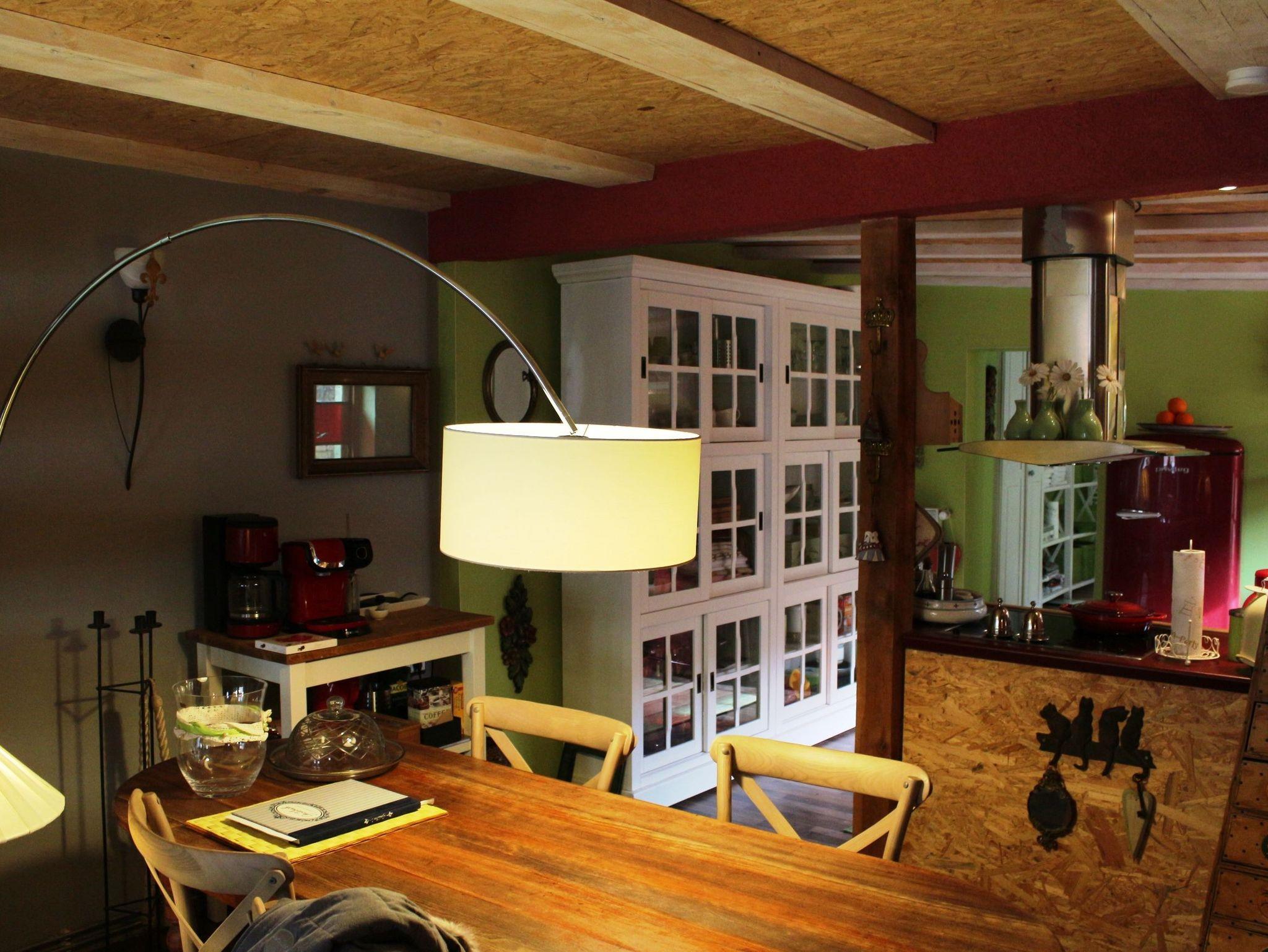 Am Kneipentisch im Essbereich können Sie an kälteren Tagen spielen, lesen oder einfach die besondere Atmosphäre genießen.