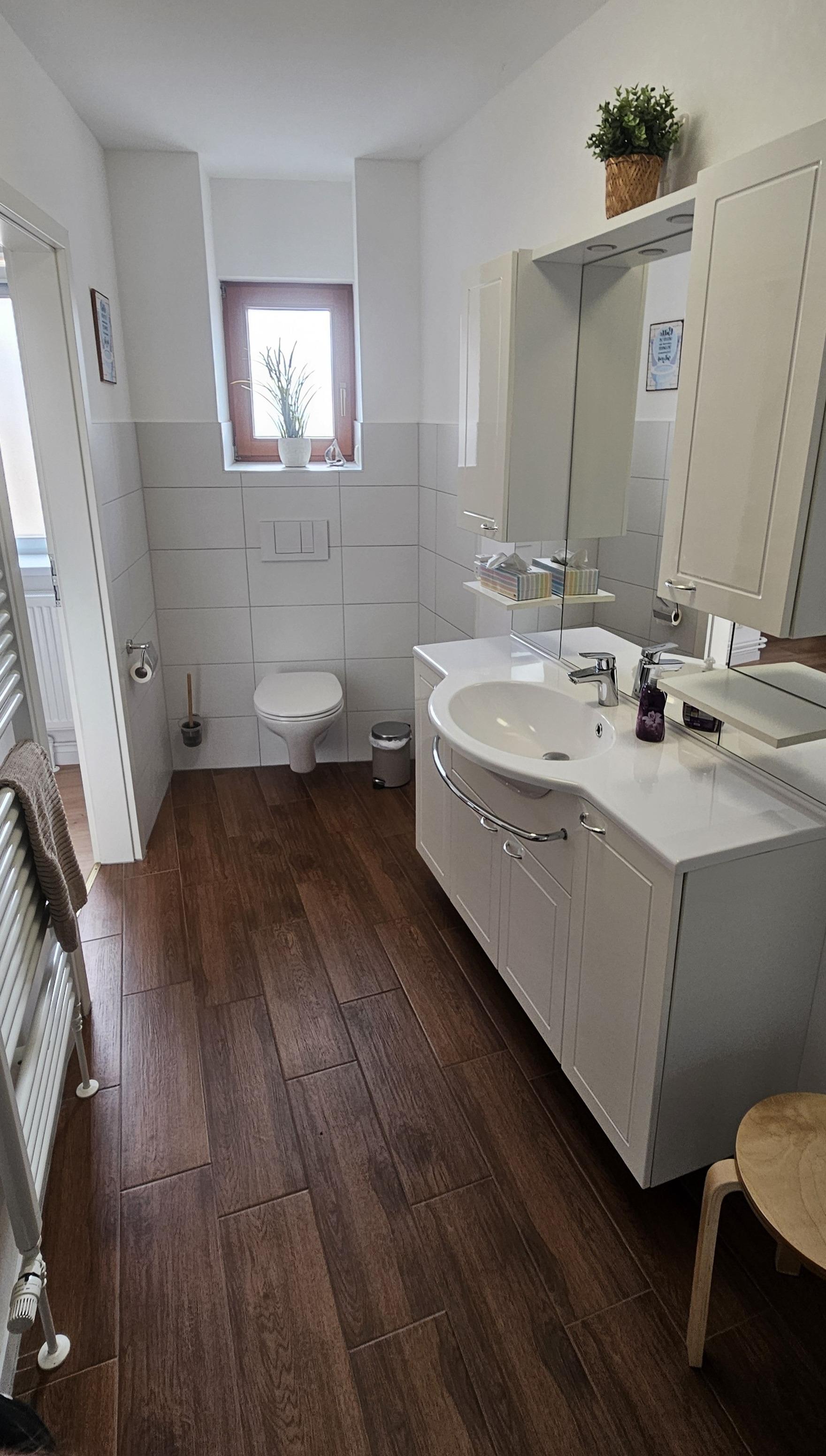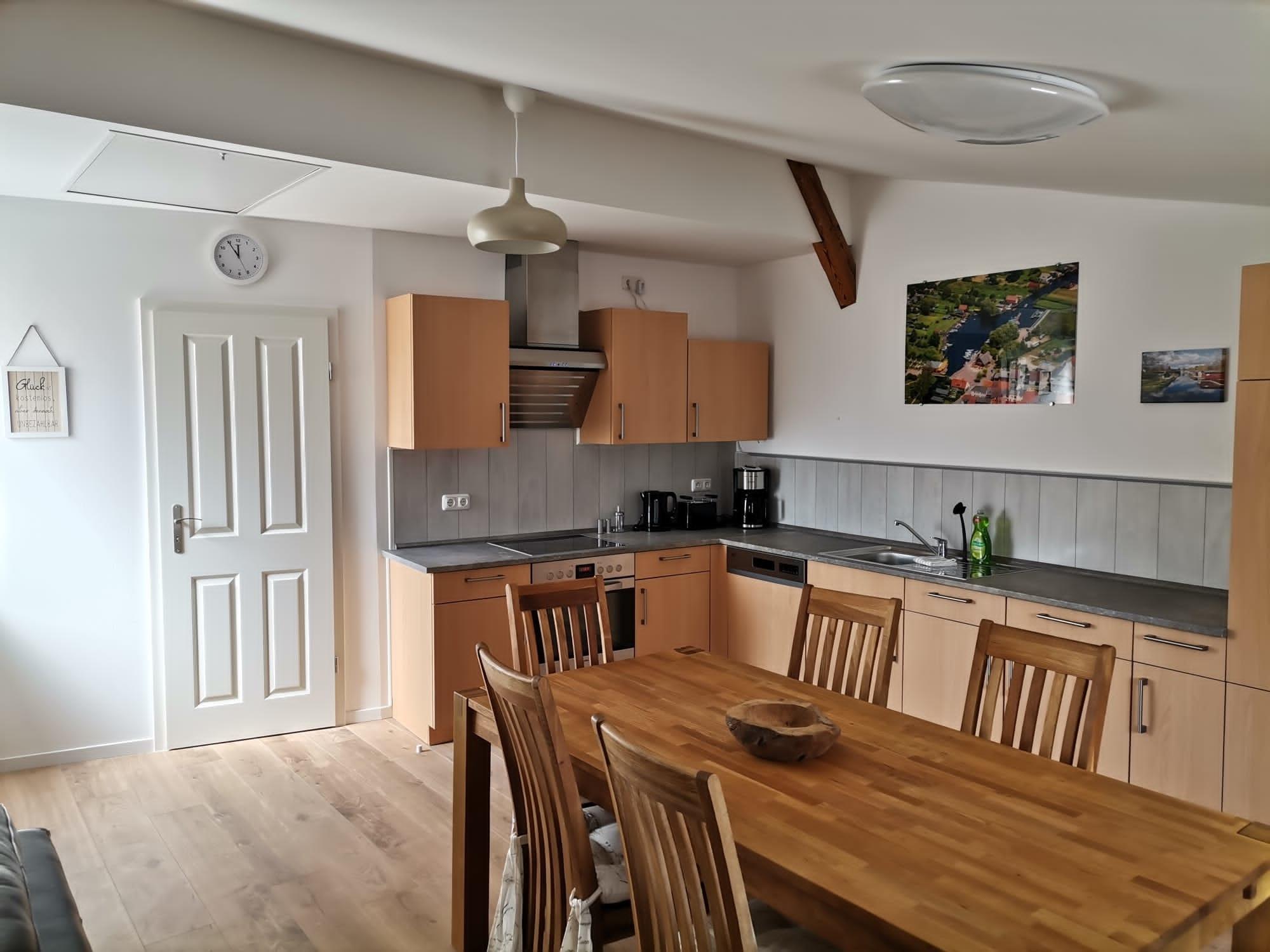 Die Unterkunft verfügt über einen separaten Eingang, kostenfreies WLAN, zwei Schlafzimmer inkl. Bettwäsche, ein Duschbad inkl. Handtücher sowie einem großen und gemütlichen offenen Wohn- und Kochbereich mit Wohnlandschaft, Küchenzeile und einem großen Tisch mit 6 Stühlen.