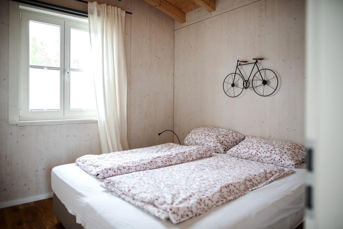 Die idyllische Wohnung ist komplett mit massiven Eichendielen ausgestattet und deshalb auch für Allergiker geeignet. Ein üppig begrüntes Kräuterdach verhindert das Aufheizen der Wohnung während der heißen Sonnenstunden.