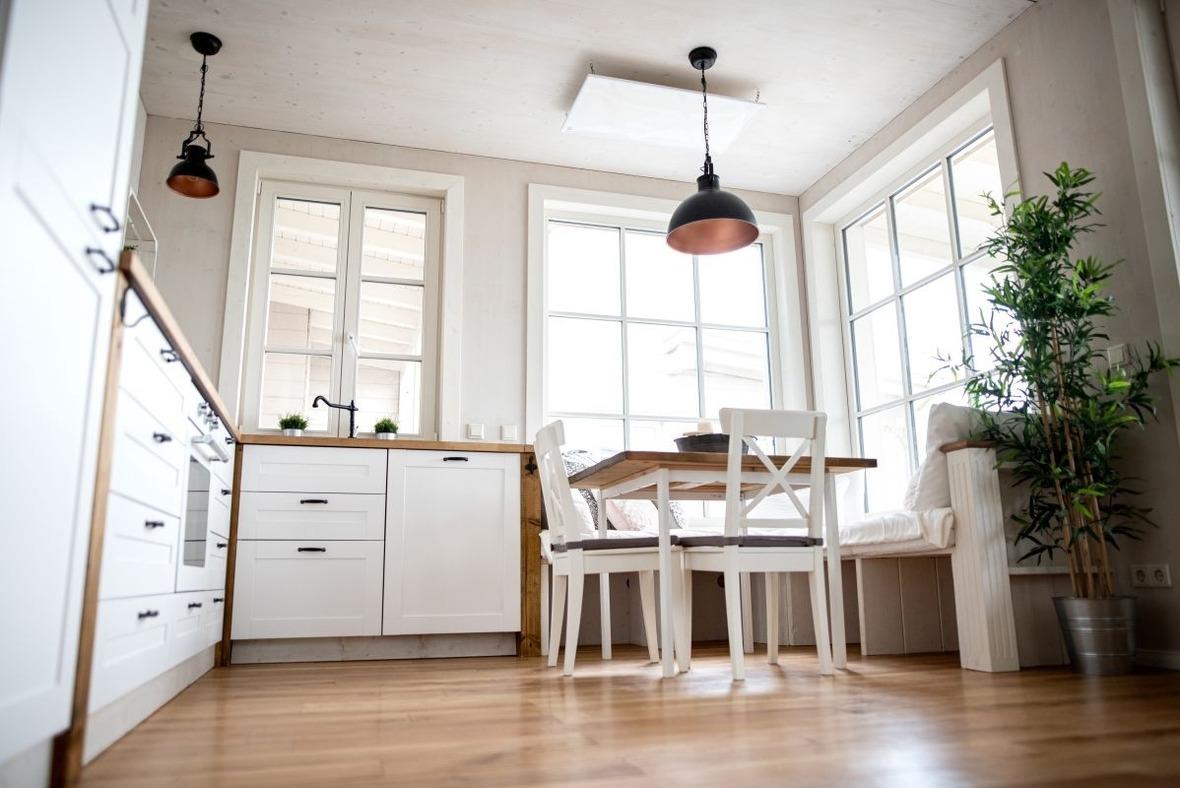 In der reichlich ausgestatteten Küche finden Sie alles, was zu einem gut funktionierenden Haushalt gehört. Sogar ein SodaStreamer für eigens hergestelltes Sprudelwasser steht bereit, sodass Sie keine Plastikflaschen schleppen müssen - und die Natur freut sich auch.