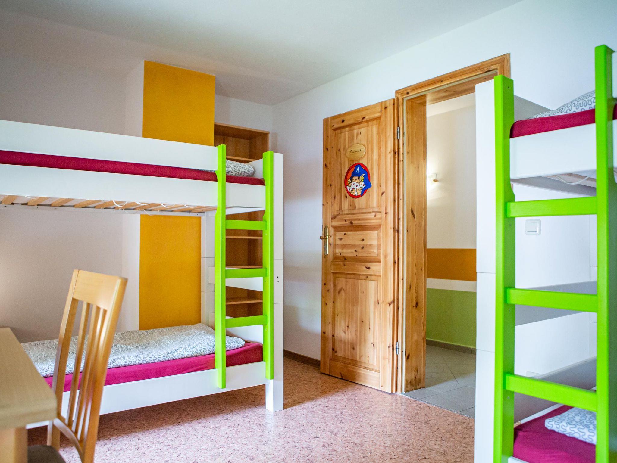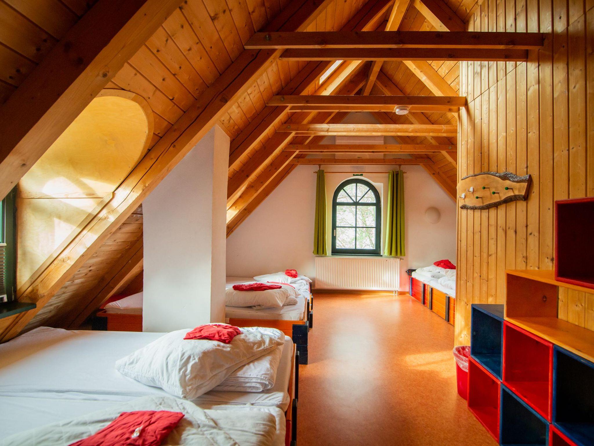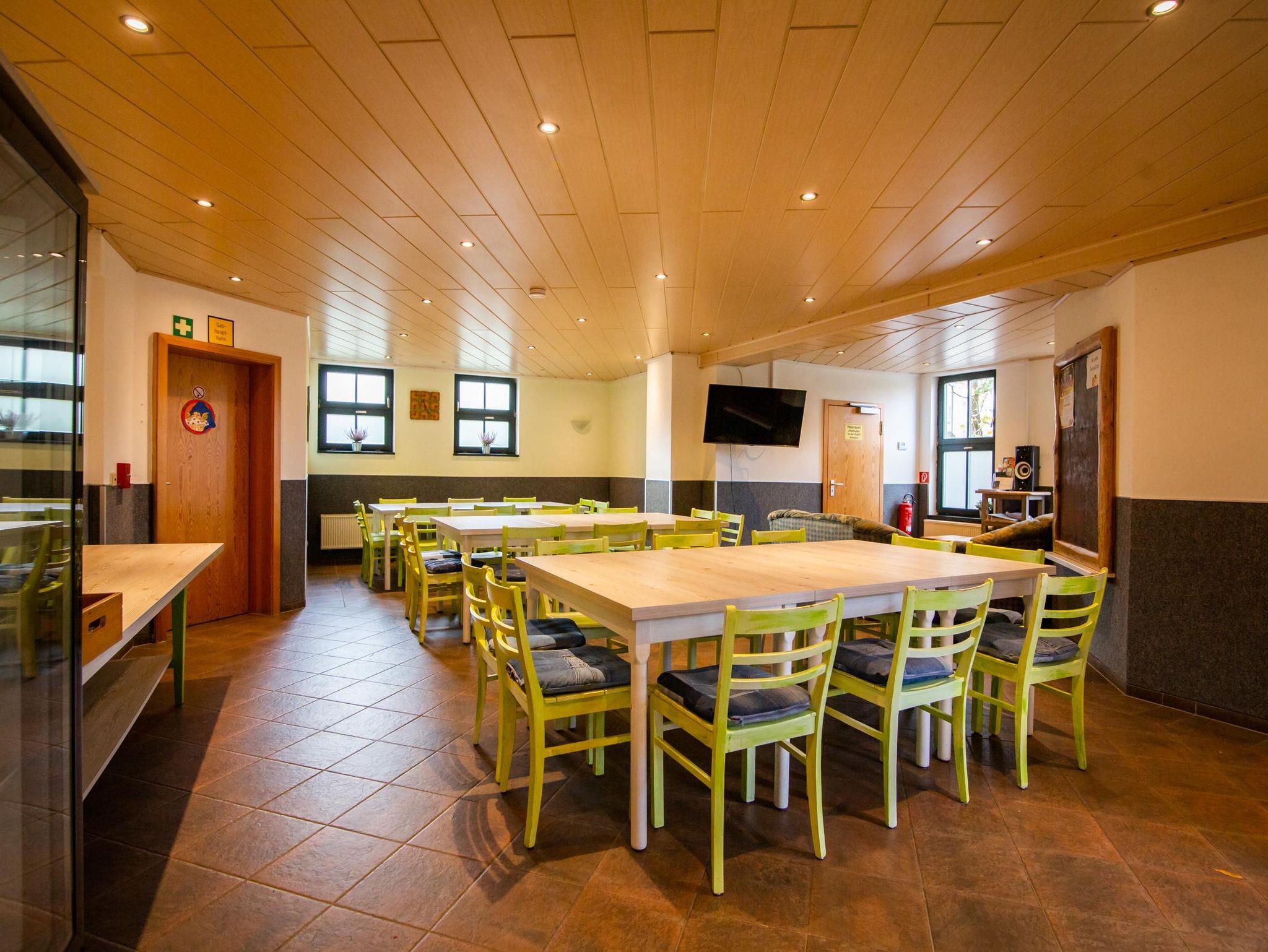 Alle Zimmer sind bequem und praktisch eingerichtet. Die beiden 2-Bett-Zimmer sind ausgestattet mit TV. Im 6-Bett-Zimmer schläft man in Doppelstockbetten. Die beiden Gruppenzimmer unter dem Dach besitzen jeweils maximal 10 Schlafmöglichkeiten. Dusche und WC sind über einen gemeinsamen Flur erreichbar. Unser Aufenthaltsraum dient gleichzeitig als Speise-, Seminar oder Fernsehzimmer sowie für gemütliche Abende und Feierlichkeiten. Baby-/Kleinkindausstattung ist vorhanden und wird Ihnen kostenfrei zur Verfügung gestellt. Gern bieten wir Ihnen aber auch Frühstück, Halb- oder Vollpension an. Als Gruppenunterkunft haben Sie in Anlehnung an den Berghüttenstil die Möglichkeit, sich in Ihrem Schlafsack oder der hauseigenen Bettwäsche zur Ruhe zu legen. Des weiteren stehen Ihnen eine Selbstversorgerküche und ein Grill zur Verfügung. Die Selbstversorgerküche verfügt über 2 Geschirrspühler, 2 Elektroherde, 1 Kombi- Dämpfer, Kühlschrank, Gefrierschrank, Kaffeemaschine, Wasserkocher, Geschirr und Besteck, Geschirrtücher. Die Nutzung der Dachklause mit Billardtisch, Dart und Wii kann gegen Aufpreis dazugebucht werden.