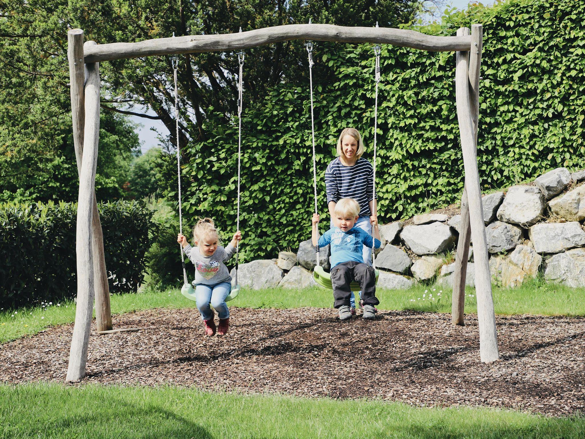 Während Ihre Kinder sich im großen Garten mit den vielen verschiedenen Spielmöglichkeiten austoben oder unsere Tiere entdecken und verwöhnen, genießen Sie unsere gemütlichen, liebevoll eingerichteten Ferienwohnungen oder erholen Sie sich in einer unserer einladenden Gartenecken!