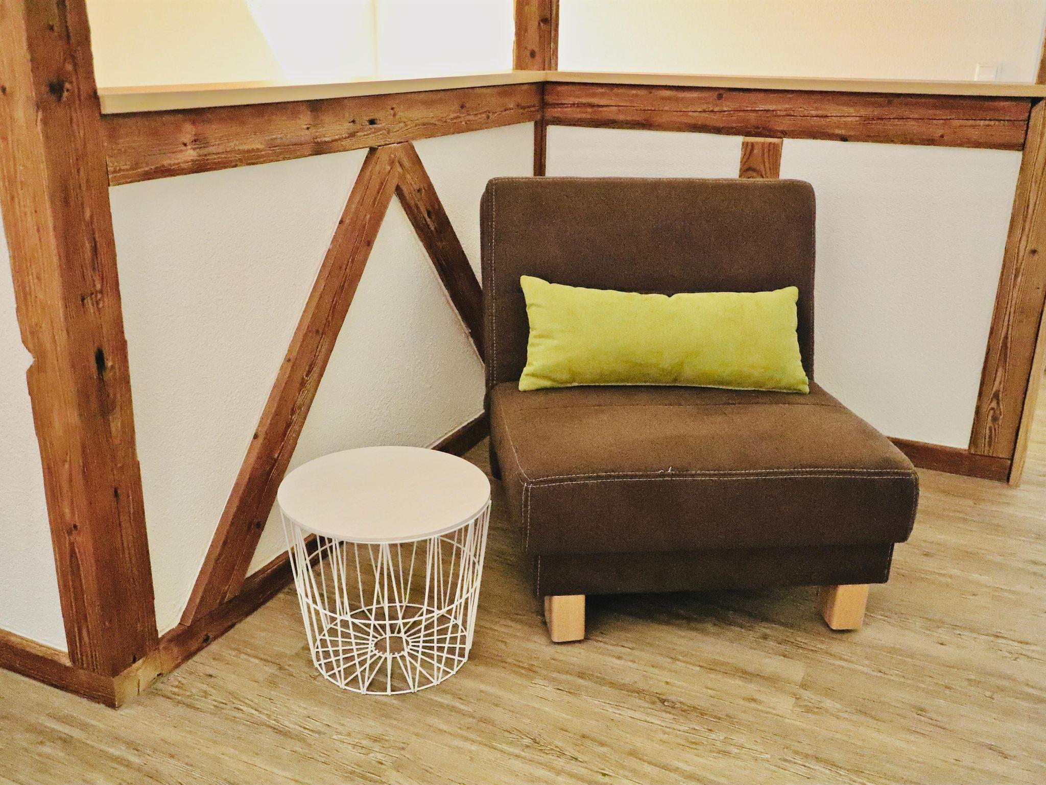 Unsere Maisonette-Ferienwohnung „Im Obstgärtle“ - benannt und entsprechend eingerichtet nach unserem Tätigkeitsbereich Herstellung von Obstbränden - ist etwa 55 m² groß und erstreckt sich über das Ober- und Dachgeschoss. Im unteren Stockwerk befindet sich ein gemütlicher Wohn-, Essbereich mit gut ausgestatteter Küchenzeile. Im oberen offenen Stockwerk liegt das Schlafzimmer – extra auch für „Große“ mit einer Bettenlänge von 2,20 m – sowie das Badezimmer mit begehbarer Dusche. Möglichkeit einer Schafcouch und eines Ausziehbettes ermöglichen auch eine Übernachtung von bis zu vier Personen. Baby- bzw. Kleinkindausstattung inkl. Treppenschutzgitter ist vorhanden. Im Garten steht Ihnen eine bevorzugte Sitzmöglichkeit zur Verfügung.