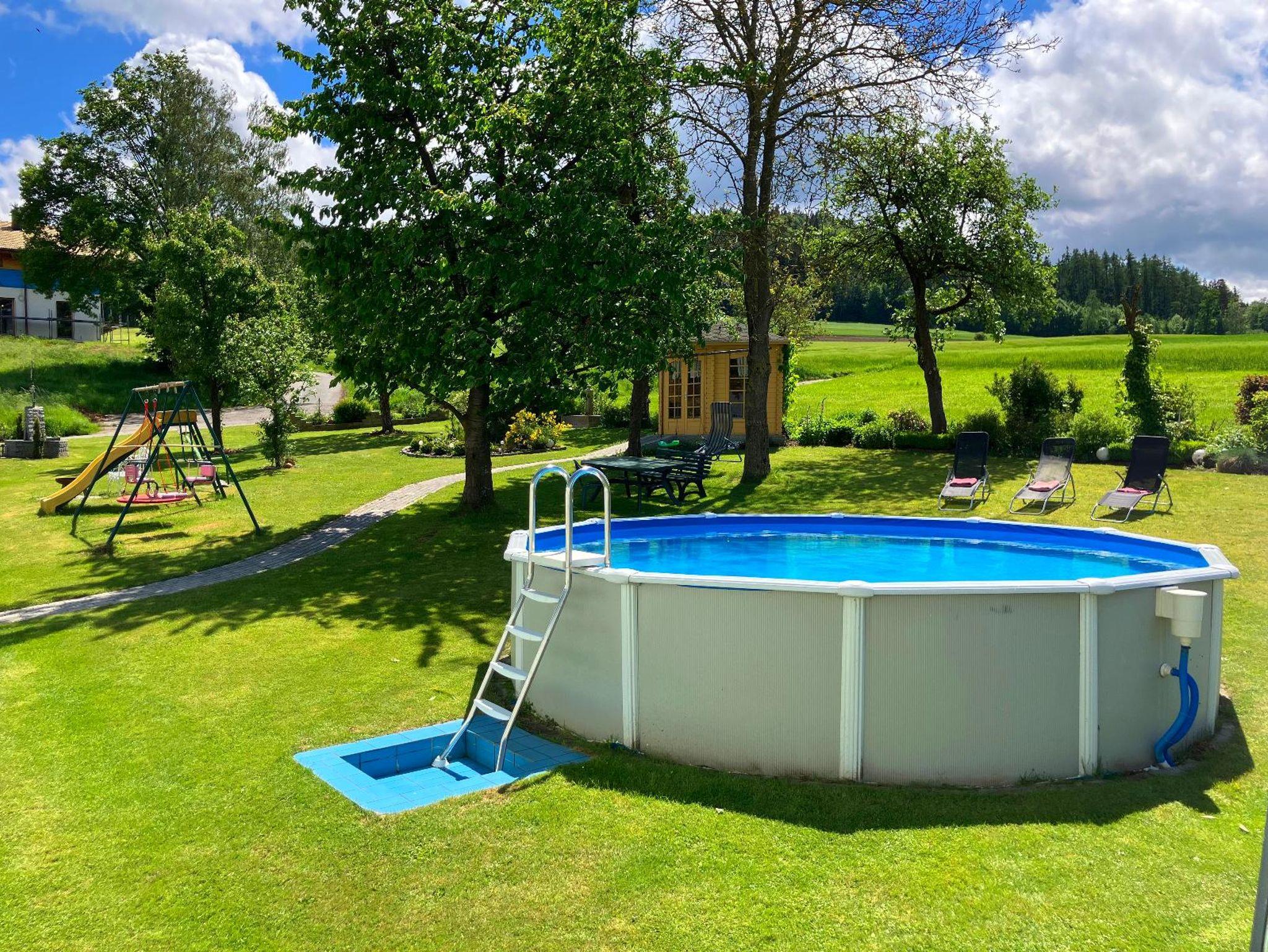 Des Weiteren steht Ihnen ein Spielplatz, ein Swimmingpool mit Liegewiese, sowie ein großes Gartenhaus mit Grill zur Verfügung.