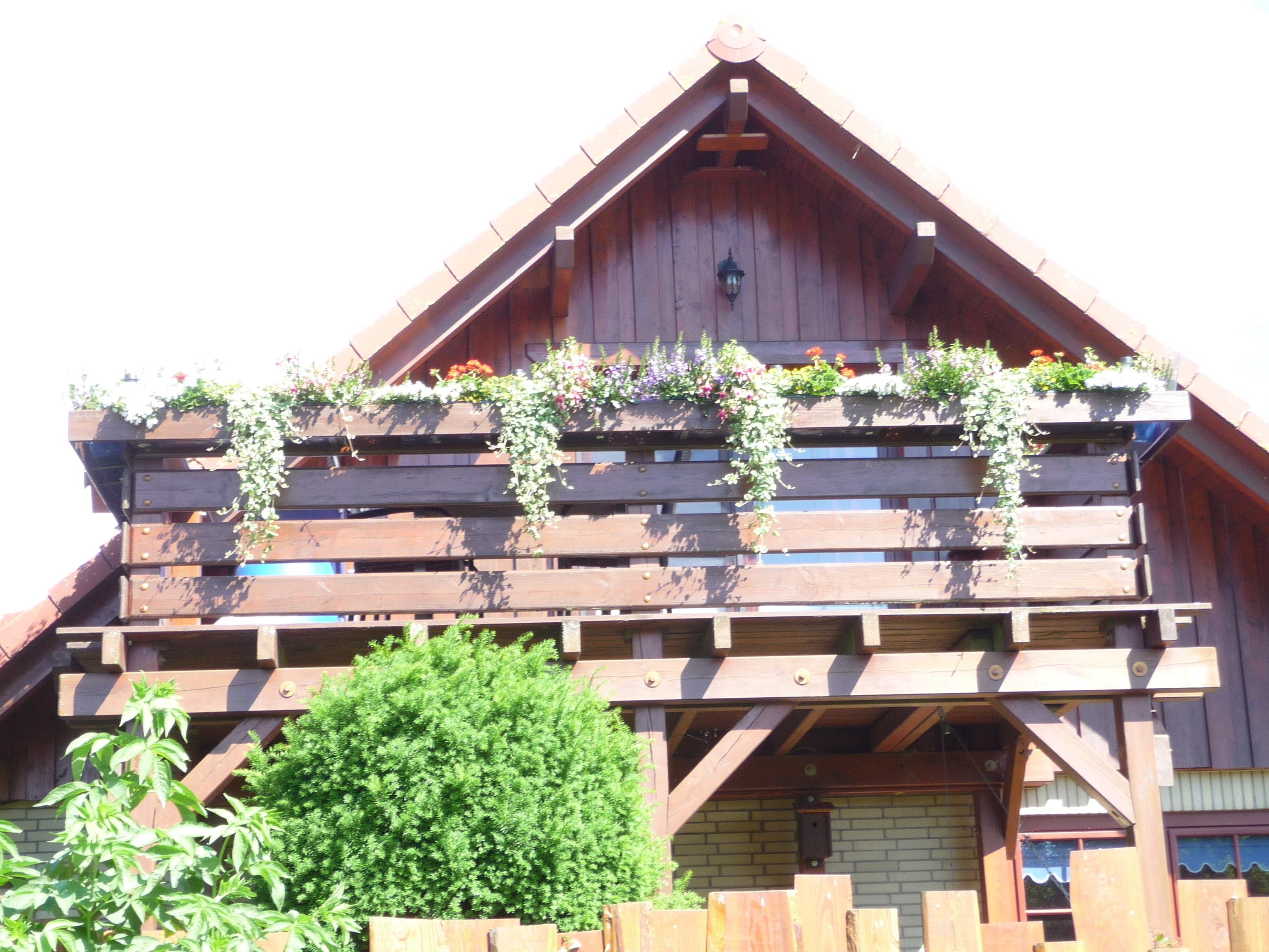 -ein gemütliches, ebenfalls im Landhausstil eingerichtetes Wohnzimmer, mit LED - TV u. DVD, daran angeschlossen ein großer Balkon auf dem man sich so richtig erholen kann, in Südlage, d.h. den ganzen Tag Sonne (wenn sie denn scheint), mit Liegestühlen und einem Tisch mit 4 Stühlen