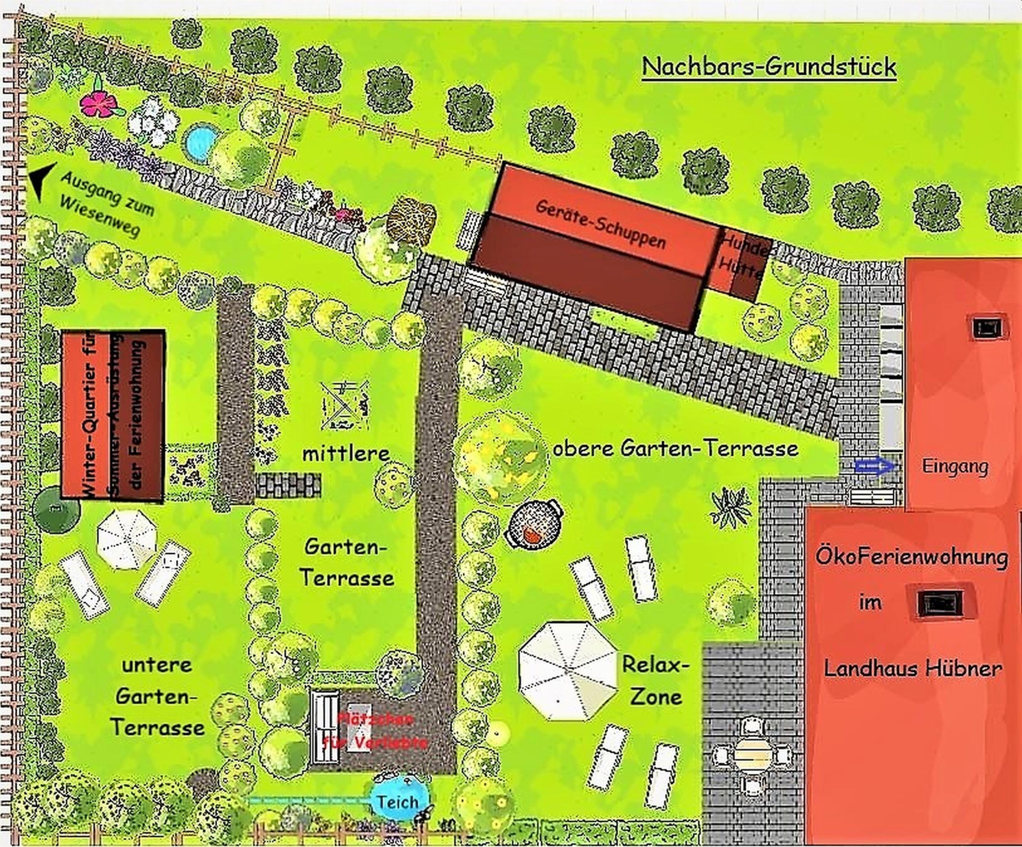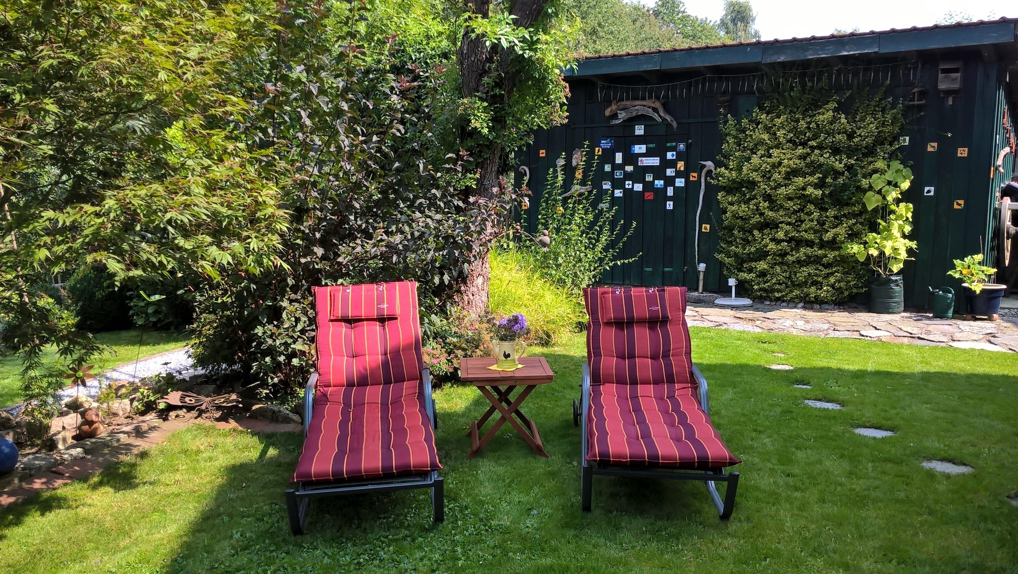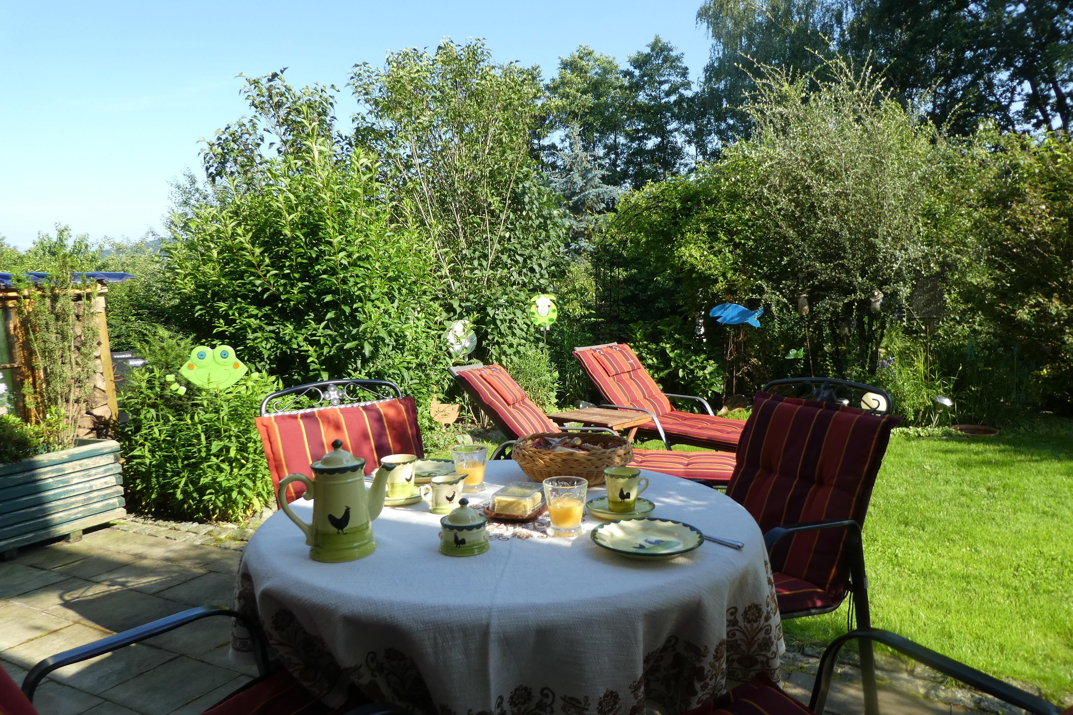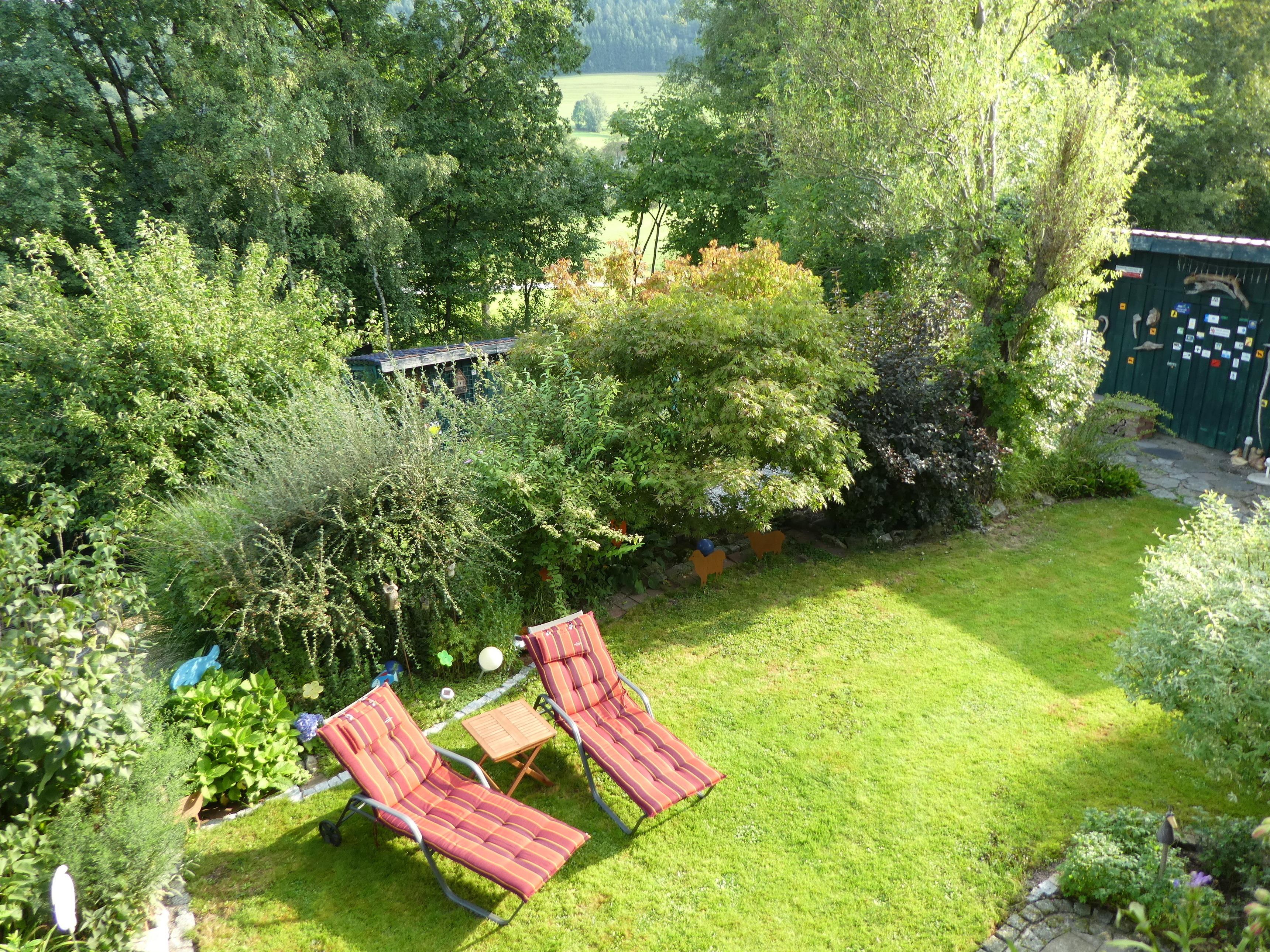 Willkommen in der Öko-Ferienwohnung im Landhaus Hübner mit grosser Wohlfühlterrasse im Grünen und riesigem, blühenden Naturgarten (ca. 500 m² eigener Gartenbereich) zum Relaxen und zum Ausspannen für bis zu vier Personen.