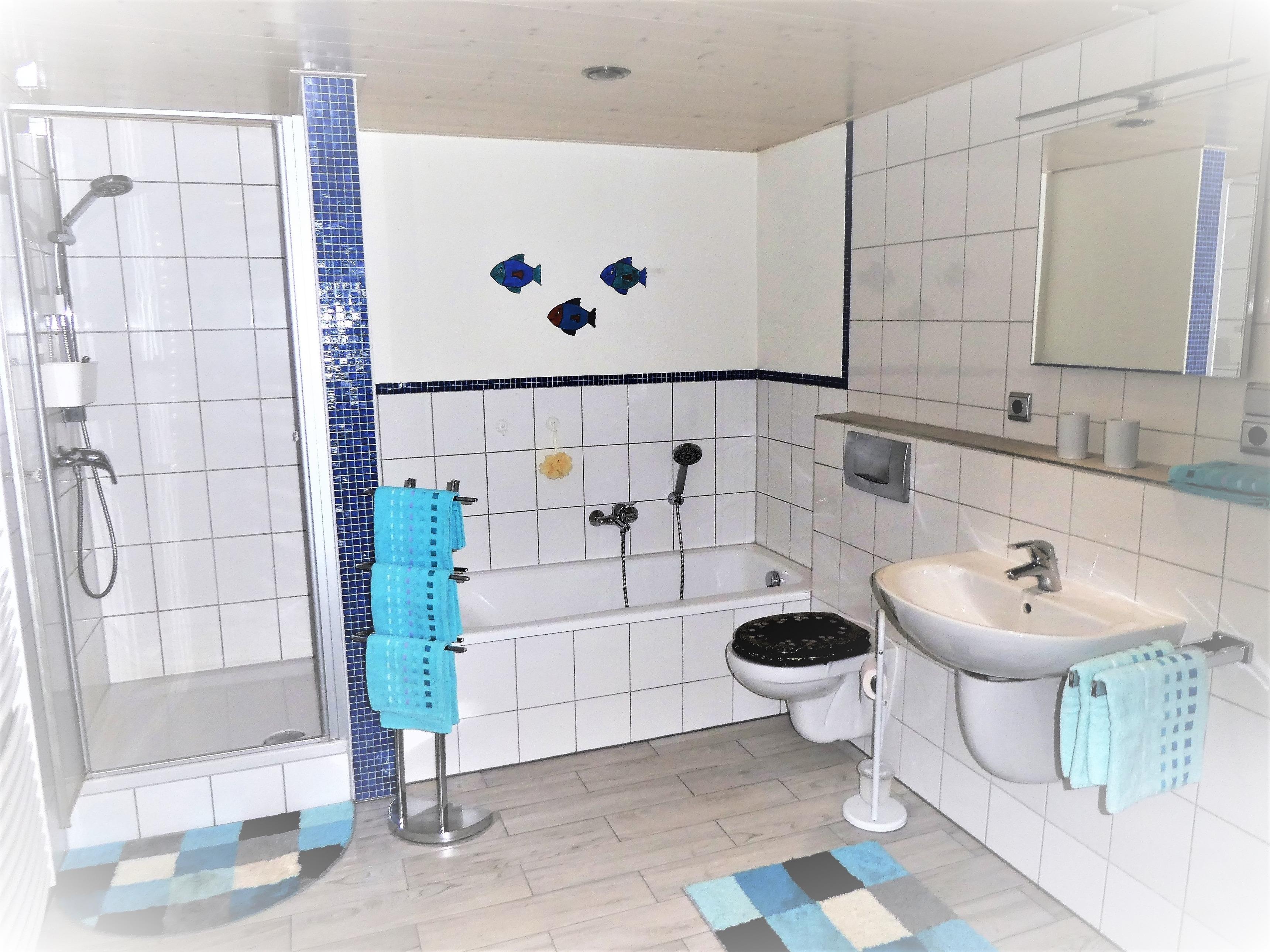 Großes Bad mit separater Dusche, Wanne und WC