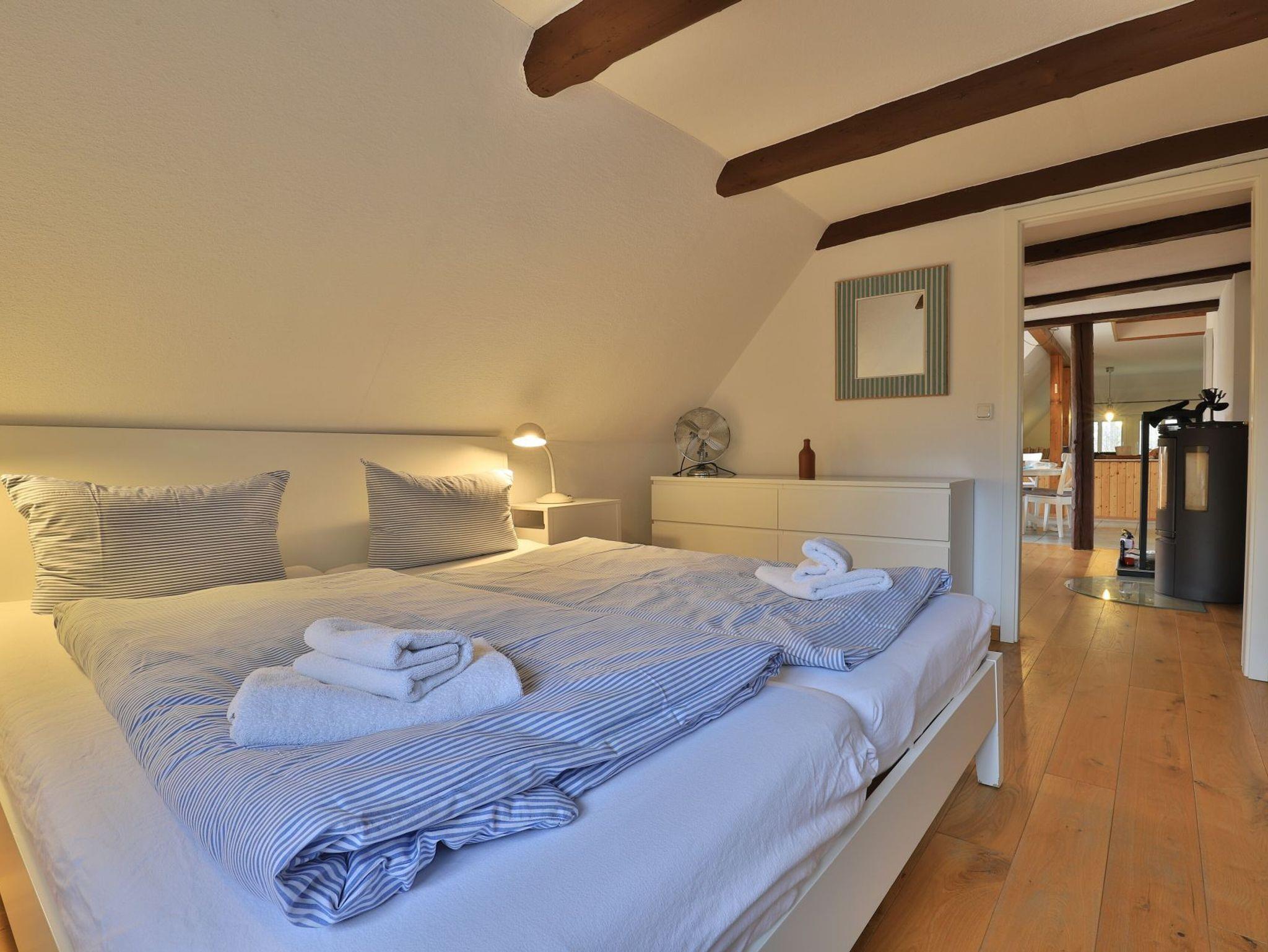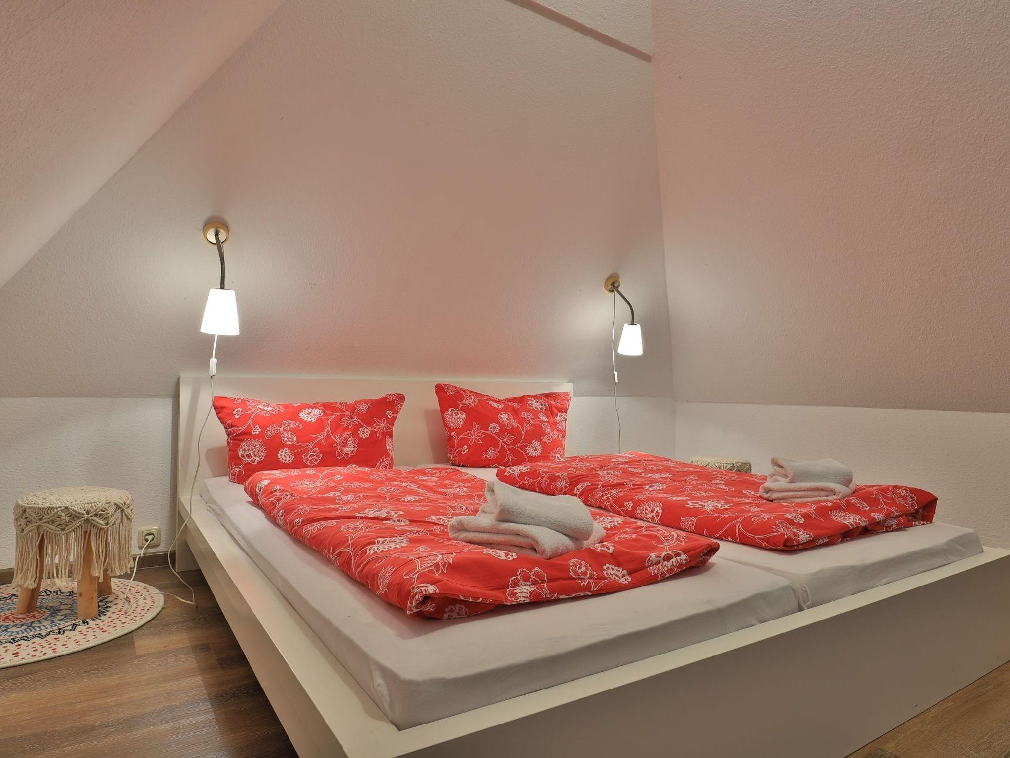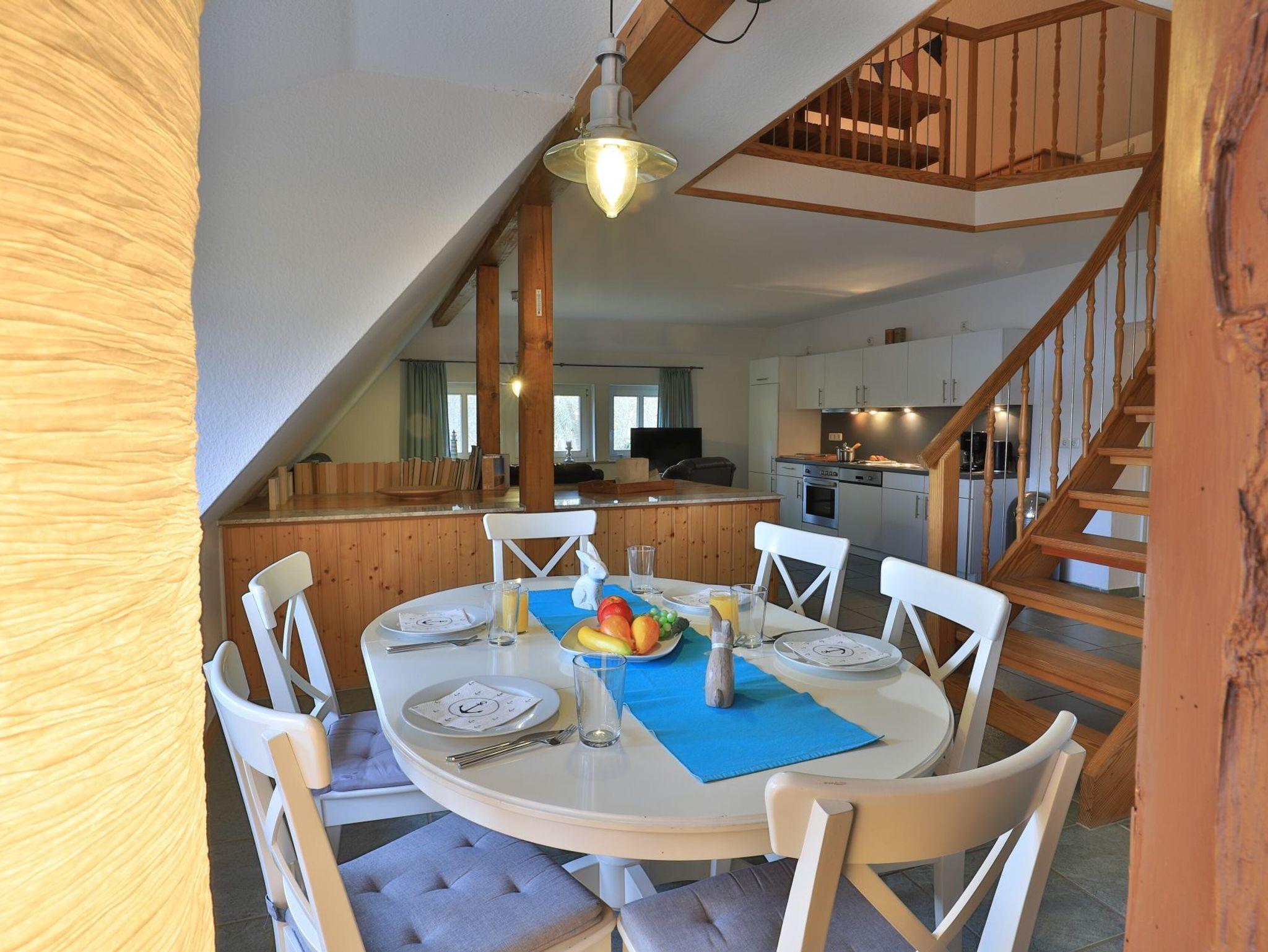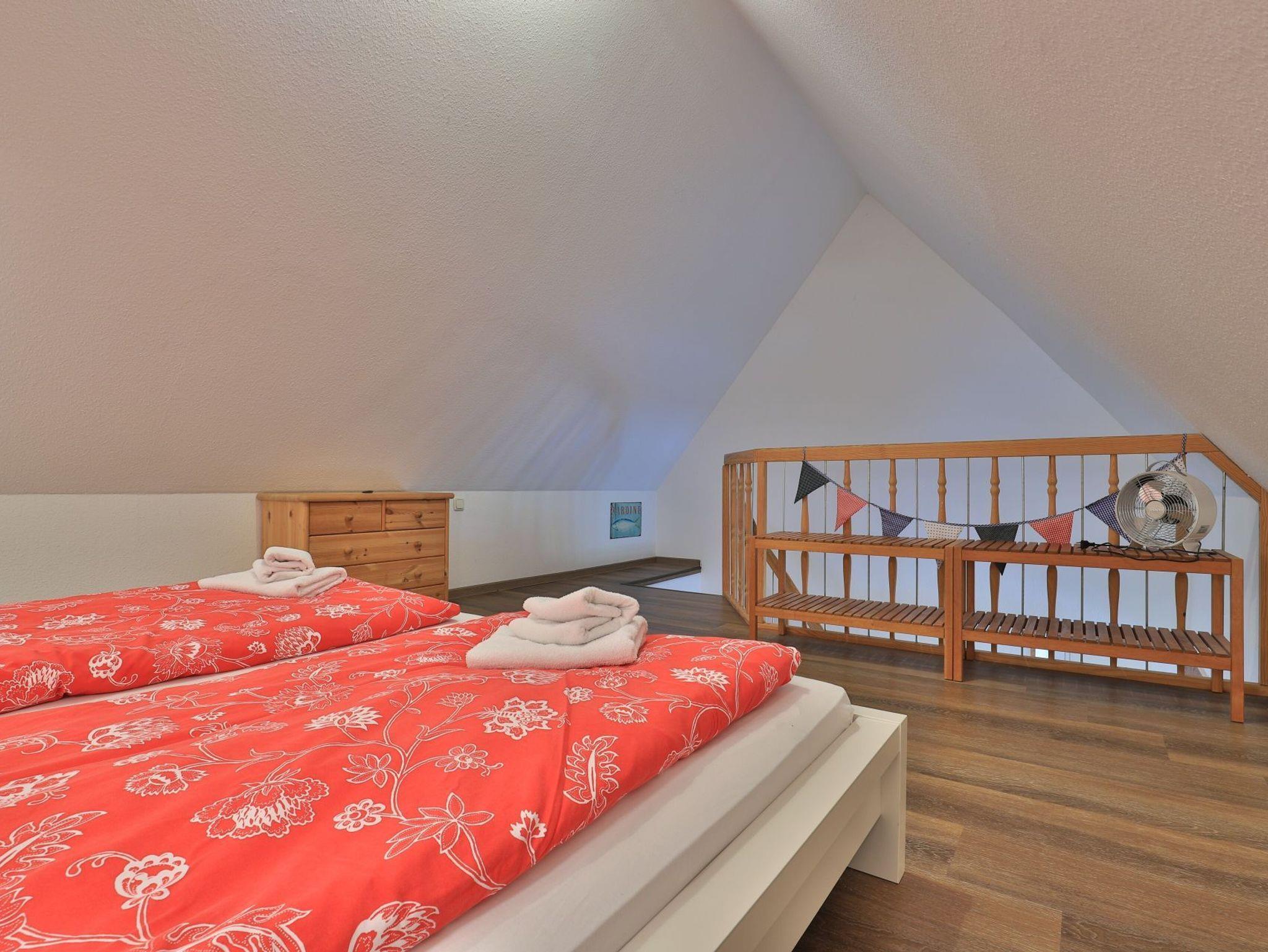 Erholung pur bietet die behagliche 3- Zimmer Ferienwohnung Sonnenaufgang, die sich als Maisonettenwohnung mit einer Wohnfläche von 74qm über zwei Ebenen erstreckt. Für bis zu 4 Personen bietet das attraktive Feriendomizil mit Seeblick beste Wohnqualität. Entspannte Stunden verbringen Sie im freundlichen Wohn-Essbereich mit Kaminofen, Sofa, Esstisch, 2. Sitzbereich zudem Fensterbank Sitzmöglichkeit mit Blick auf den See. Auch ein Fernseher und eine Musikanlage sind vorhanden. Des Weiteren bietet die voll ausgestattete, integrierte Küchenzeile alle technischen Voraussetzungen zur Zubereitung Ihrer Mahlzeiten. Herd, Backofen, Mikrowelle sowie Geschirrspüler, Kaffeemaschine, Wasserkocher und Toaster. Das großzügige Tageslichtbad empfängt Sie mit einer Dusche und einer Eckbadewanne zudem sorgt ein Handtuchheizkörper für wohlige Wärme. Über eine Treppe gelangen Sie in den Schlafbereich, wo sich ein separates Schlafzimmer mit Doppelbett und Kleiderschrank sowie ein Galerieschlafzimmer mit Doppelbett befinden. Die Nutzung von Waschmaschine und Wäschetrockner ist im Haus möglich. Für Ihren PKW ist ein kostenfreier Stellplatz vorhanden. Das große Gartengelände sowie der hauseigene Bade Steg steht allen Gästen zur Verfügung. Bitte beachten Sie, dass es sich hier um eine Nichtraucher Wohnung handelt, in der Haustiere nicht gestattet sind.