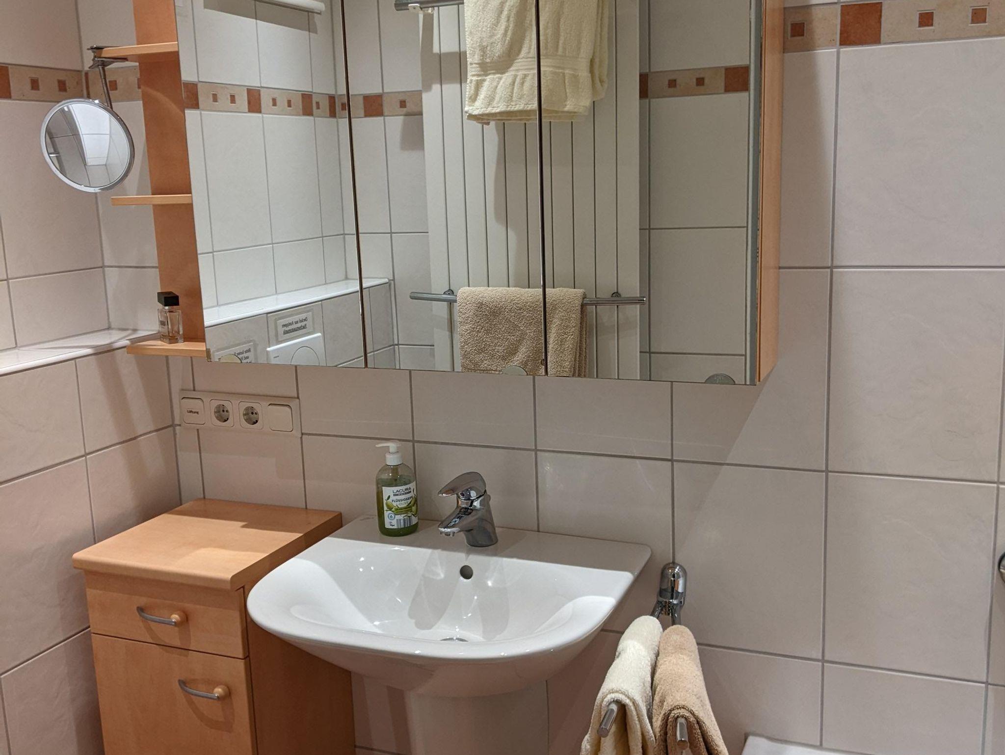 Die Ferienwohnung verfügt über 2 ZKB und ist 65 qm groß. Sie erhalten einen kostenlosen WLAN Zugang. Die Küche verfügt über eine Spülmaschine, Ceranfeld mit 4 Kochfeldern, Backofen, 2 Kaffeemaschinen (eine Filtermaschine für Filter Nr.4 und eine Senseomaschine) Toaster, Eierkocher, Mixer, Mikrowelle, Kühlschrank mit großem Gefrierfach etc. Geschirr, Gläser, Tassen etc, sind in ausreichender Menge vorhanden. Bettwäsche und Handtücher sind ebenso vorhanden. Bei einem längeren Aufenthalt haben Sie die Möglichkeit die Bettwäsche zu wechseln.
