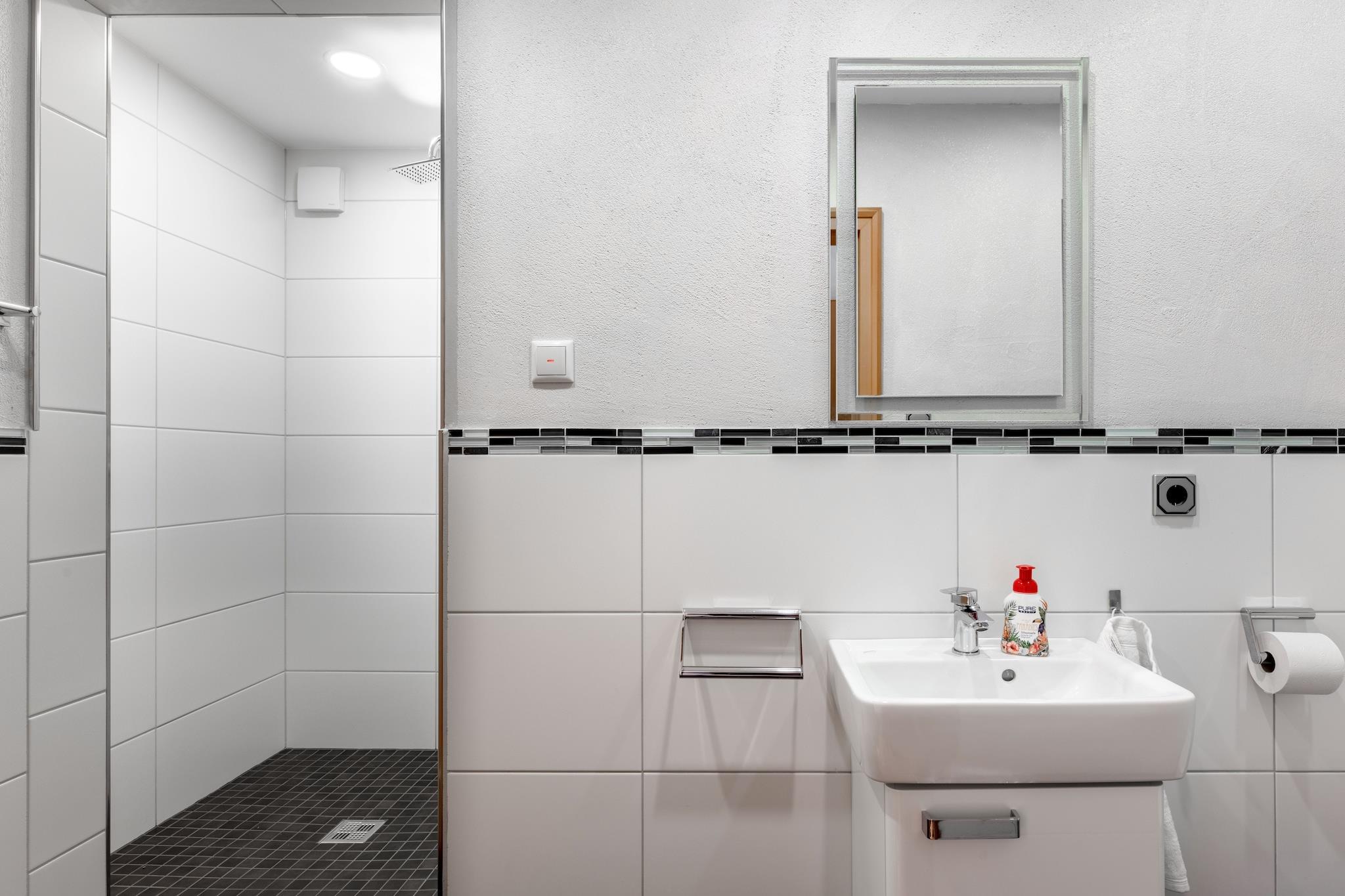 På 1. etage: (Stue(dobbeltsovesofa, Fjernsyn), køkken-alrum(spisebord, elkedel, brødrister, komfur, emhætte, kaffemaskine, ovn, mikrobølgeovn, opvaskemaskine , køle-fryseskab), soveværelse(dobbeltseng), soveværelse(enkeltseng(100 x 200 cm)), badeværelse(bruser, håndvask, toilet)) patio, terrasse, have, havemøbler, solstole, grill, parkering, liggestole, barneseng, hyggespil, baby crib(free)