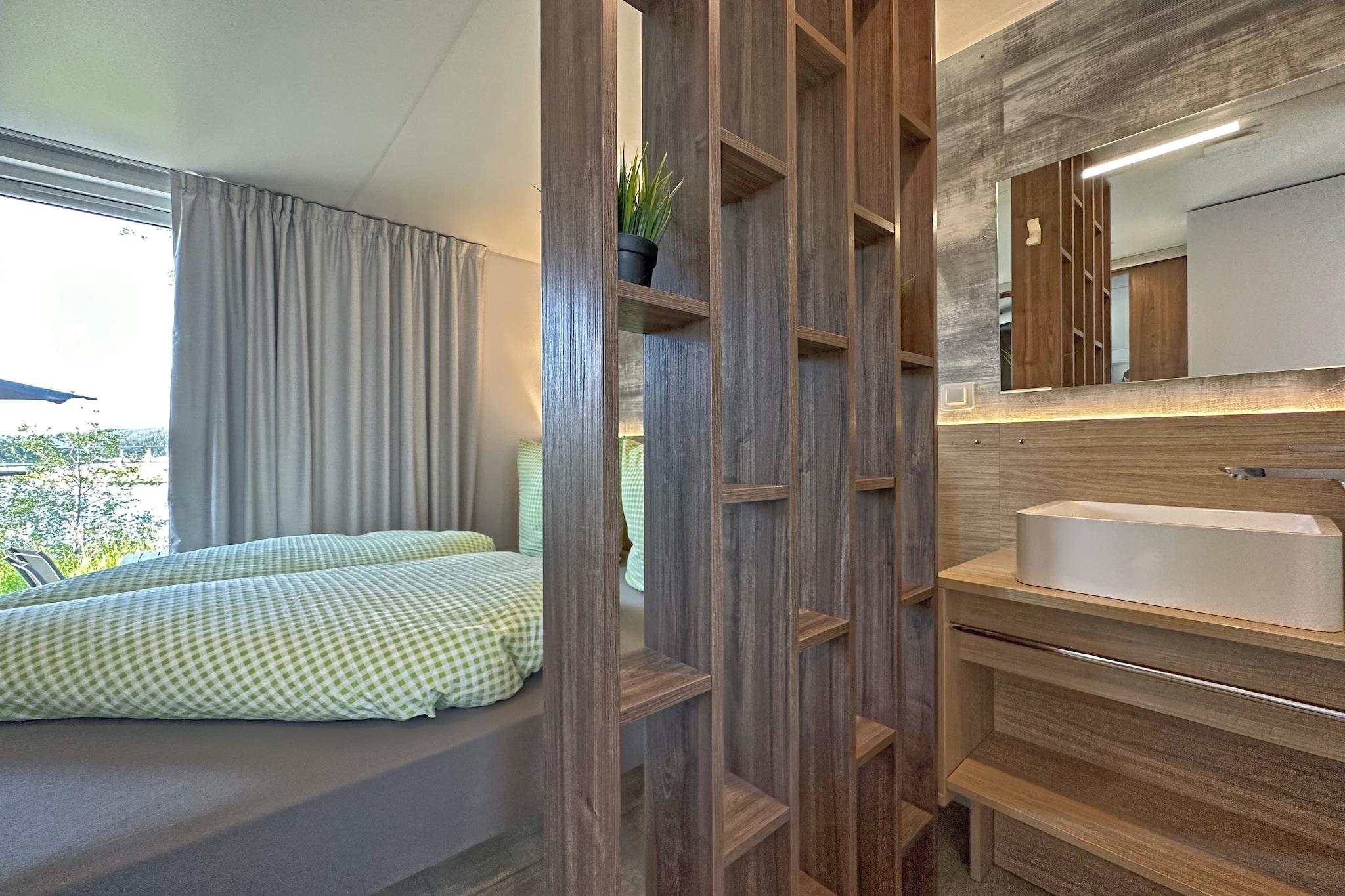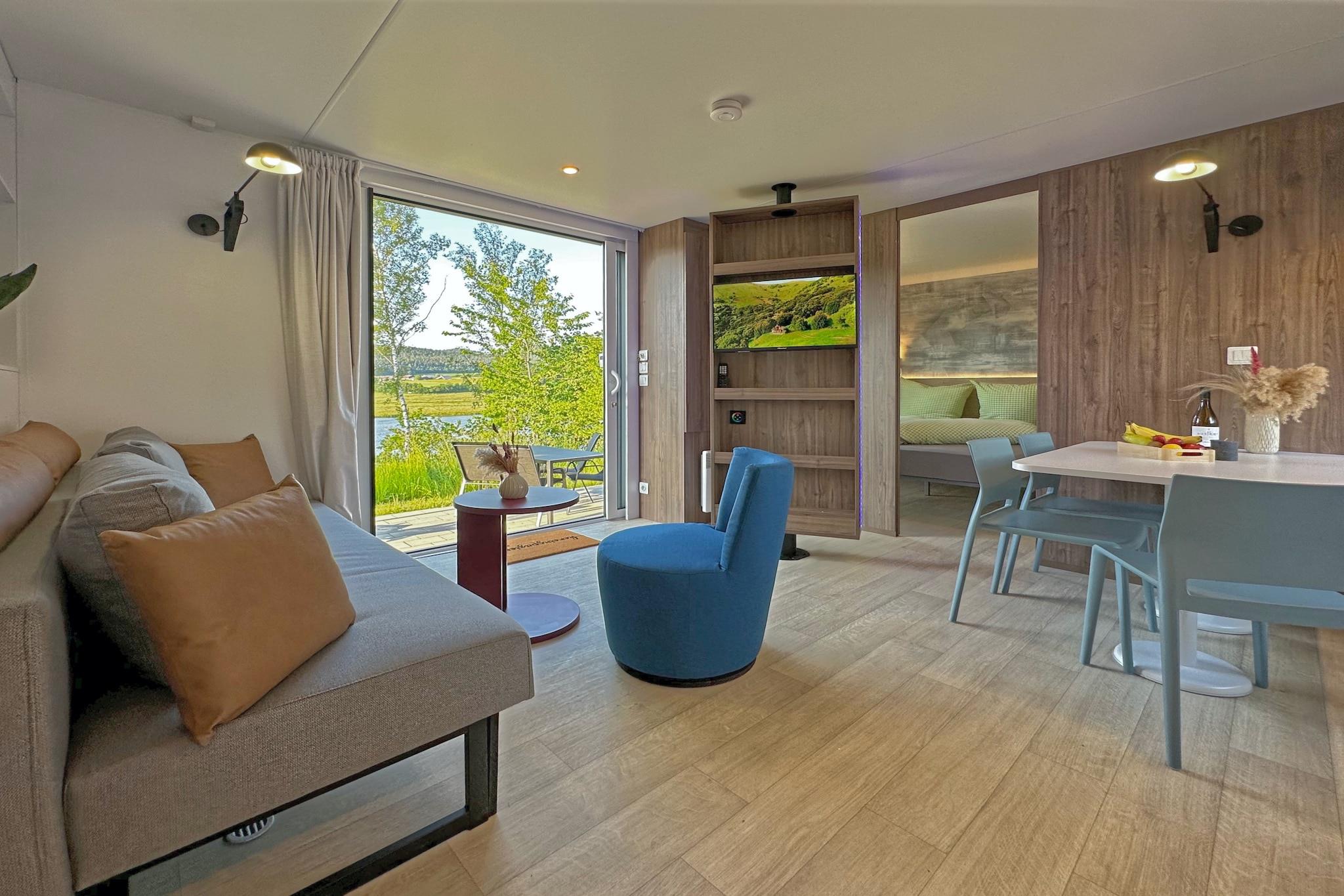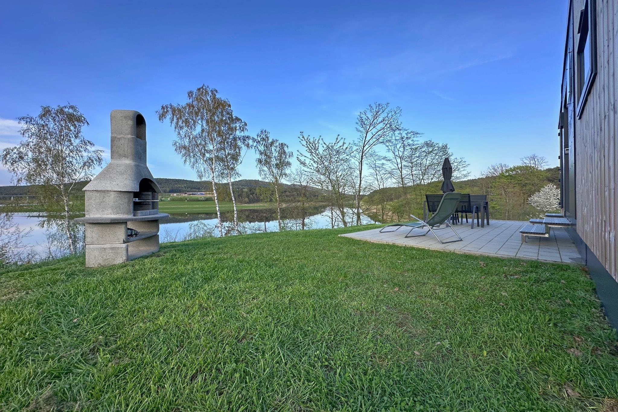 Velkommen til den fredelige ferieby Seeblick, beliggende ved bredden af søen Eixendorf i hjertet af Oberpfalz-skoven. Denne hyggelige lille hytte er ideel til par, familier eller venner, der søger en afslappende flugt i naturen. Det har et fuldt udstyret åbent køkken, en komfortabel stue/spisestue og to soveværelser, hver med sit eget private badeværelse, hvilket sikrer både komfort og privatliv. Træd udenfor til din private terrasse med en pejsgrill, havemøbler, parasol og liggestole, perfekt til måltider ved søen og til at slappe af under åben himmel. Faciliteterne inkluderer WiFi, tv, opvaskemaskine og privat parkering. Det omkringliggende Oberpfälzer Seenland byder på en rig blanding af aktiviteter: udforsk naturskønne stier til fods eller på cykel, nyd fiskeri, sejlads eller golf, og opdag nærliggende hede og bjerge. Uanset om du planlægger et roligt tilflugtssted, en aktiv ferie eller et familieeventyr, byder denne oase ved søen noget for enhver smag.
